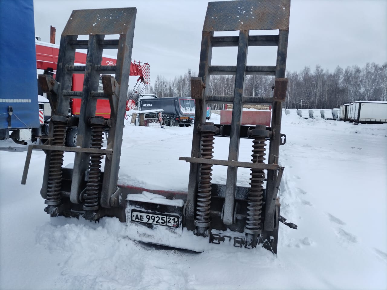 Ответственный за реализацию: Михеев Максим Лот: 000006950 Высокопрочная сталь Q700 Ширина ( Выдвижные уширители борта) 2550 мм (250 мм) Длина рабочей площадки 11 800 мм Высота рабочей площадки 900-950 мм ССУ 1350 мм Габариты (Д*Ш*В) 15800*2550*2850 Двухскатная резина 235/75R17,5 Подвеска Рессорная. АВС Мосты Fuwa Количество осей 3 Трапы Механические (800 мм) Дополнительно Запасное колесо 1 шт Коники 10 шт Петли внутри площадки 12 шт Противооткатные упоры 4 шт Шкворень (палец) 90/50 мм Грузоподъемность 60 тн