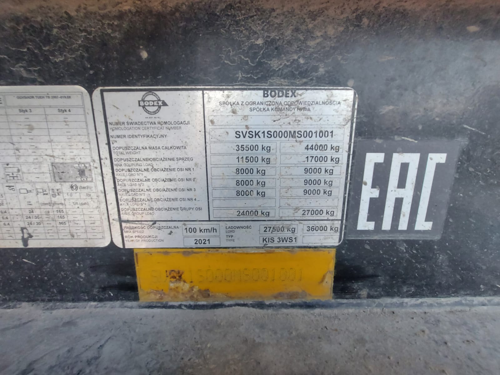 Ответственный Стешинский Денис Марка BODEX Модель KIS 3WS Объём 35 м3 Цвет Черный Количество осей 3 Марка осей BPW Собственная масса 8 000 кг