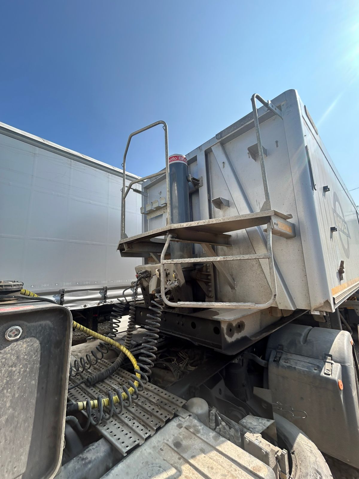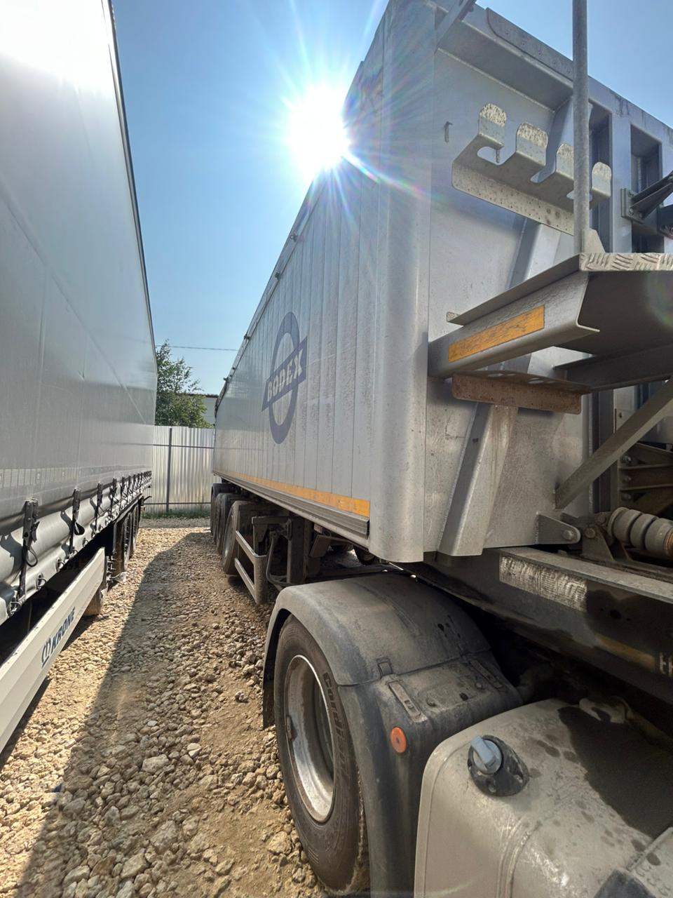 Ответственный Стешинский Денис ТЕХНИЧЕСКИЕ ХАРАКТЕРИСТИКИ: •Собственный вес 7500кг. Кузов •Объем – 40 куб.м. •Материал кузова - АЛЮМИНИЙ •Кузов установлен на раме и фиксируется в транспортном положении; •Задний борт наклонный с верхней осью вращения, на двух шарнирах, с резиновым уплотнителем; •Привод замка заднего борта механический; •Кузов оснащен сдвижным тентом. •Цвет: на выбор заказчика по ралу, предоставленным заводом- изготовителем Рама: •Высота ССУ – 1150 мм •Усиленная из шведской стали RAEX, состоит из двух сварных продольных лонжеронов, соединенных между собой траверсами и балками; •Сцепное устройство – плита сцепки с 2” шкворнем JOST (Германия); •Опорное устройство двухдиапазонное телескопическое JOST (Германия) г/п 24 т с ручным односторонним приводом. Шасси: •Ошиновка односкатная, количество колес 9 штук; •Шины размерности 385/65 R22,5; •Оси BPW с нагрузками на оси 9 тонн; Барабанные тормоза •1-я и 2-я оси подъемные •Диски 11.75х22,5 стальные штампованные Lemmerz (Германия); •Полные подкрылки DOMAR (Италия) - 6 штук, задние с резиновыми грязеотражателями; •Корзина на 2 зап/колеса (в базе полуприцепа устанавливается дополнительный кронштейн для крепления запасного колеса тягача). Подвеска: •Четырехосная пневматическая производства SAF с технической нагрузкой на ось 9 тонн. •Первая и Вторая ось оснащена 2-х сторонним подъемным механизмом, четвертая оснащена поворотным механизмом. Тормозная система: •Двухпроводная пневматическая с тормозными механизмами барабанного типа, с приводом на все колеса, •Стояночный тормоз – пневматический с приводом от энергоаккумуляторов на две оси; •Антиблокировочная система тормозов WABCO EBS Гидроцилиндр: •BINOTTO 5-секционный 7 метровый с телескопическим гидроцилиндром с верхним креплением и грузоподъёмностью до 40 тонн обеспечивающего угол разгрузки до 45°. (Гарантия производителя 1 год). Другое оборудование: •Заднее защитное устройство (противооткатный брус, складной) и боковое защитное устройство соответствуют ГОСТ Р 41.58-2001 (Правила ЕЭК ООН №58); •2 клина с креплением (противооткатные башмаки); •Фиксатор транспортного положения кузова – замок Hi-Fix; •Манометр; Дополнительное оснащение: •Ёмкость для воды, •Ящик для инструментов; •Вся металлическая фурнитура произведена фирмами Tosi и Sirit (Италия).