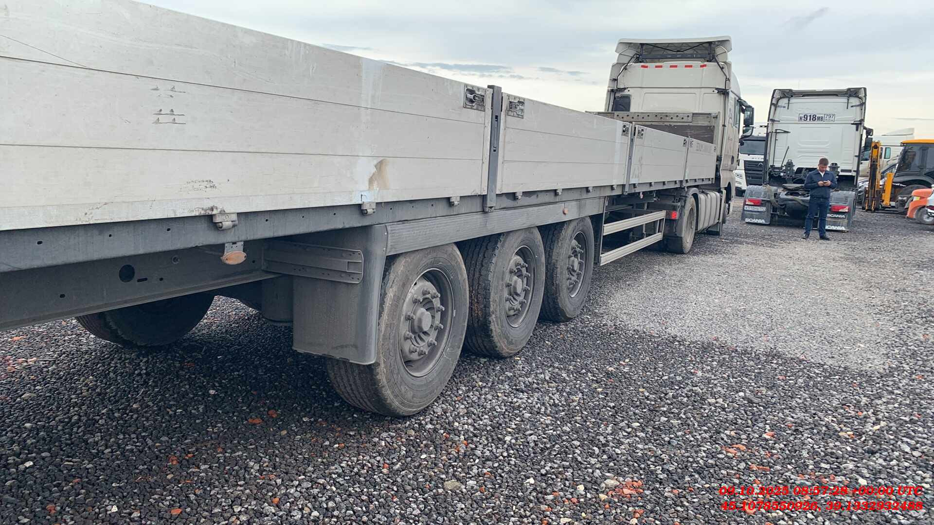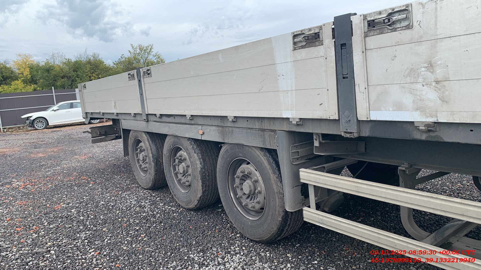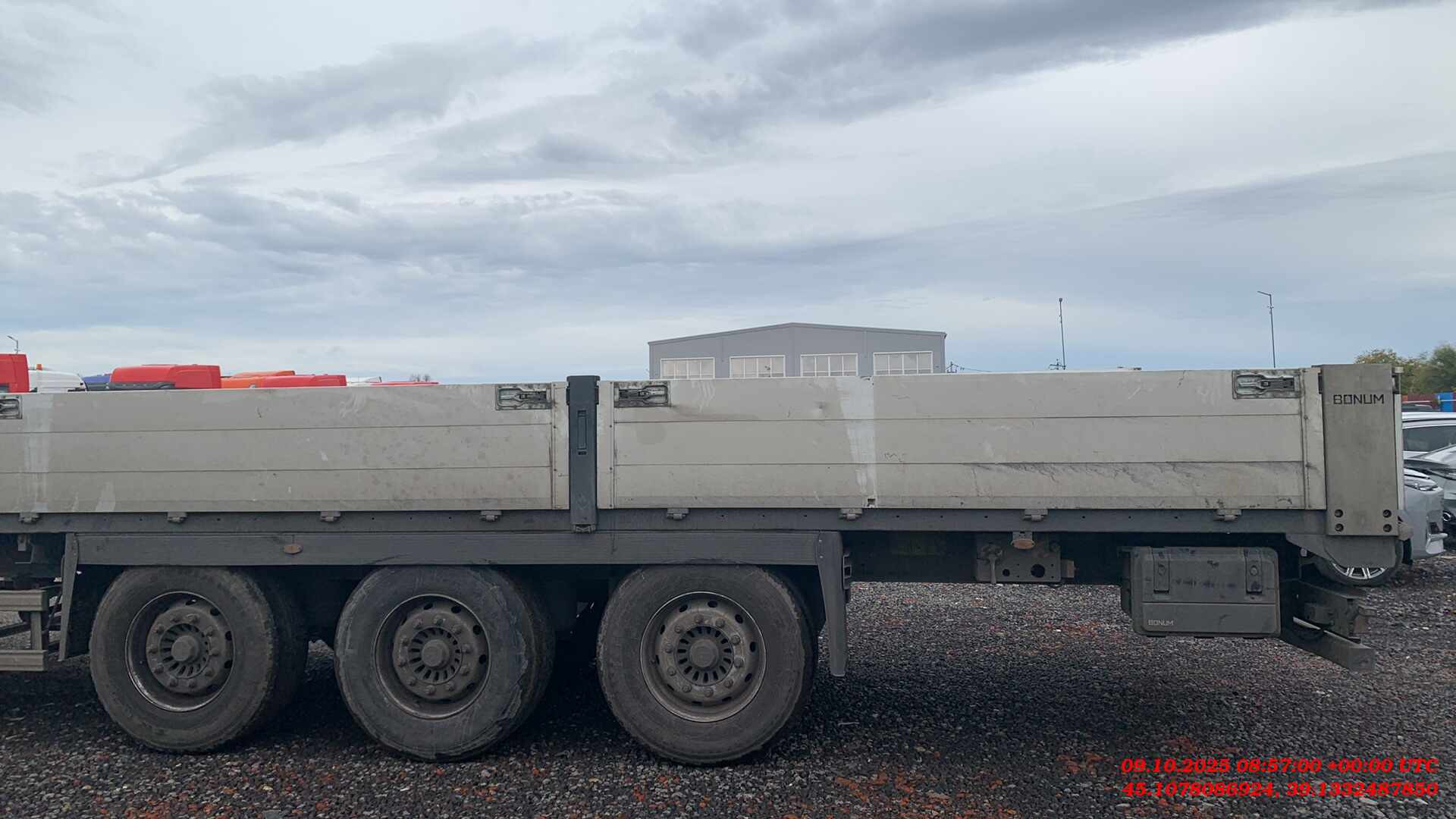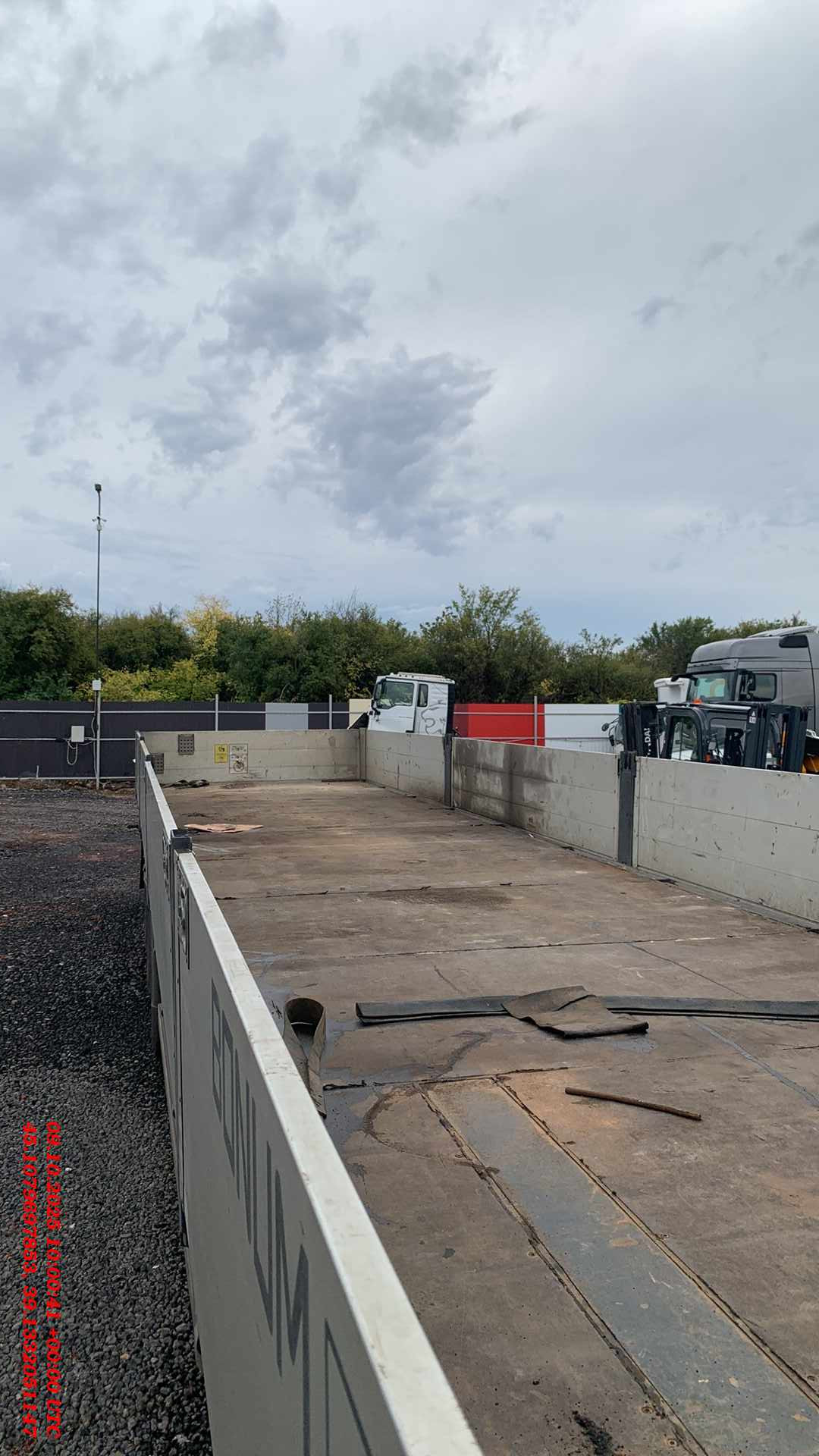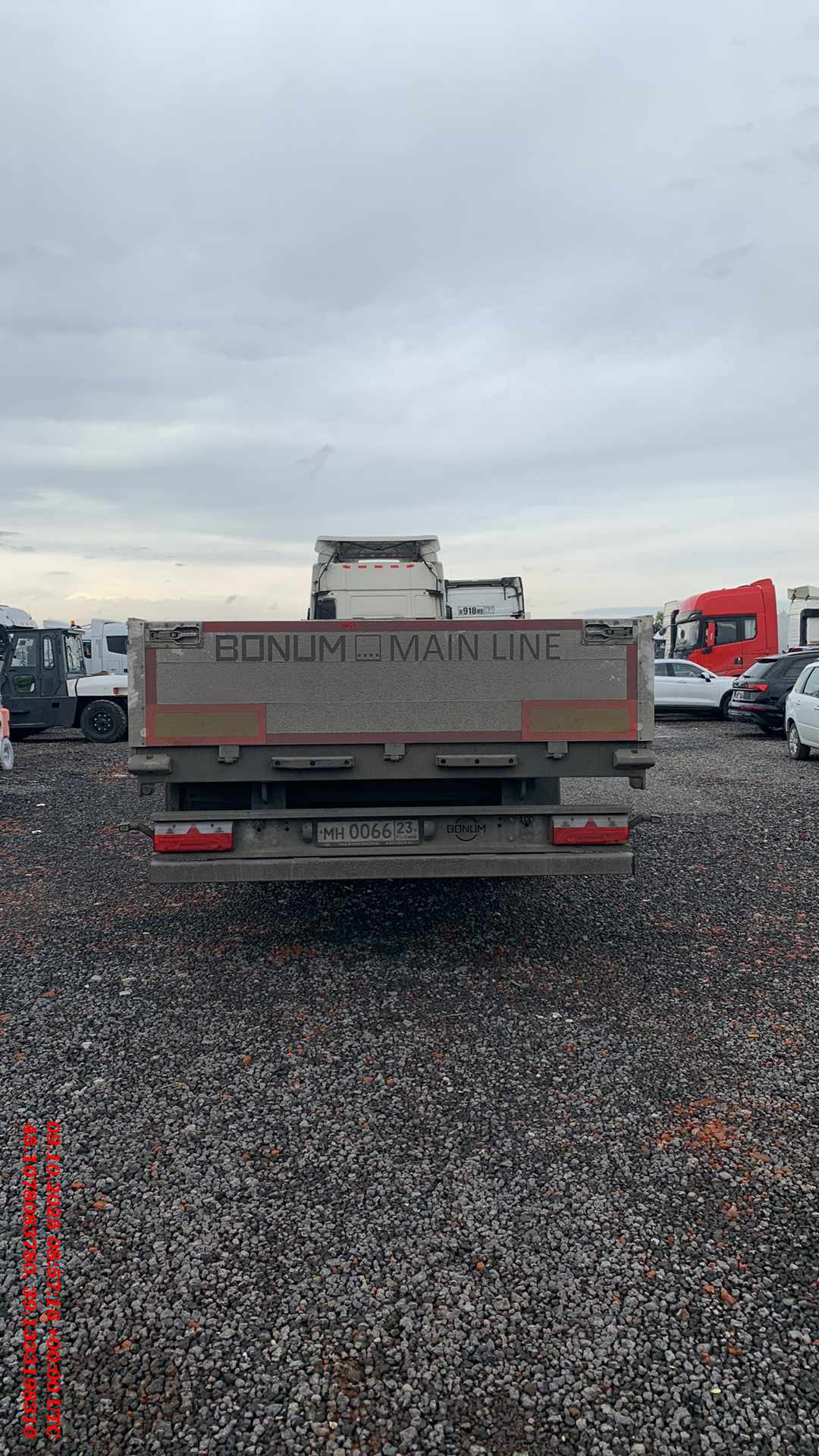 Длина габаритная, L мм Ширина габаритная, мм Высота габаритная (по передней стенке), H2, мм Ширина внутренняя, мм Высота внутренняя (по передней стенке) H3, мм Высота борта H4, мм Длина внутренняя, мм 13 920 2 550 2 455 2 480 1 200 600 13 620 Снаряженная масса полуприцепа, кг Межосевое расстояние, B, мм Максимальная масса автопоезда, кг Высота ССУ, H1, мм Объем, м3 от 5 900 1 310 44 000 1 150 - КОНСТРУКЦИЯ ПОЛУПРИЦЕПА: • сварная рама усиленной конструкции из стали повышенной прочности; • шкворень диаметром 2” марки JOST / SAF / OMS, международного типа или аналог; • стаканы под коники 80х80 мм по периметру рамы; • кассета / ящик для хранения коников; • потайные проушины по бокам рамы для крепления груза; • пол из ламинированной фанеры толщиной 27-30 мм; • две буксировочные проушины в задней части рамы; • опорное устройство двухскоростное с ручным односторонним приводом; • корзина для двух запасных колёс; • боковая защита из алюминиевого профиля; ПОДВЕСКА И ШИНЫ: • 3 оси HJ; • тормозные механизмы барабанного / дискового типа; • шины (на усмотрение производителя) размерностью 385/65 R22,5 с диском - 6 шт. ТОРМОЗНАЯ СИСТЕМА: • пневматическая двухконтурная тормозная система c EBS. ЭЛЕКТРООБОРУДОВАНИЕ: • электрооборудование Aspoeck / Hella / Ermax или аналог. НАДСТРОЙКА: • передний портал 1200 мм из алюминиевого профиля со стальными стойками; • 8 алюминиевых боковых бортов высотой 600 мм: • 1 алюминиевый задний борт высотой 600 мм; • 3 пары боковых съёмных стоек, 2 задние стойки; • светоотражающая маркировка • заднее защитное устройство с панелью для фонарей. РАМА ОКРАШЕНА ПО ФИРМЕННОЙ ТРЕХСТУПЕНЧАТОЙ СИСТЕМЕ ОКРАСКИ «PRIME SYSTEM»: 1. обработка поверхности в дробеструйной камере; 2. покрытие грунтом с содержанием антикоррозийных элементов; 3. окраска премиальной эмалью