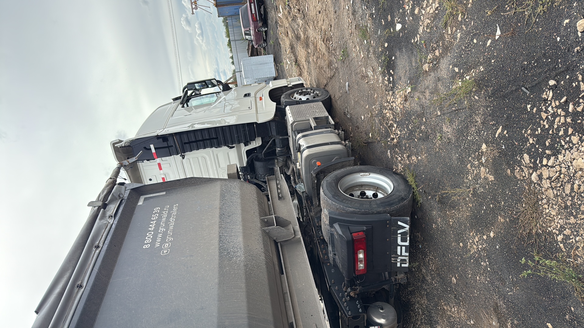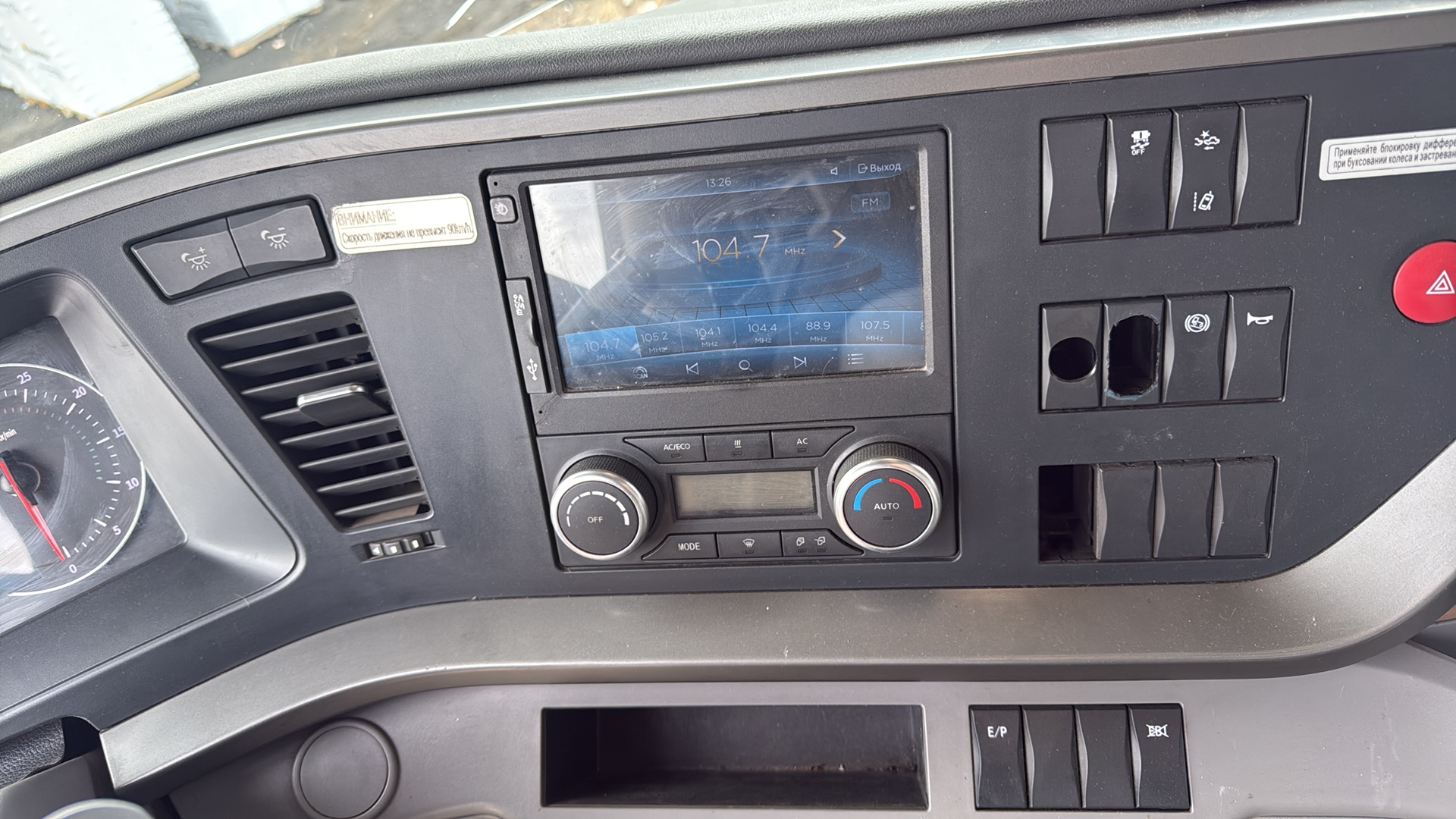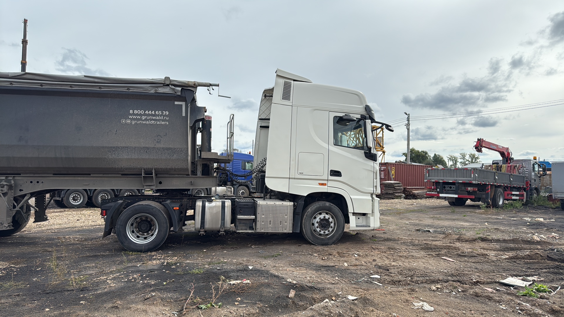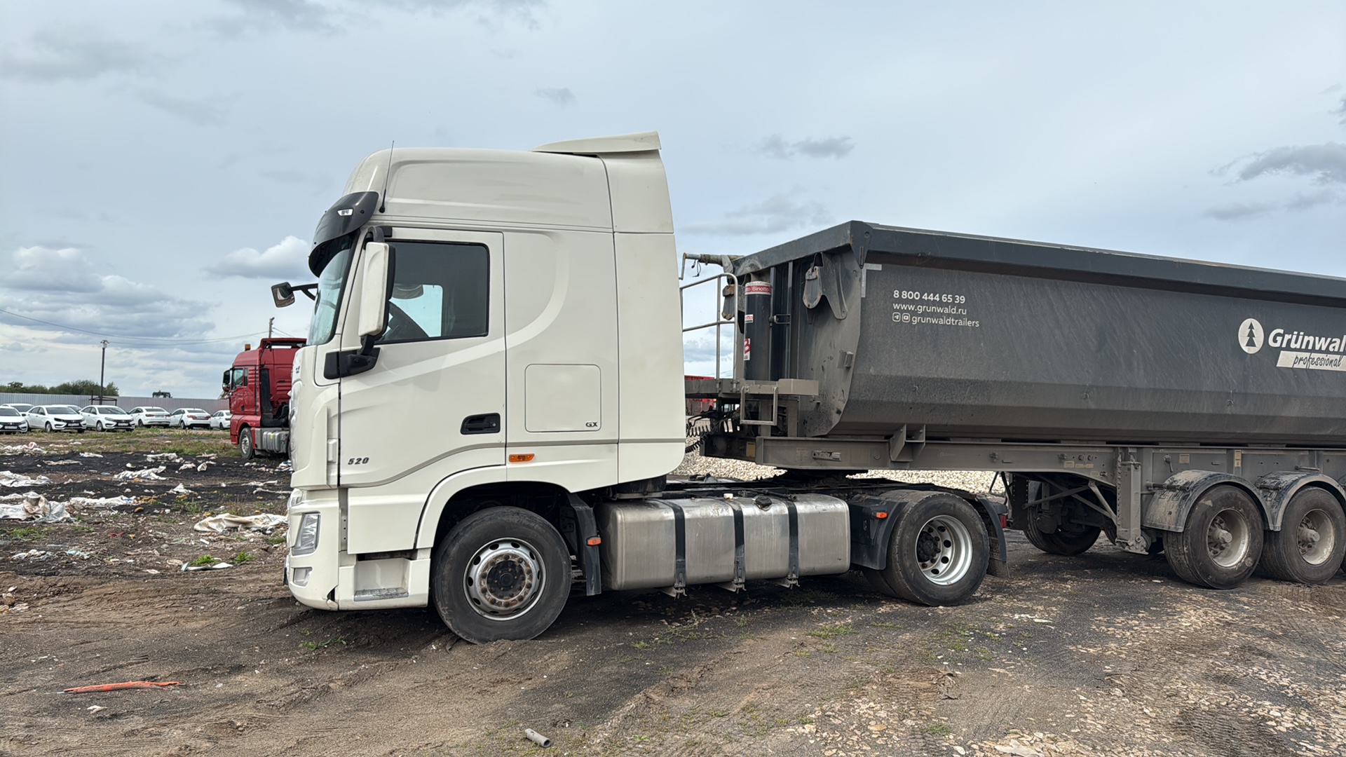 Номер лота: 000015251 Наименование изделия: DFH4180 4X2 Diesel Tractor тягач Общая длина шасси 6260 Ширина 2500 Высота (без груза) 3860 Колесная база 3800 Передний свес 1480 Задний свес 980 Общий вес 18000 Снаряженная масса 8440 Суммарный вес 44000 Ширина рамы спереди 1080 Ширина рамы сзади 850 Высота по профилю 280 Ширина по профилю 90 Двигатель Тип Cummins Z14EVIE520 Максимальная мощность 381KW Максимальный крутящий момент 2470N.m Число цилиндров 6 Объем двигателя (л) 13480cm3 Тип двигателя Водяное охлаждение, турбонаддув, последующее охлаждение, прямой впрыск, топливная система высокого давления Common Rail, +DOC+DPF+SCR+ASC Сцепление Тип SACHS Диаметр диска ¢430mm Тип работы Нажимной тип, гидравлическое управление с пневматическим приводом Коробка передач Тип ZF12TX2620 AMT Количество передач 12 передач переднего и 4 передачи заднего хода, синхронизированные Передаточные числа 16.688,12.924,9.926,7.688,5.895,4.565,3.655,2.831,2.174,1.684,1. 291,1, 15.537R1,12.033R2,3.403R3,2.636R4 Тормозная система Полная пневматическая тормозная система, разделенный пневматический контур, стояночный пружинный тормоз, действующий на задние оси, дисковый тормоз, моторный тормоз, ASR, ESC, TPMS,LDWS+FCWS, гидравлический тормоз ретардер Кабина Тип управления «вперед», высокая крыша KX, два спальных места, цельносварная стальная кабина, электрическое опрокидывание кабины, пневматическая подвеска кабины, регулируемое сиденье водителя, автоматическая система кондиционирования воздуха, электрические стеклоподъемники, центральный замок, парковочный обогреватель, кондиционер, электрические стеклоподъемники, центральный замок, парковочный обогреватель, холодильник. Мосты Передний Марка DANA, тип Elliot, двутавровое сечение, необслуживаемый FAG колёсная часть Нагрузка (тонн) 7 Задний Марка DANA, одинарная редукция с блокировкой колес, передаточное число 2,69,FAG необслуживаемая колесная пара Нагрузка (тонн) 13 Шины 315/70 R22.5 стальные диски Подвеска Передняя 2-листовая рессора Задняя Полностью пневматическая подвеска Аккумулятор Вольтаж 24 Емкость (А*Ч) 220х2 необслуживаемые Топливный бак Тип Топливный бак из алюминиевого сплава с запираемой крышкой Емкость Основной бак и вспомогательный бак более 1100 л Тип седельно-сцепного устройства JOST 50# - 1150 мм Иное Ветрозащитный дефлектор крыши и задний воздушный спойлер, солнцезащитный козырек Люк, спиральный провод ABS к прицепу
