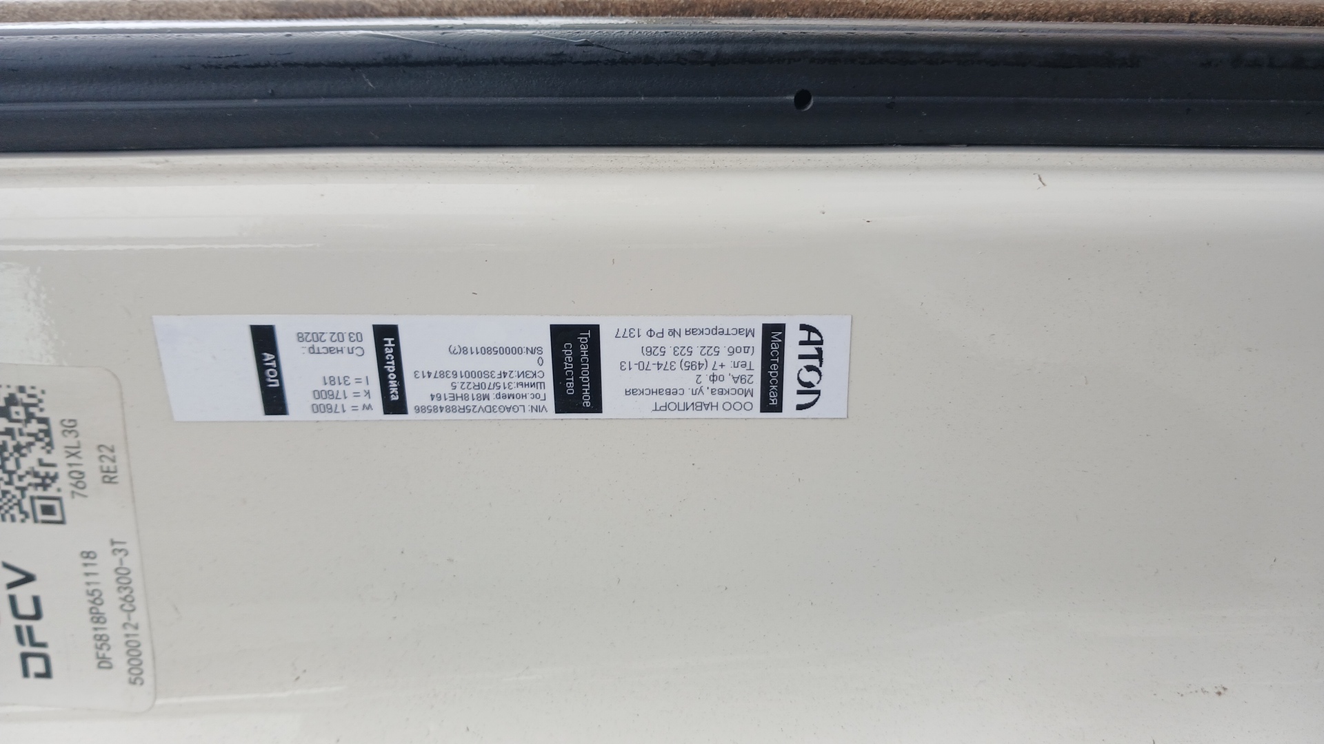 данные о машине