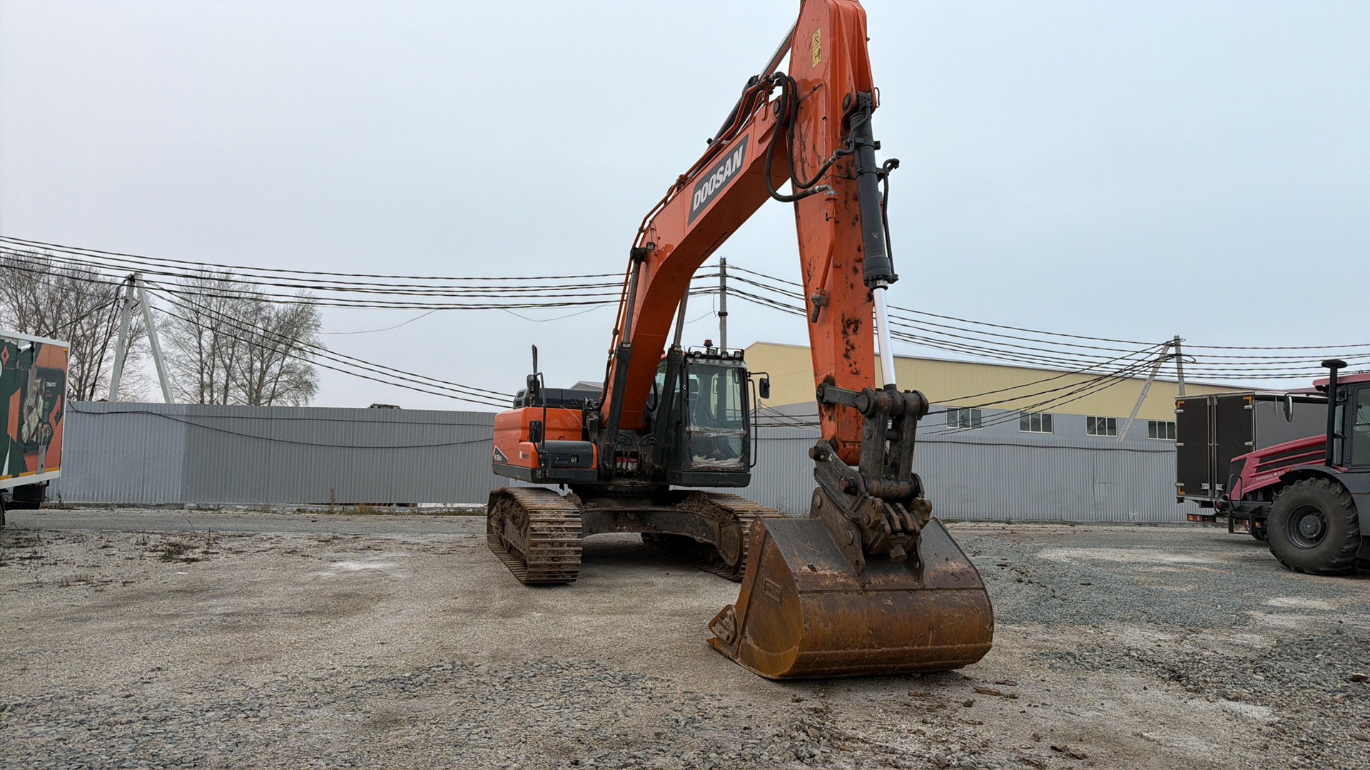 Ответственный за реализацию ТС Мозжерин Александр Сергеевич Не снят с учета Спецификация изготовителя (Масса 32,4 т, Ковш 1,7 м3) Двигатель Doosan DL08, 248 л.с. при 1 900 об/мин, TIER III Механический ТНВД с электронным управлением (Common Rail) Фильтр-водоотделитель с подогревом Фильтр грубой очистки воздуха циклонного типа Насос перекачки топлива Емкость топливного бака 500 л Электрооборудование Стартер 24 В / 6 кВт Батареи 2 x 12 V / 150 А.час Генератор увеличенной мощности 80 А 6 фар на кабине (4 вперед, 2 назад) Галогеновые фары на стреле (2 шт) Проблесковый маячок Ходовая часть Опорные катки – 9 шт Башмаки – 600 мм Давление на грунт – 0,60 кг/см2 Скорость хода (быстрая/медленная) - 5,3 / 3,0 км/ч Гидравлическая система Основные насосы - 2 х 266 л/мин Номинальное давление: 330 кгс/см2 Габаритные размеры 10 610 мм х 3 200 мм х 3 370 мм Кабина Кондиционер и обогреватель Козырек от дождя Высокое сиденье оператора с подогревом Стальной люк Боковые зеркала Противошумный комплект Производитель Hyundai Doosan Infracore co., Ltd Основные параметры оборудования Усиленная стрела (HD) 6 245 мм Усиленная рукоять (HD) 3 100 мм Усилие на ковше 20 200 кгс / 198 кН Скорость поворота от 0 до 9,6 об/мин