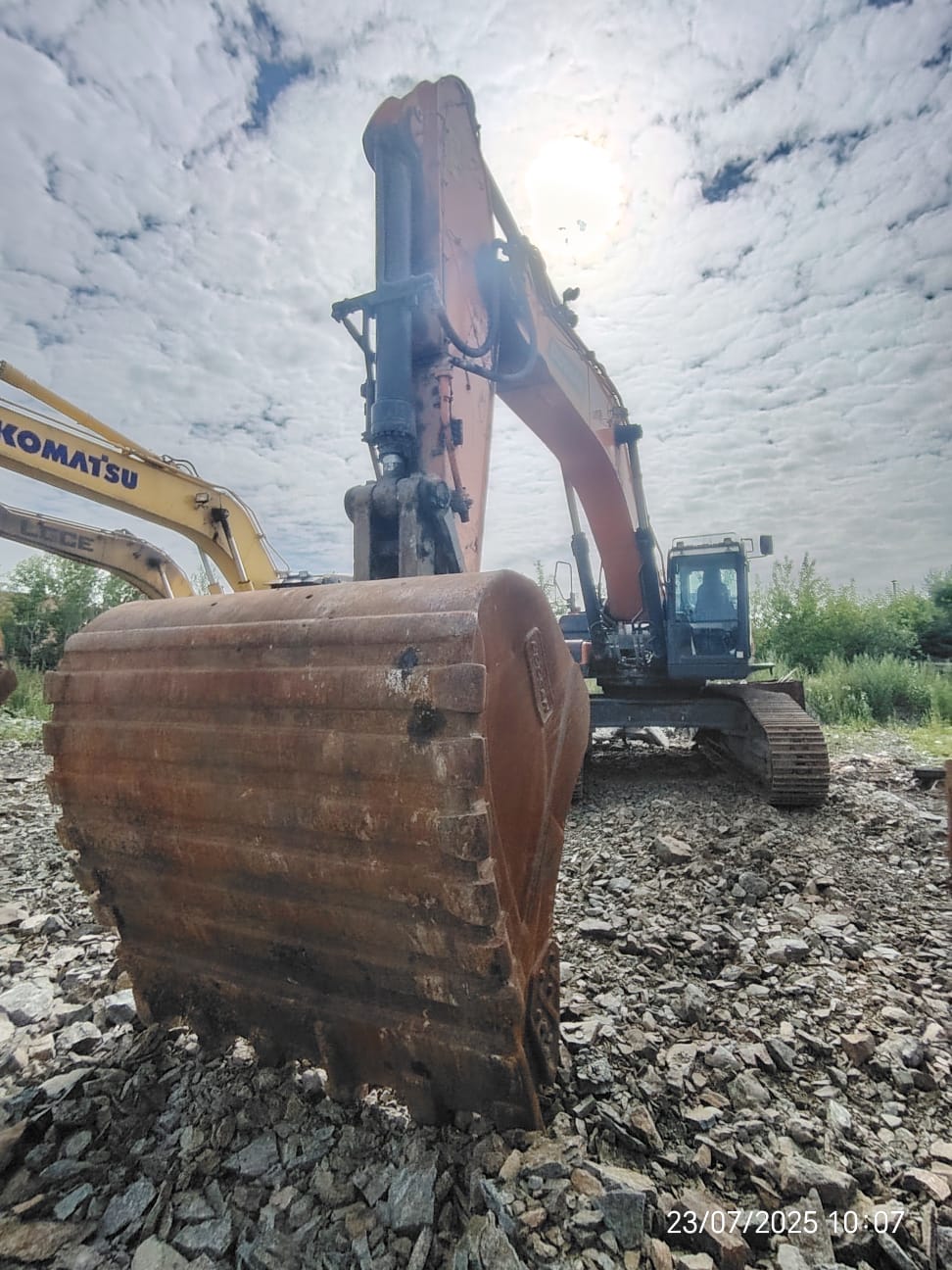 Гусеничный экскаватор Doosan DX530LCA-7M (Doosan DX12TI, 344 л.с. при 1 900 об/мин, масса 52900 кг, усиленная стрела (HD) 6 300 мм, усиленная рукоять (HD) 2 900 мм, ковш 3,6 м3, усиленная Х-образная рама, кондиционер, радио+МР3 (стерео), стальной люк, козырек от дождя, насос для перекачки топлива, устройство защиты при опрокидывании ROPS, фильтр-водоотделитель с подогревом, проблесковый маячок, светодиодные фары, комплект фильтров, дополнительная однопоточная гидролиния для подключения навесного оборудования) Двигатель Doosan DС13, 400 л.с. при 1 900 об/мин Фильтр-водоотделитель с подогревом Фильтр грубой очистки воздуха циклонного типа Насос перекачки топлива Емкость топливного бака 626 л Ходовая часть Опорные катки – 9 шт Башмаки – 600 мм Давление на грунт – 0,89 кг/см2 Скорость хода (быстрая/медленная) - 5,5 / 3,1 км/ч Электрооборудование Стартер 24 В / 7 кВт Батареи 2 x 12 V / 200 А.час Генератор увеличенной мощности 80 А Проблесковый маячок Гидравлическая система Основные насосы - 2 х 390 л/мин Номинальное давление: 350 кгс/см2 Емкость гидробака 390 л Кабина Радио+МР3 (стерео) Кондиционер и обогреватель Козырек от дождя Стальной люк Боковые зеркала Габаритные размеры 11 530 мм х 4 100 мм х 4 185 мм Основные параметры оборудования Усиленная стрела (HD) 6 300 мм Усиленная рукоять (HD) 2 900 мм Усилие на ковше 29 900 кгс / 293,2 кН Скорость поворота от 0 до 9 об/мин
