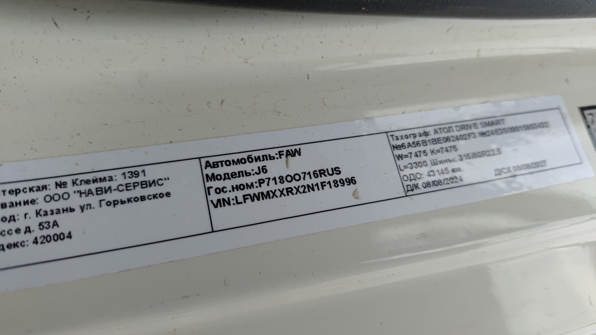 данные о машине