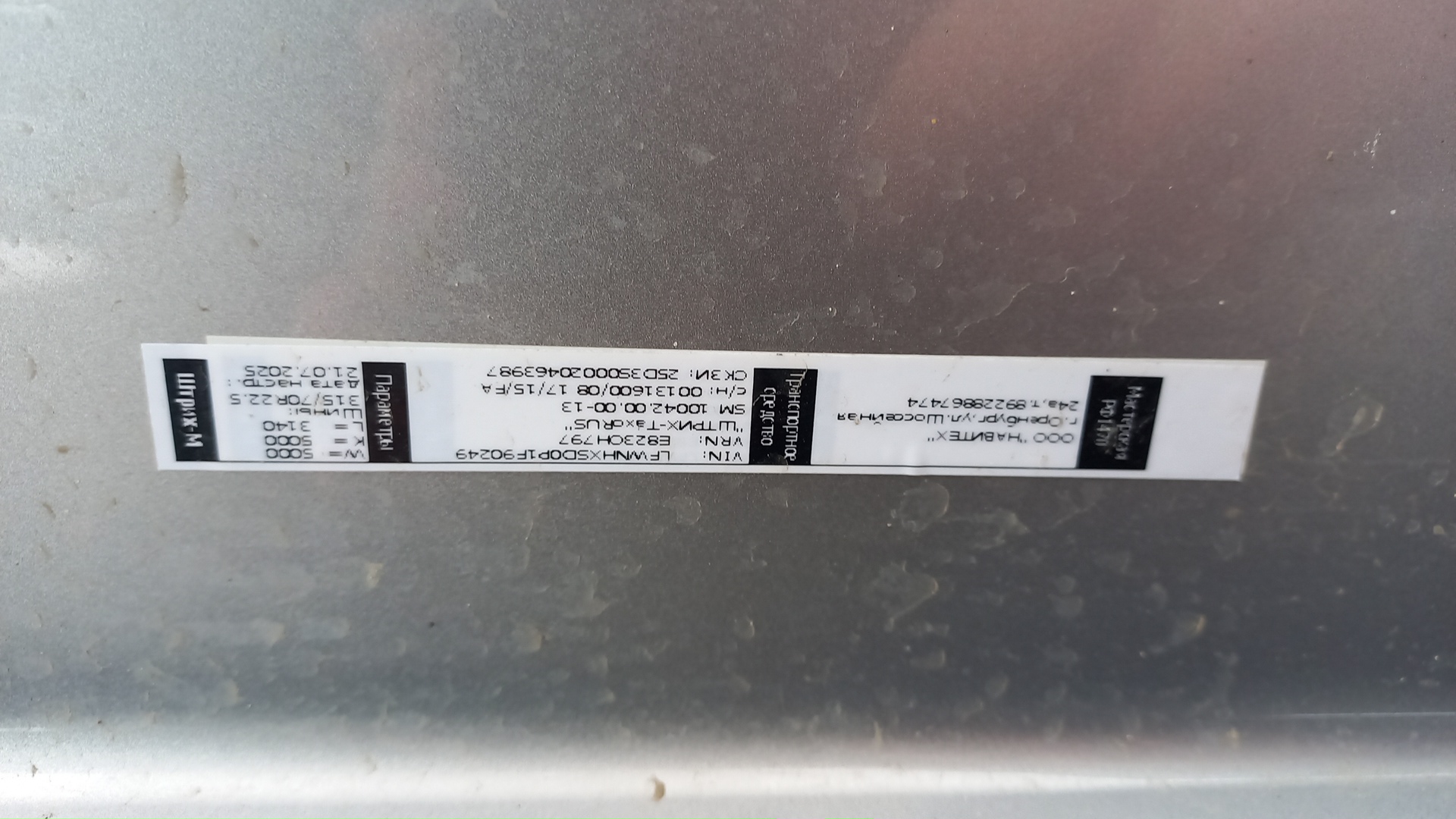 данные о машине