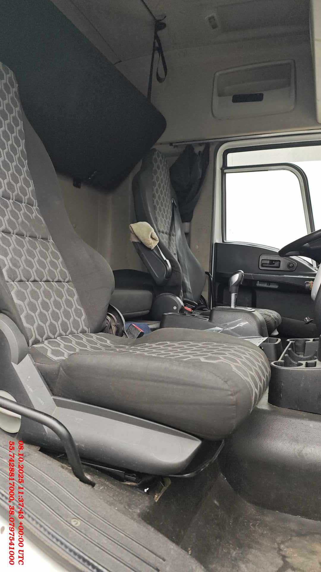 В комплектации: • антиблокировочная система (АBS, EBS); • горный тормоз - моторный; • электропривод и обогрев зеркал; • электростеклоподъёмники; • бортовой компьютер; • противотуманные фары; • кондиционер; • круиз-контроль; • сухой автономный отопитель; • тахограф; • магнитола; • огнетушитель; • буксировочный крюк; На тягаче установлены: • рядный 6-ти цилиндровый двигатель FHT5; • механическая 8-ми ступенчатая коробка передач ZF с делителем; • топливная система - Common Rail; • пневмо-рессорная подвеска;