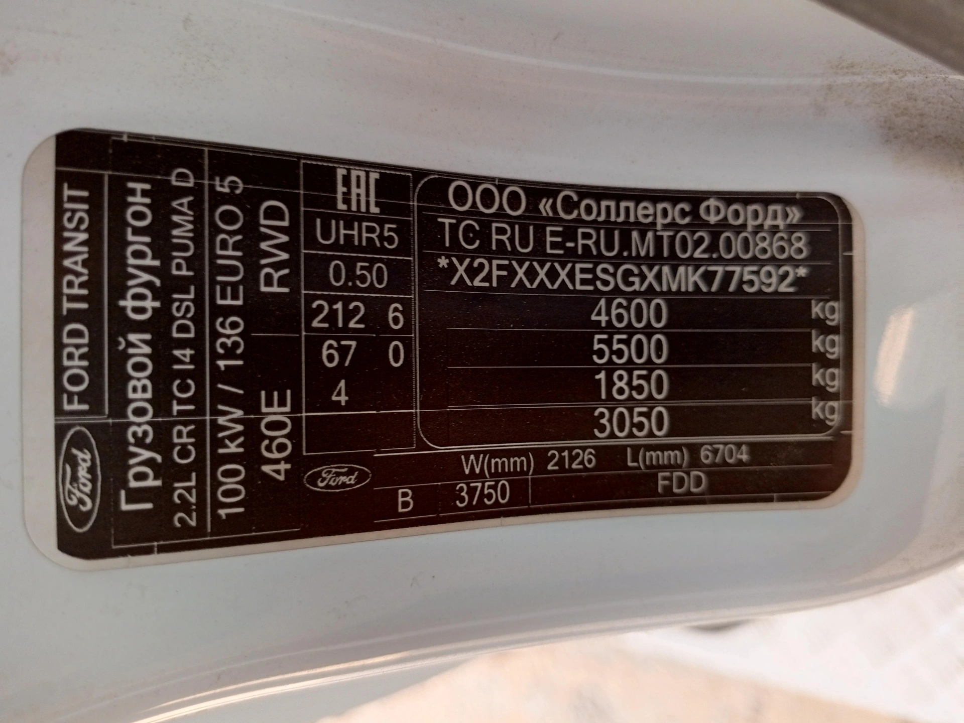 данные о машине
