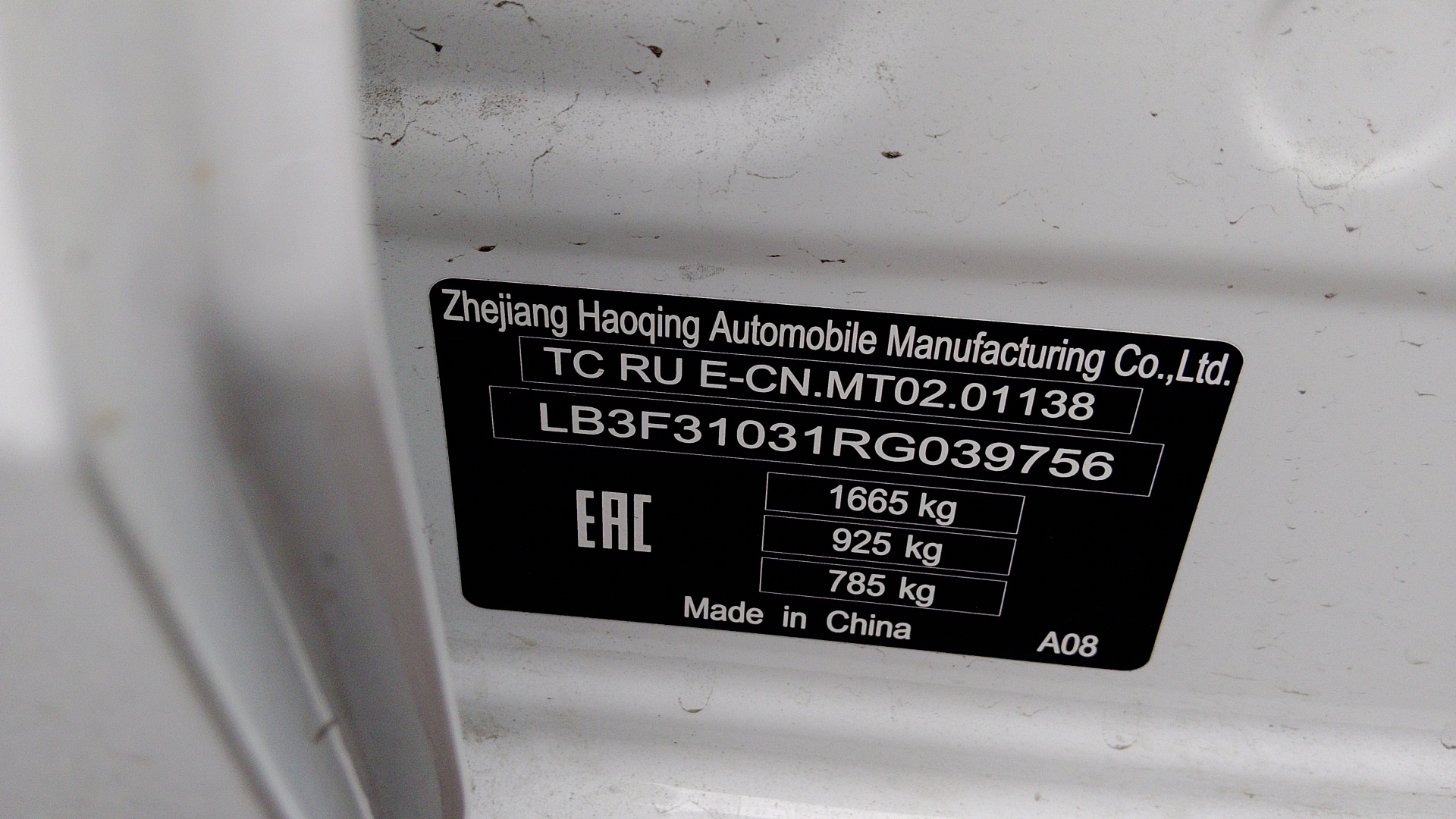 данные о машине