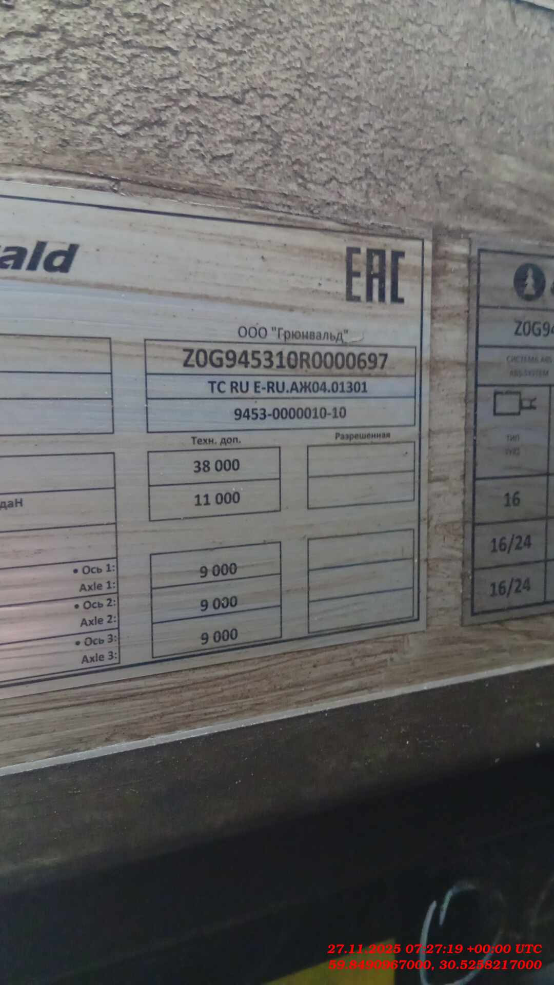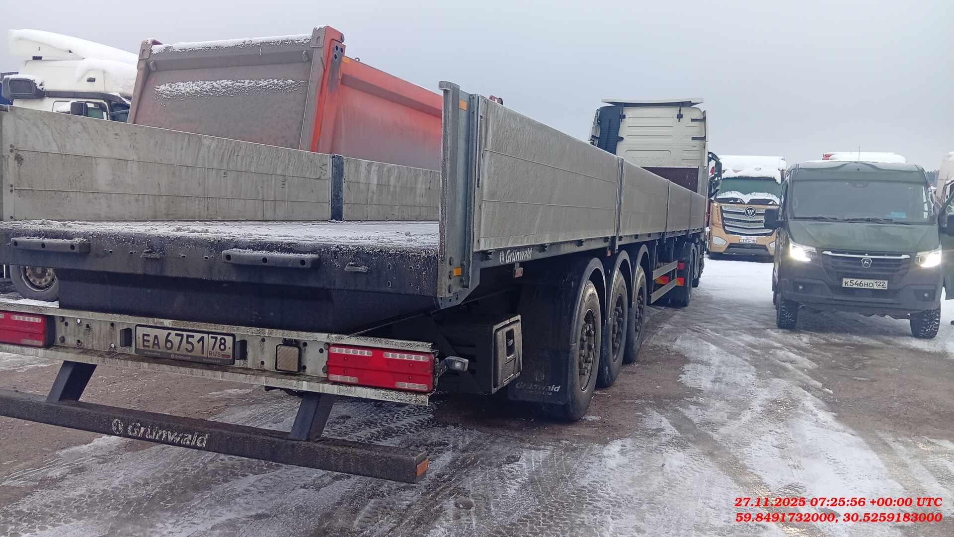 Номер лота: 000017319 📍Место осмотра: Санкт-Петербург, Ленинградская область, деревня Новосаратовка, улица Рабочая дом 8 Технические характеристики: Конструкция шасси • Сварная рама, усиленная большим количеством поперечен. • Лонжероны рамы выполнены из стали OVAKO 420. • Интегрированные в раму отверстия для установки коников в количестве 20 штук. • По периметру полуприцепа предусмотрены утапливаемые в полу скобы в количестве 26 штук. Допустимая нагрузка 2000 кг на скобу. • Механическое двухскоростное опорное устройство. • Боковая и задняя противоподкатная защита в соответствии с Правилами ЕЭК ООН. Конструкция надстройки • Усиленная передняя стенка из полого алюминиевого профиля. • Съемные алюминиевые борта высотой 600 мм. • Съемные боковые стойки. • Пол из влагостойкой фанеры толщиной 30 мм. Осевой агрегат • 3 оси в усиленном исполнении – HJ / аналог, грузоподъемностью 9 000 кг каждая. • Пневматическая подвеска. • Подъемная ось (клапан). Тормозная система • Тормозные механизмы дискового типа • Модулятор ABS SORL или аналог Электрооборудование • Светодиодная оптика ERMAX TM11 или аналог. • Двухпроводная система, рабочее напряжение 24 V. Шины и диски • Ошиновка односкатная, размерность 385/65 R22,5. Количество колес 6 + 1 запасное. • Стальные диски. Лакокрасочное покрытие • Покраска производится в соответствии с требованиями ISO для суровых климатических условий. • Возможна покраска в любой цвет по системе RAL. Прочее оборудование • Корзина для двух запасных колес, крепление для одного колеса. • Противооткатные упоры. • Инструментальный ящик. • Задний защитный брус и боковая противопоткатная защита в соответствии с Правилами ЕЭК ООН. Сертификация • Полуприцепы Grunwald сертифицированы в соответствии с последними правилами Росстандарта РФ. 🅰️ Мы — компания Альфа-Лизинг. Более 27 лет работаем с предпринимателями. Покупка возможна удобным для вас способом — оформление в лизинг или покупка за собственные средства. 💵 Стоимость в объявлениях уже включает НДС. У нас более 70 офисов, наши специалисты помогут заключить договор в любом городе России. ☎️ Записаться на осмотр и узнать более подробную информацию вы можете по телефону, указанному в объявлении. Звоните! Все представленные автомобили находятся в наличии в нашем автопарке. ✔️ Техника имеет прозрачную историю эксплуатации ✔️ Прошла необходимые проверки ✔️ Доступна к покупке в короткие сроки Техника доступна в аренду. Почему мы? ✅ Работаем с бизнесом любого размера ✅ Оформляем лизинг на выгодных вам условиях и с авансом от 0% ✅ Предоставляем технику в любом уголке России ✅ Быстрое оформление по 2 документам ✅ Скидка 5% для клиентов Альфа-Банка ✅ Гарантируем юридическую чистоту сделки и безопасность приобретения ❤️ Добавьте объявление в избранное, чтобы не потерять! Полный каталог автомобилей с пробегом доступен на нашем сайте в разделе «Техника с пробегом».