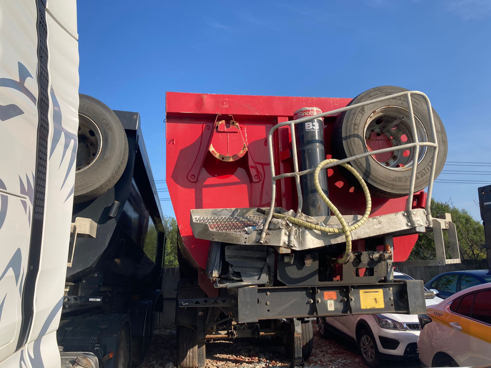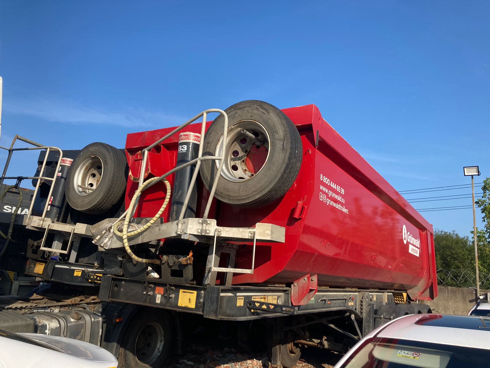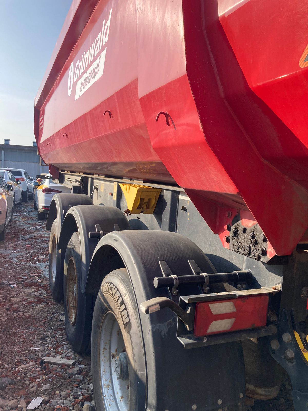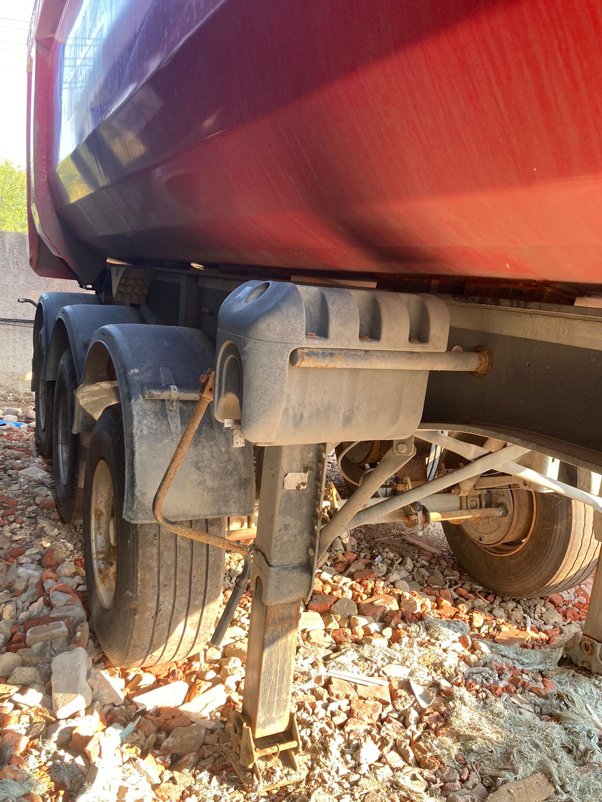 Не на ходу, заблокированы колеса на одной из осей. Полуприцеп самосвал Grunwald 9453-0000010-50 / 9453-0000011-50 Технические характеристики Тип полуприцепа Полуприцеп самосвал Назначение полуприцепа Предназначен для перевозки сыпучих грузов Модель полуприцепа 9453-0000010-50 / 9453-0000011-50 Высота ССУ 1220 мм Цвет рамы На усмотрение Продавца Цвет кузова На усмотрение Продавца Кузов Объем кузова 31 м3 Форма кузова Полукруглый (Half Pipe) Материал кузова Сталь Задний борт Откидной прилегающий борт Подъем кузова Гидроцилиндр (Hyva / Binotto) Подогрев кузова Нет Тент Сворачиваемый (ручное скручивание) Рама Рама Сварная усиленная рама Шкворень 2 дюйма Бампер Стальной Шасси Оси полуприцепа 3 оси (BPW) Нагрузка 9 000 кг. на каждую ось Подвеска Пневматическая Подъемная ось На усмотрение Продавца Тип тормозов Барабанные Тип ABS ABS/EBS (На усмотрение Продавца) с РУ Осей с ABS 1 ось с датчиками ABS