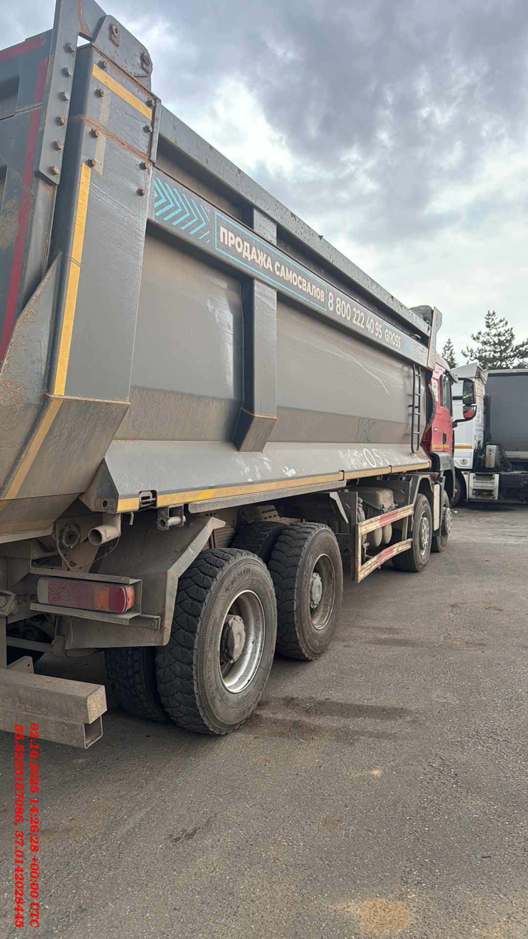 номер лота 000017263 ответственный Маштаков Юрий ОБЩИЕ ХАРАКТЕРИСТИКИ: Колесная формула 8х4 Топливный бак, л (алюминиевый) ~600 Габариты кузова, мм 7100*2300*1500+300 Задний мост 16-тонн Передняя балка 9-тонн Шины 315/80 R22,5, бескамерные ДВИГАТЕЛЬ: Модель двигателя MC11.44-50 Тип Четырёхтактный дизель Количество и расположение цилиндров 6, рядное Рабочий объем цилиндров, см3 10518 Мощность двигателя, кВт 324 Трансмиссия: Тип Механическая КПП 12 –вперед, 2-назад (с делителем)