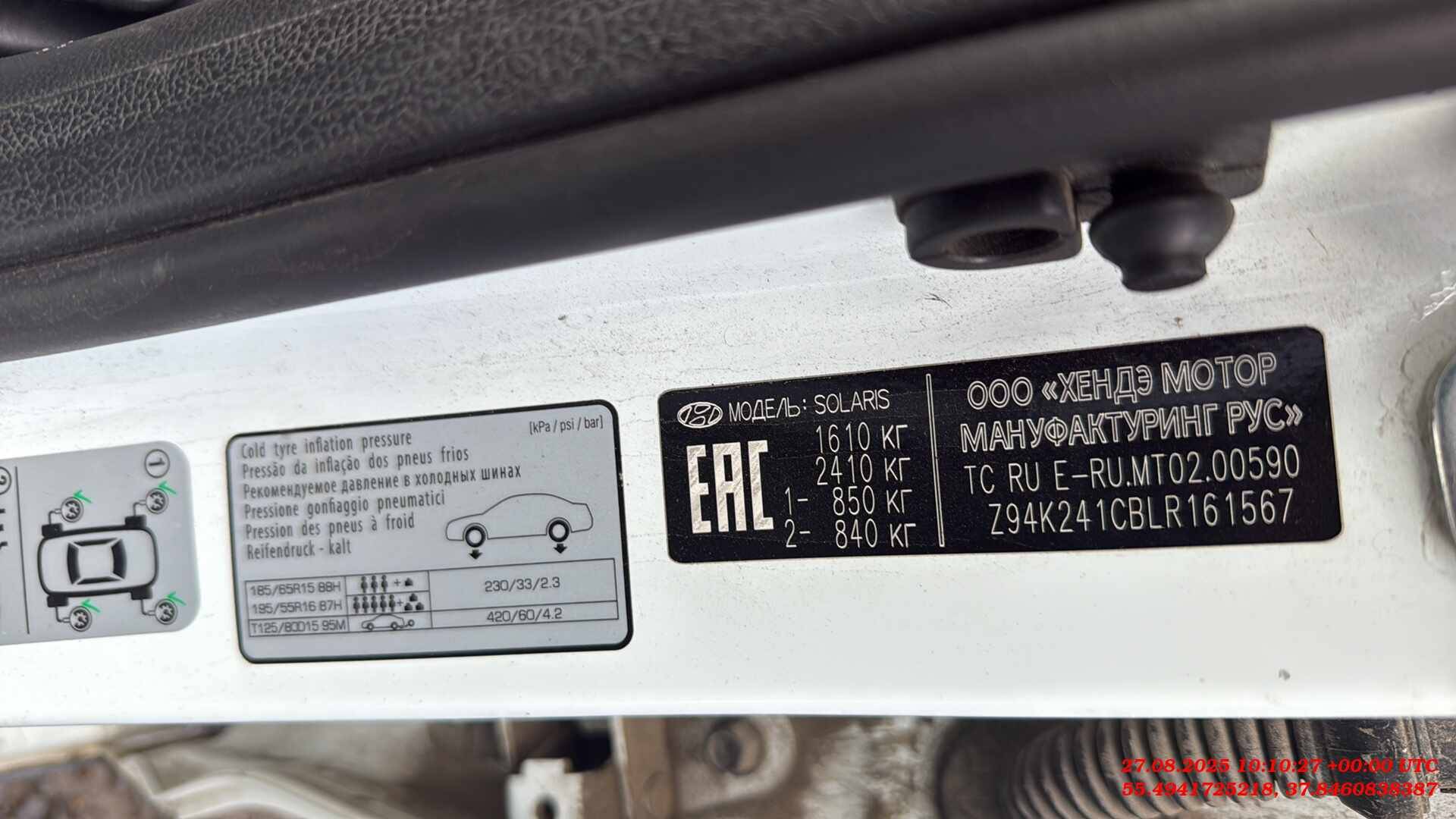 данные о машине