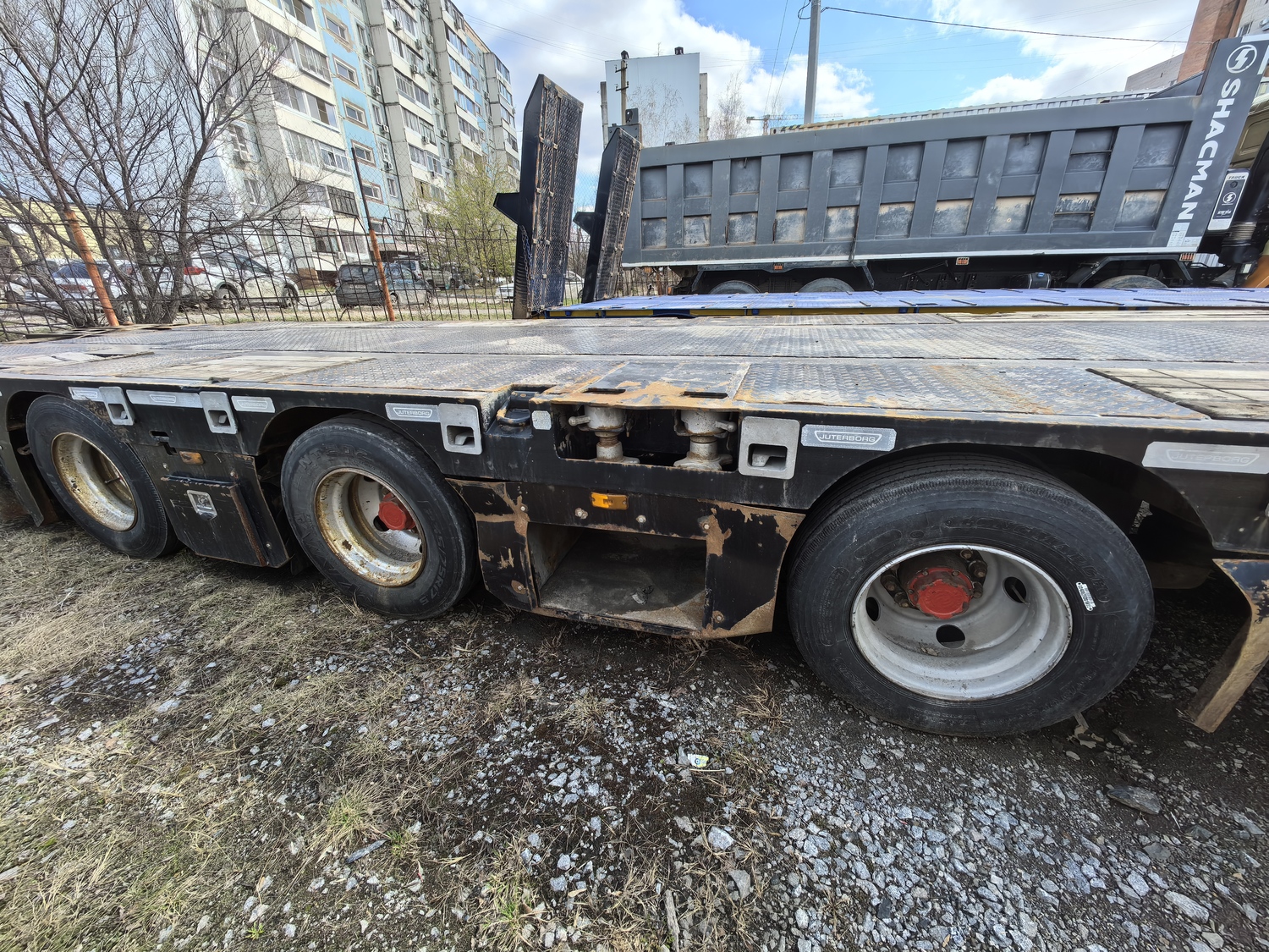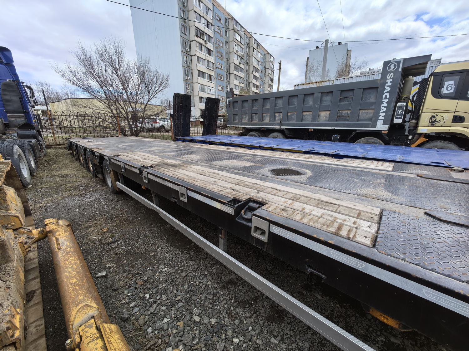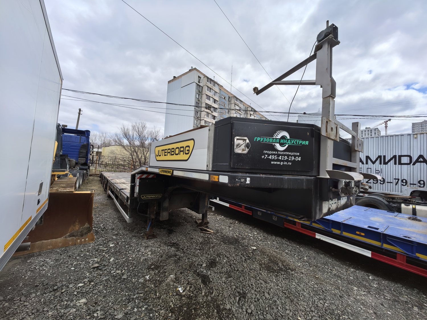 Ответственный за реализацию: Кирилин Александр Номер лота: 000008644 Технические характеристики Характеристика массы Грузоподъемность (max), кг. 50 000 Собственная масса, кг. 12 500 Полная масса, кг. 62 500 Нагрузка на ССУ, кг. 18 500 Нагрузка на оси, кг. 44 000 Габаритные размеры полуприцепа Общая длина, мм. 16 405 Ширина/ с уширителями, мм. 2 500/ 3 000 Погрузочная платформа Погрузочная высота, мм. 900 Длина рабочей платформы, мм. 12 300 Ширина рабочей платформы/ с уширителями, мм. 2 500/ 3 000 Настил платформы Комбинированный (металл+дерево) Гусачная часть Шкворень, дюйм.(мм.) 2 Высота ССУ, мм. 1 300 Радиус ометания, мм. 2 300 Опорное устройство 24 тн., механическое, телескопического (винтового) типа с односторонним управлением (Германия) Настил платформы (гусак) Металл (рифленый) Ходовая часть Количество осей, шт. (подъемные/самоустанавливающаяся) 4 (1/1) – 1ая подъемная, 4ая поворотная Межосевое расстояние, мм. 1500/1500/1500 Подвеска (тип) Пневматическая, зависимая Оси, производитель Alion Количество колес (запасных) 16 (2) Диски Стальные Шины (размерность) Пневматические 235/75 R17.5 Ошиновка Двускатная Тормозная система Рабочая тормозная система Барабанная, колодочная на все колеса с пневматическим приводом от тягача по ГОСТ, с ABS Система пневмопривода тормозов С энергоаккумуляторами Трапы Тип, шт. Уголковые аппарели Ширина трапа, мм. 350 Смещение: направление До уширения Угол заезда по трапам, градусы 14-16° Электрооборудование Напряжение, В 24В стандарт, двухпроводное, с питанием от тягача, количество и расположение приборов в соответствии с ГОСТ, ЕСЕ и АDR, разъемное соединение в соответствии с ЕСЕ Дополнительно оборудование Борта на гусачной части (высота, мм.) Алюминиевые, 400 Уширители рабочей платформы, тип Выдвижной Настил для уширителей Доска (50 мм.) в металлическом поддоне (3 мм.) Инструментальные ящики, шт. Установлены Противооткатные упоры, расположенные на специальном кронштейне, шт. 2 (Германия) Кран подъема запасного колеса Установлен Дополнительная опорная лапа Установлена Петля для увязки груза, шт. (расположение) 14 (по периметру) Дополнительные места для увязки груза в боковом швеллере, шт. 8 Съемная боковая защита в соответствии с ЕСЕ Установ Алюминиевая, установлена Знаки «Негабаритный груз», шт. 4 (выдвижные, с пульсацией) Стаканы под коники (стойки), шт. 10 Контейнерные замки 2*20 фут, 1*40 фут