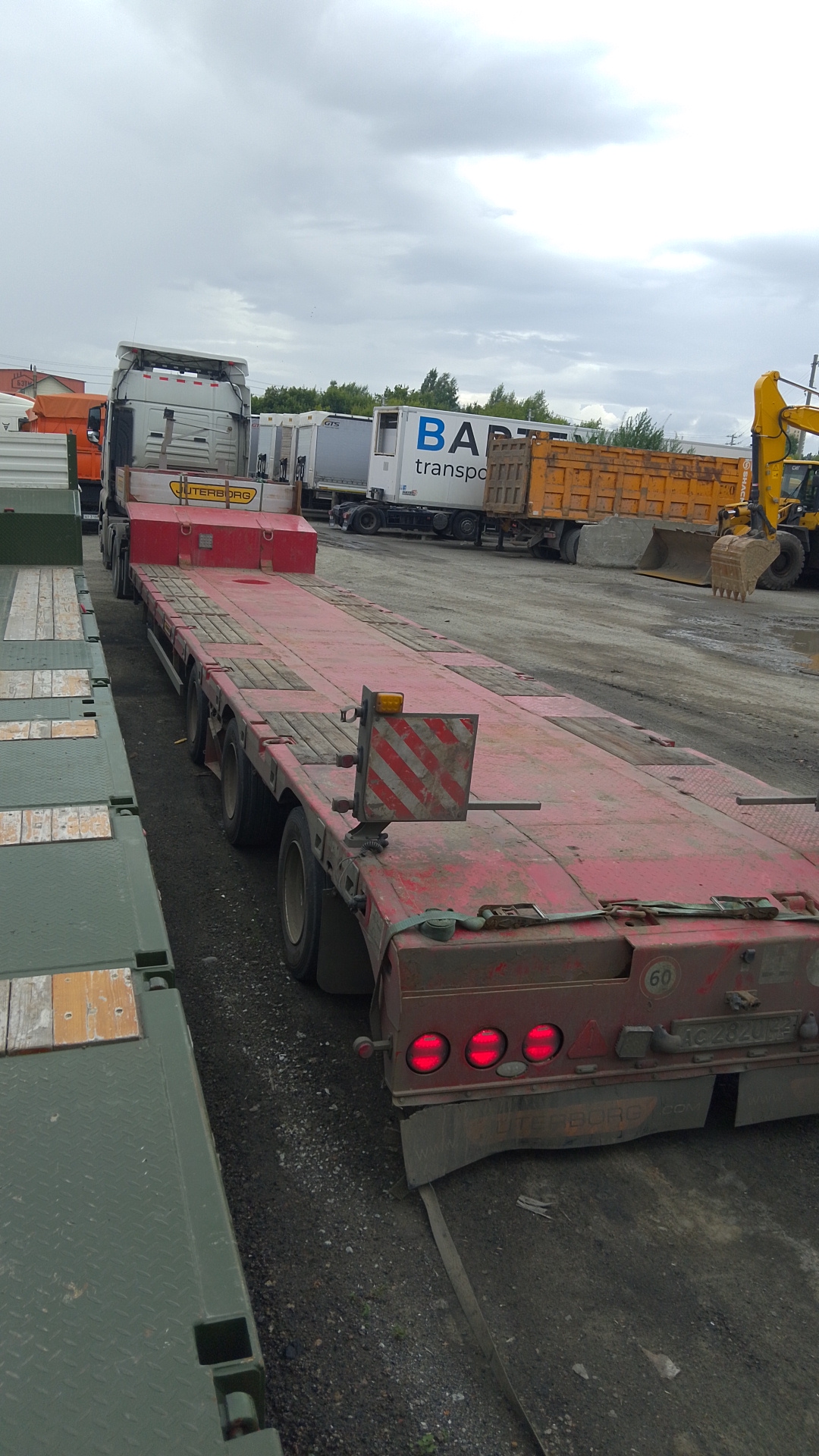 Номер лота: 000012455 Место осмотра: г. Барнаул ТЕХНИЧЕСКИЕ ХАРАКТЕРИСТИКИ: Грузоподъемность технически допустимая, кг: 40 000 Собственная масса, кг: 10 000 Общая масса, кг: 50 000 Нагрузка на оси, кг: 33 000 Нагрузка на ССУ, кг: 17 000 Погрузочная высота, мм: 900 ________________________________________ Гусак Высота лонжерона составляет 360 мм, допустимая нагрузка на заднюю ось тягача 17 000 кг. От передней поперечины до центра шкворня 1000 мм, угол сдвижения 400×400 мм. Высота ССУ 1250 мм. Настил металл рифлёный, толщиной 4 мм. Гусак шириной 2500 мм. Радиус отметания 2300 мм. Шкворень сменный 2”/3,5 дюйма. Опорное устройство двухскоростное, г/п 25 тн. Кронштейны запасного колеса в передней части гусака. Борт, высотой 400 мм. ________________________________________ Подвеска Пневматическая. Оси Granning (Ирландия) 11Т. Количество осей / колёс: 3/12 (2). Подвеска двухпакетная. Первая ось подъемная, вторая и третья стационарные. Межосевое расстояние 1810/1810 мм. Тормозная система двухпроводная, с энергоаккумуляторами, ручной тормоз. Размерность шин 235/75 R17.5. Диски стальные. ________________________________________ Светотехника Задние фонари и боковые габаритные огни сертифицированы в ЕС. Выход для проблескового маяка сзади. Розетка 7 pin – 2 шт., 15 pin – 1 шт. Электрика 24В. ________________________________________ Погрузочная платформа Погрузочная высота 900 мм. Рама полуприцепа выполнена из высокопрочной стали. Ширина площадки 2500 мм (с уширителями – 3000 мм). Настил комбинированный (дерево + металл рифлёный, толщиной 4 мм). Боковая защита алюминиевая. Петли для увязки груза расположены по периметру площадки, 14 шт. Дополнительные места крепления груза. Оснащена стяжными ремнями, цепями. Дополнительная опорная балка служит для распределения нагрузки при заезде техники по трапам. Уширители выдвижного типа до 3000 мм. ________________________________________ Трапы Приставные алюминиевые (2400×500 мм). Угол заезда 14–17°. ________________________________________ Дополнительное оборудование Запасное колесо 2 шт. ABS. Выводы воздуха, соединения ПАЛМ. Противооткатные упоры – 2 шт. Знаки «Негабаритный груз» со стробоскопами – 4 шт. Манометры. ________________________________________ Покраска Перед покраской рама полуприцепа проходит дробеструйную обработку, затем наносятся антикоррозийное покрытие и окрашивается (эпоксидный грунт, полиуретановая краска) в покрасочной камере (рама окрашивается изнутри). Цвет: красный Покупка возможна удобным для вас способом — оформление в лизинг или покупка за собственные средства. У нас обширная география присутствия на территории страны – более 70 офисов, поэтому наши менеджеры помогут заключить договор в любом городе России. Стоимость в объявлениях уже включает НДС. Записаться на осмотр и узнать более подробную информацию вы можете у наших специалистов по телефону, указанному в объявлении. Звоните! Мы — компания Альфа-Лизинг. Более 26 лет мы работаем с предпринимателями и создаём лизинговые продукты, предлагая для покупки легковые и грузовые автомобили, лёгкий коммерческий транспорт, прицепы и полуприцепы с пробегом, оборудование с наработкой. Все представленные автомобили находятся в наличии в нашем автопарке. Техника с пробегом имеет прозрачную историю эксплуатации, прошла необходимые проверки и доступна к покупке в короткие сроки. Мы гарантируем юридическую чистоту сделки и безопасность приобретения. Почему мы? - Работаем с бизнесом любого размера - Оформляем лизинг на выгодных вам условиях и с ав