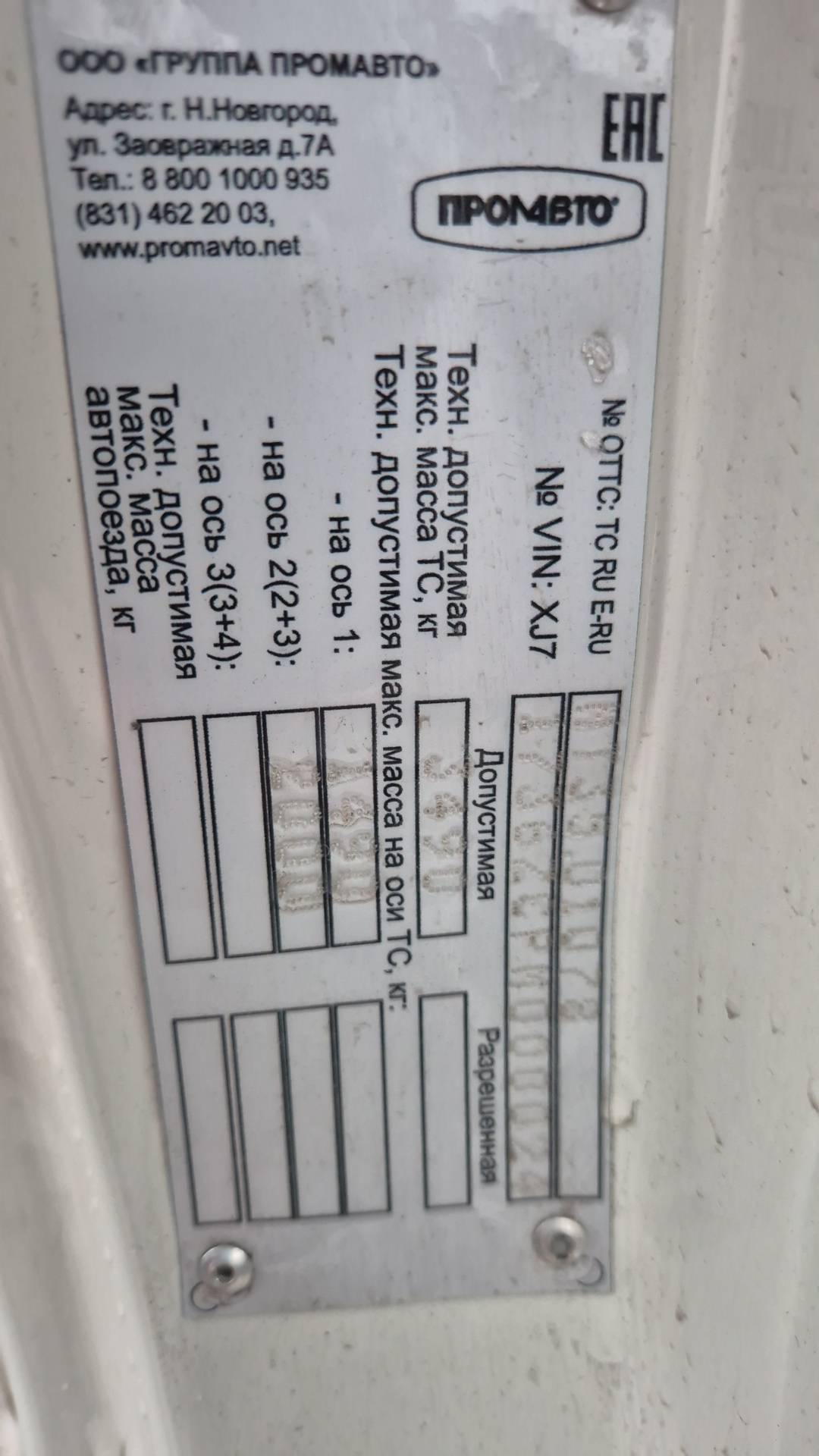 данные о машине