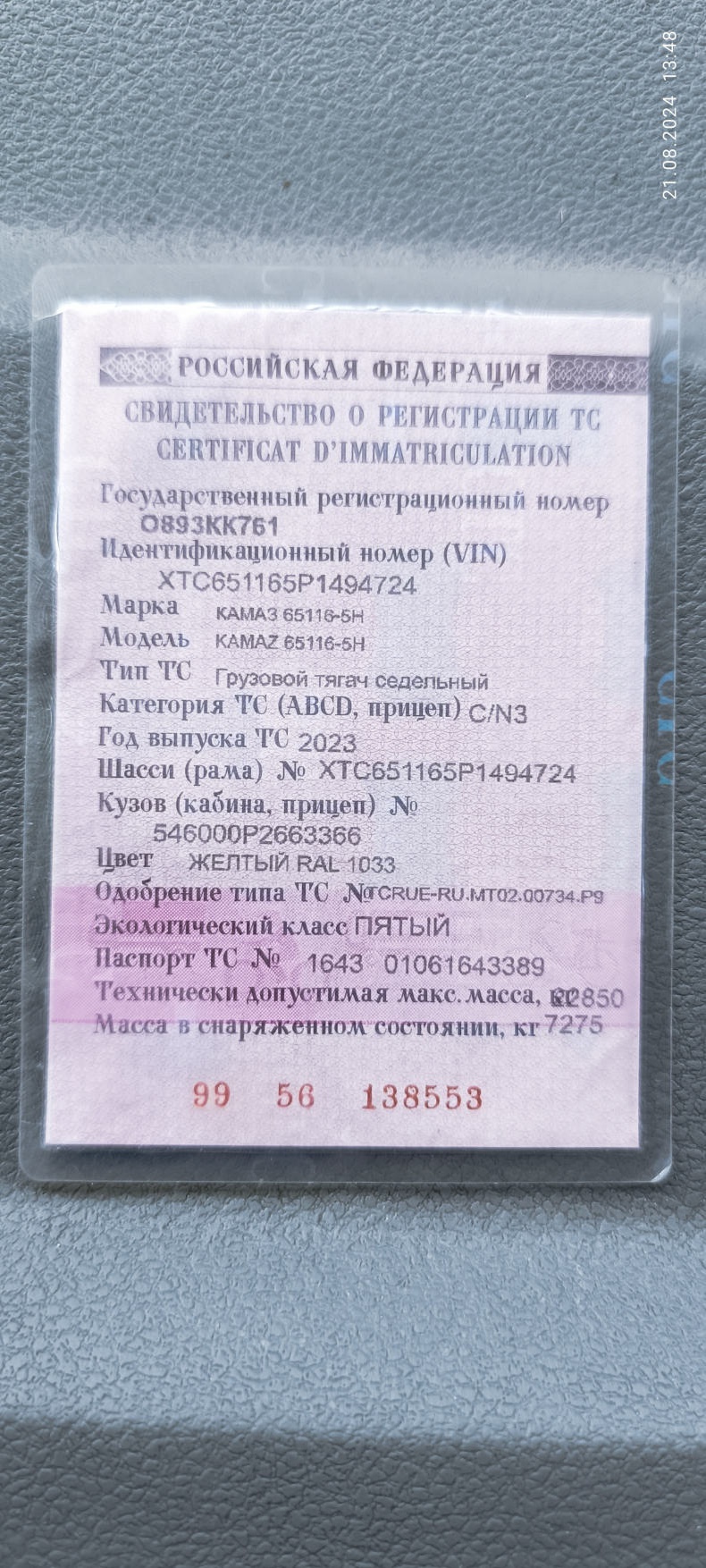 данные о машине