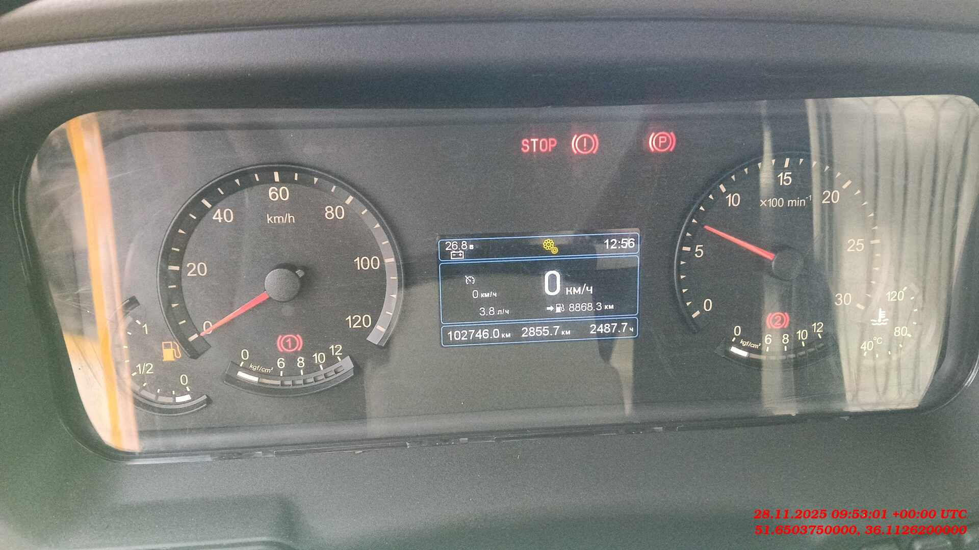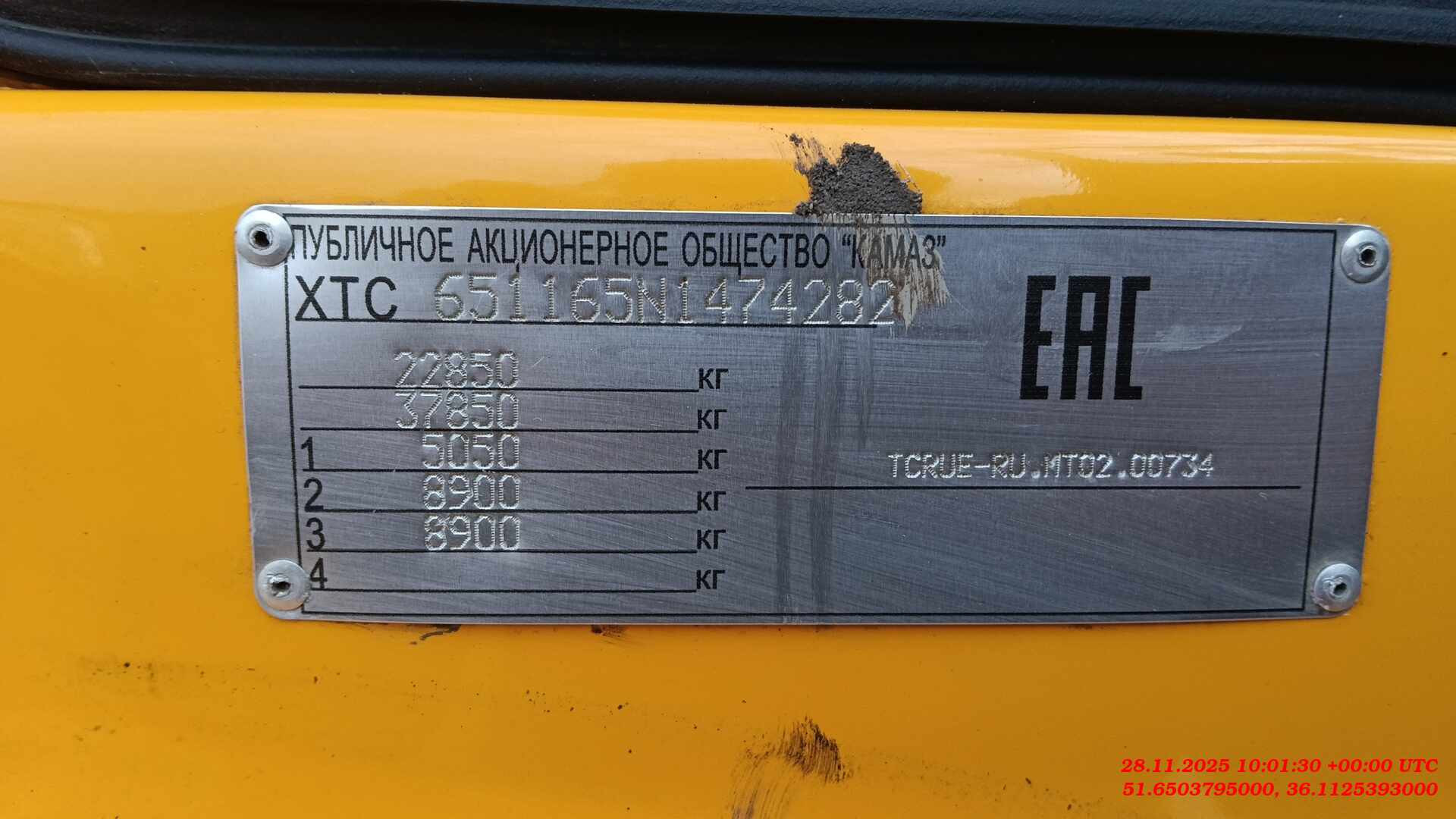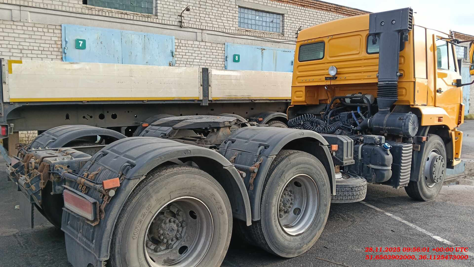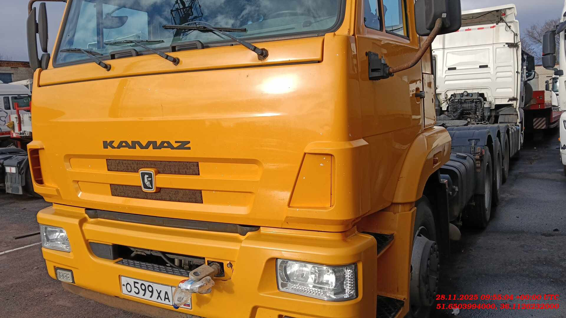 Ответственный за реализацию: Миллер Алексей. Адрес стоянки: г. Курск, Первомайская 139а. Экологический фактор (уровень евро) Евро-5 Мощность двигателя, л.с. 292 л.с. Нагрузка на ССУ, кг 15500 Число передач КП 9 Двигатель производитель модель КАМАЗ 667.510-310 (Е-5), Полная масса автомобиля, кг 22850 Технически допустимая общая масса автомобиля, кг 22850 на задний мост, кг 5050 Колесная формула 6x4 Высота ССУ, мм 1330 Коробка передач, тип ZF Тип кабины высокая со спальным местом , рестайлинговая, аэродинамический козырек Топливный бак, л 350 Снаряженная масса автомбиля, кг 7275 на переднюю ось, кг 17800 Максимальный крутящий момент, Нм 1087 Размерность шин 11R22.5