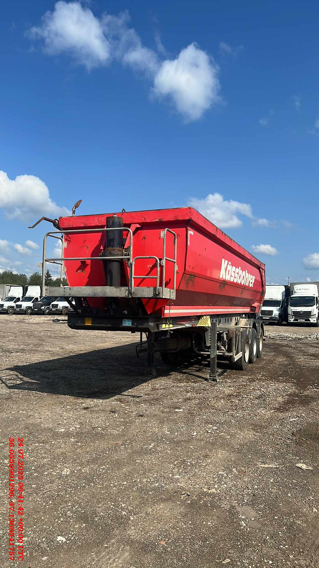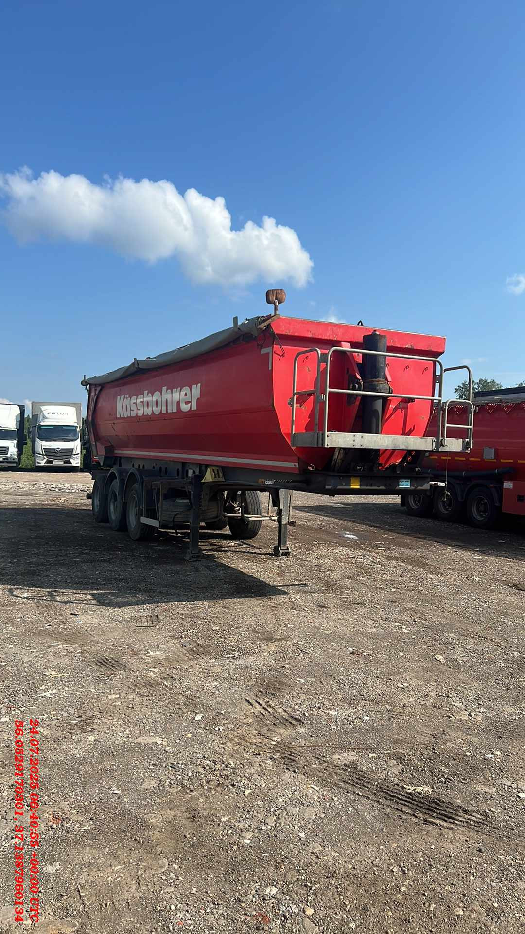 Ответственный за реализацию: Андяржанов Дамир Номер лота: 000013622 Идентификационный номер:XEBDAO603000000477 Марка:KASSBOHRER DL Наименование: Полуприцеп самосвал Год изготовления:2018 объем у прицепа 32 м3 Цвет кузова : красный Разрешенный максимальная масса:39000 кг