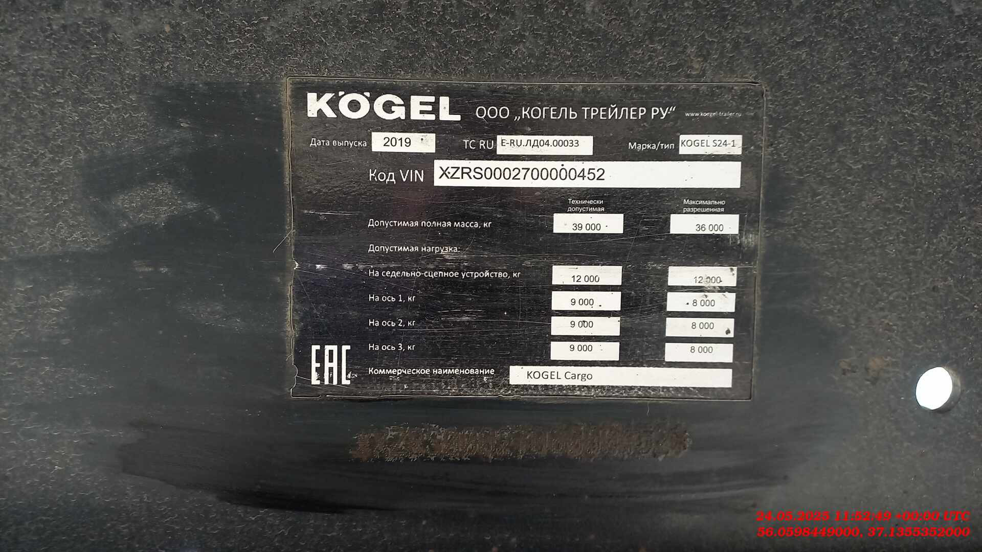 Номер лота: 000009367 Место осмотра: г. Балашиха Ответственный сотрудник реализации изъятого имущества: Малашин Владимир Юрьевич Технические характеристики: Допустимая нагрузка на седельное устройство: 12 000 кг Технически возможная нагрузка на седельное устройство: прибл. 12 000 кг Общая допустимая нагрузка на осевой агрегат : 24 000 кг (на каждую ось по 8 000 кг) Технически возможная нагрузка на агрегат: прибл. 27 000 кг (по 9 000 кг на каждую ось) Допустимый общий вес: 35 000 кг Технически возможный общий вес: прибл. 39 000 кг Собственный вес в базовой комплектации: прибл. 6 000 кг Собственный вес индивидуального состава транспортных средств примерно: 05.850 кг Теоретическая полезная нагрузка : прибл. 29.016 кг Допустимая нагрузка на пол по DIN EN 283 c Испытательная нагрузка на ось 7.200 кг (A) Колесная база: прибл. 6 390 мм (A1) Межосевое расстояние: прибл. 1 310 мм (A2) Межосевое расстояние: прибл. 1 310 мм (D) Общая длина: прибл. 13 950 мм (E) Общая ширина: прибл. 2 550 мм (F) Длина грузовой платформы в свету: прибл. 13 620 мм (G) Ширина грузовой платформы в свету: прибл. 2 480 мм (G2) Погрузочная ширина сзади: прибл. 2 480 мм (H1) Погрузочная высота в порожнем состоянии в горизонтальном транспортном положении: ок. 1230 мм (H2) Погрузочная высота в нагруженном состоянии в горизонтальном транспортном положении: ок. 1200 мм Высота езды установлена на 300 мм. (K) Погрузочная высота в свету под внешним лонжероном: прибл. 2 630 мм (K1) Высота в свету под крышей: прибл. 2 710 мм (X1) Общая высота в порожнем состоянии в горизонтальном транспортном положении: = H1 + K + T +/- Регулировка высоты кузова | = S + P + K + T +/- Регулировка высоты кузова (X2) Общая высота в нагруженном состоянии в горизонтальном транспортном положении: = H2 + K + T +/- Регулировка высоты кузова (T) Монтажная высота крыши сбоку: прибл. 125 мм. Благодаря конструкции поперечного бруса крыши внутренняя высота в свету по ширине поддона соответствует указанной боковой высоте погрузки. (N) Передний свес (согласно ISO 1726): прибл. 1 685 мм (N1) Радиус переднего свеса (согласно ISO 1726): прибл. 2 040 мм (O) Радиус наклона назад (согласно ISO 1726): прибл. 2 380 мм (P) Габаритная высота над седельно-сцепным устройством: прибл. 90 мм (S) Возможная высота седельно-сцепного устройства в порожнем состоянии: ок. 1 100 - 1 200 мм, стоит горизонтально при ок. 1 140 мм (учитывать общую высоту! ) Тормозная система согласно ECE-R13 Электрооборудование согласно ECE-R48 Рама Стандартная лестничная рама в виде облегченной стальной конструкции с поперечинами.DIN 74080 / ISO 337. Исполнение рамы NOVUM Диск сцепления толщиной 8 мм и 2" соединительный палец опорно-сцепного устройства согласно DIN 74080 / ISO 337 Шасси Трехосный осевой агрегат SAF INTRADISC с дисковыми тормозами, Ψ 430 мм, глубина запрессовки 120 мм. Пневматическая подвеска с ходом 180 мм. Тормозные суппорта Knorr SK7 Покупка возможна удобным для вас способом — оформление в лизинг или покупка за собственные средства. У нас обширная география присутствия на территории страны – более 70 офисов, поэтому наши менеджеры помогут заключить договор в любом городе России. Техника доступна в аренду. Стоимость в объявлениях уже включает НДС. Записаться на осмотр и узнать более подробную информацию вы можете у наших специалистов по телефону, указанному в объявлении. Звоните! Мы — компания Альфа-Лизинг. Более 26 лет мы работаем с предпринимателями и создаём лизинговые продукты, предлагая для покупки легковые и грузовые автомобили, 