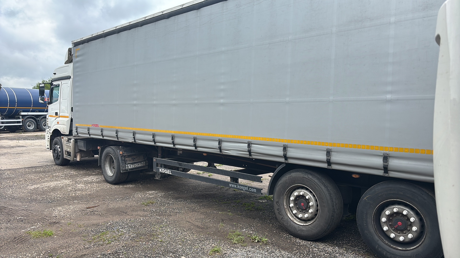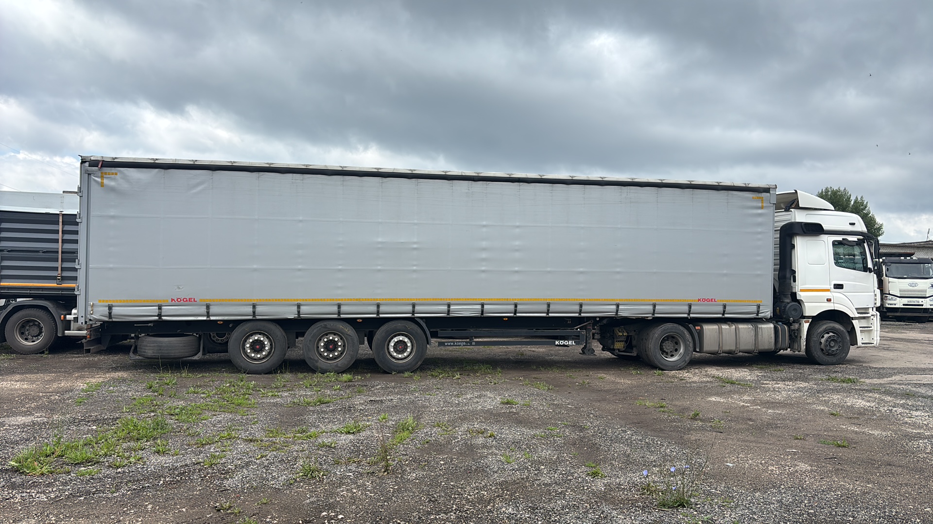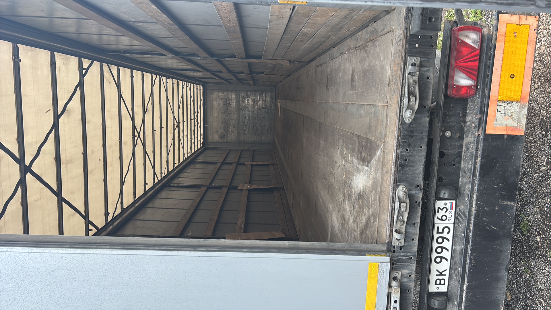 Номер лота: 000013697 Ответственный за реализацию: Томашевский Антон Технические характеристики: • Год выпуска: 2020 • Изготовитель ООО «КОГЕЛЬ Трейлер РУ»/Россия • Допустимая нагрузка на седельное устройство 12 000 кг • Технически возможная нагрузка на седельное устройство прибл. 12 000 кг • Общая допустимая нагрузка на осевой агрегат 24 000 кг (на каждую ось по 8 000 кг) • Технически возможная нагрузка на осевой агрегат прибл. 27 000 кг (на каждую ось по 9 000 кг) • Допустимый общий вес 35 000 кг • Технически возможный общий вес прибл. 39 000 кг • Собственный вес 5 920 кг • Колесная база 6 390 мм • Межосевое расстояние 1 310 мм • Общая длина 13 950 мм • Общая ширина 2 550 мм • Длина грузовой платформы 13 620 мм • Ширина грузовой платформы 2 480 мм • Погрузочная высота в порожнем состоянии 1230мм, в нагруженном – 1200мм • Высота в свету под крышей 2 710 мм • Стандартная стальная рама лестничного типа облегченной конструкции с вставными поперечными балками • Дисковые тормоза • Шины 385/65 R22.5 • Пневматическая подвеска • Толщина пола 30мм