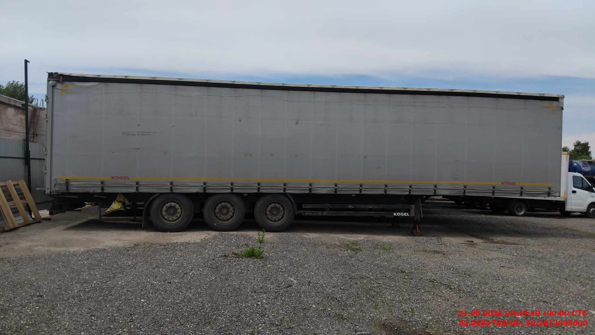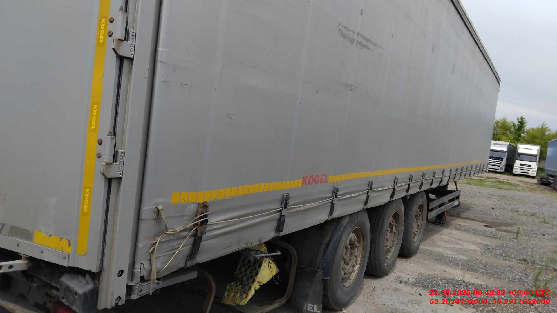 Полуприцеп Шторный KOGEL SN24 Технические характеристики допустимая нагрузка на седельное устройство: 12 000 кг Технически возможная нагрузка на седельное устройство: прибл. 12 000 кг Общая допустимая нагрузка на осевой агрегат : 24 000 кг (на каждую ось по 8 000 кг) Технически возможная нагрузка на агрегат: прибл. 27 000 кг (по 9 000 кг на каждую ось) Допустимый общий вес: 35 000 кг Технически возможный общий вес: прибл. 39 000 кг Собственный вес в базовой комплектации: прибл. 6 000 кг Колесная база: прибл. 6 390 мм Межосевое расстояние: прибл. 1 310 мм Межосевое расстояние: прибл. 1 310 мм Общая длина: прибл. 13 950 мм Общая ширина: прибл. 2 550 мм Длина грузовой платформы в свету: прибл. 13 620 мм Ширина грузовой платформы в свету: прибл. 2 480 мм Погрузочная ширина сзади: прибл. 2 480 мм Погрузочная высота в порожнем состоянии в горизонтальном транспортном положении: ок. 1230 мм Погрузочная высота в нагруженном состоянии в горизонтальном транспортном положении: ок. 1200 мм Высота езды установлена на 300 мм. Погрузочная высота в свету под внешним лонжероном: прибл. 2 630 мм