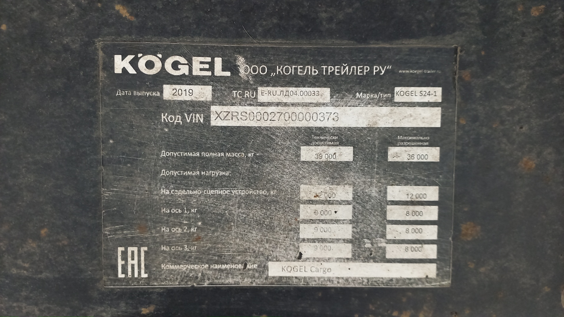 Номер лота: 000009700 Ответственный: Дорошев Игорь Технические характеристики 01010.002 Допустимая нагрузка на седельное устройство: 12 000 кг 01015.001 Технически возможная нагрузка на седельное устройство: прибл. 12 000 кг 01021.001 Общая допустимая нагрузка на осевой агрегат : 24 000 кг (на каждую ось по 8 000 кг) 01025.001 Технически возможная нагрузка на агрегат: прибл. 27 000 кг (по 9 000 кг на каждую ось) 01030.001 Допустимый общий вес: 35 000 кг 01035.001 Технически возможный общий вес: прибл. 39 000 кг 01040.600 Собственный вес в базовой комплектации: прибл. 6 000 кг 01045.001 Собственный вес индивидуального состава транспортных средств примерно: 05.850 кг 01055.001 Теоретическая полезная нагрузка : прибл. 29.016 кг 01080.001 Допустимая нагрузка на пол по DIN EN 283 c Испытательная нагрузка на ось 7.200 кг 02010.001 (A) Колесная база: прибл. 6 390 мм 02020.001 (A1) Межосевое расстояние: прибл. 1 310 мм 02025.002 (A2) Межосевое расстояние: прибл. 1 310 мм 04010.001 (D) Общая длина: прибл. 13 950 мм 04020.001 (E) Общая ширина: прибл. 2 550 мм 04040.001 (F) Длина грузовой платформы в свету: прибл. 13 620 мм 04050.001 (G) Ширина грузовой платформы в свету: прибл. 2 480 мм 04055.002 (G2) Погрузочная ширина сзади: прибл. 2 480 мм I 04060.123 (H1) Погрузочная высота в порожнем состоянии в горизонтальном транспортном положении: ок. 1230 мм I 04065.120 (H2) Погрузочная высота в нагруженном состоянии в горизонтальном транспортном положении: ок. 1200 мм I 04068.300 Высота езды установлена на 300 мм. I 04070.005 (K) Погрузочная высота в свету под внешним лонжероном: прибл. 2 630 мм I 04075.032 (K1) Высота в свету под крышей: прибл. 2 710 мм I 04097.398 (X1) Общая высота в порожнем состоянии в горизонтальном транспортном положении: = H1 + K + T +/- Регулировка высоты кузова | = S + P + K + T +/- Регулировка высоты кузова I 04098.395 (X2) Общая высота в нагруженном состоянии в горизонтальном транспортном положении: = H2 + K + T +/- Регулировка высоты кузова 05090.125 (T) Монтажная высота крыши сбоку: прибл. 125 мм. Благодаря конструкции поперечного бруса крыши внутренняя высота в свету по ширине поддона соответствует указанной боковой высоте погрузки. 06010.001 (N) Передний свес (согласно ISO 1726): прибл. 1 685 мм 06015.001 (N1) Радиус переднего свеса (согласно ISO 1726): прибл. 2 040 мм 06020.003 (O) Радиус наклона назад (согласно ISO 1726): прибл. 2 380 мм 06030.001 (P) Габаритная высота над седельно-сцепным устройством: прибл. 90 мм I 06041.114 (S) Возможная высота седельно-сцепного устройства в порожнем состоянии: ок. 1 100 - 1 200 мм, стоит горизонтально при ок. 1 140 мм (учитывать общую высоту! ) 09010.001 Тормозная система согласно ECE-R13 09020.001 Электрооборудование согласно ECE-R48 Рама 10110.110 Стандартная лестничная рама в виде облегченной стальной конструкции с поперечинами.DIN 74080 / ISO 337. Исполнение рамы NOVUM 10300.108 Диск сцепления толщиной 8 мм и 2" соединительный палец опорно-сцепного устройства согласно DIN 74080 / ISO 337 Шасси I 18330.271 Трехосный осевой агрегат SAF INTRADISC с дисковыми тормозами, Ψ 430 мм, глубина запрессовки 120 мм. Пневматическая подвеска с ходом 180 мм. K32000.993 Тормозные суппорта Knorr SK7 вкл. Шины транспортного средства I 20540.011 Шины 6 шт. 385/65 R 22,5 CONTINENTAL Hybrid HT3 M+S 160K (158L) 20865.005 6 стальных ободьев 22,5 x 11.75, глубина запрессовки 120 мм (ГЗ 120). Запасное колесо в комплекте. Навесные детали шасси 20110.010 Механические седельные опоры (производителя выбирает Kogel) с регулировочной опорой, грузоподъемность 24 т. Управление с одной стороны, по направлению движения справа. 21070.115 Система защиты от брызг (для устранения тумана, образованного разбрызгиванием) согласно Предписанию (ЕС) № 109/20