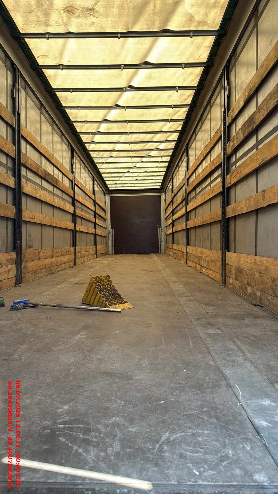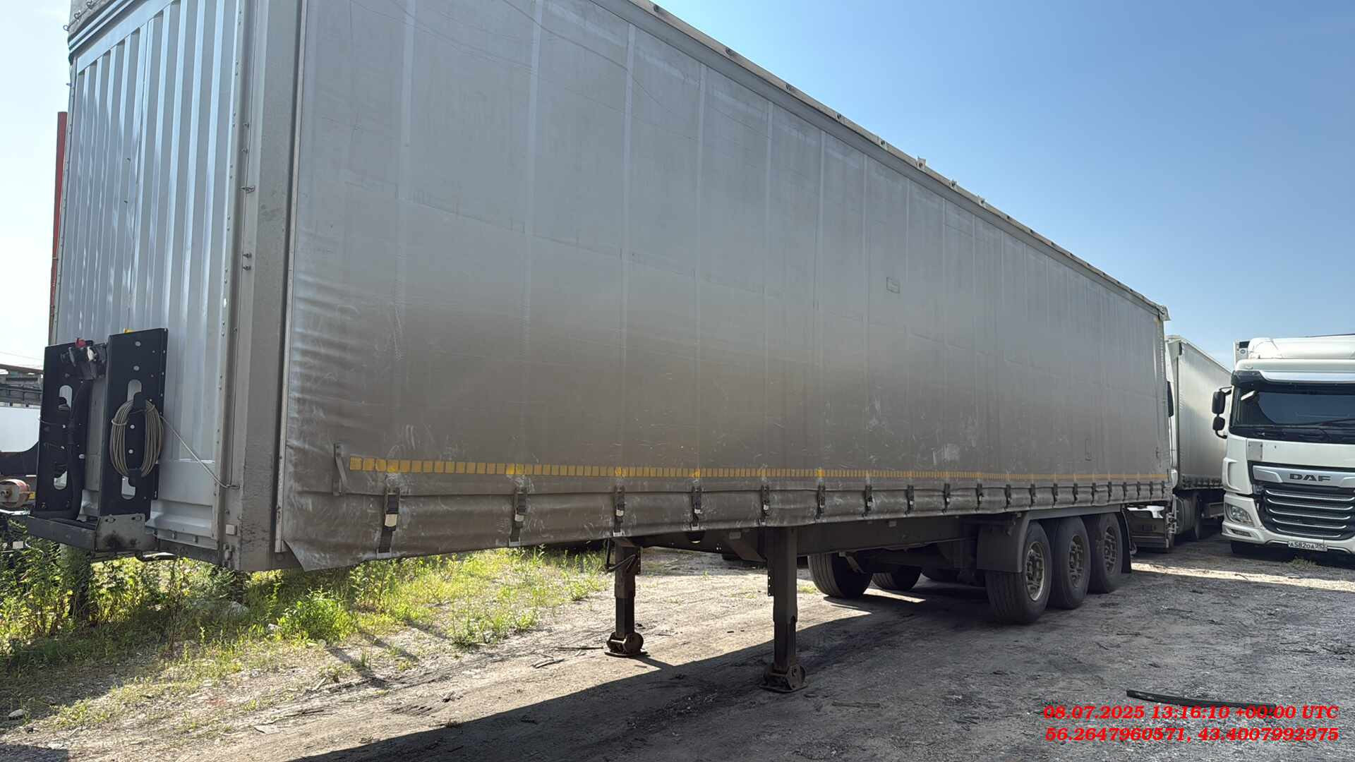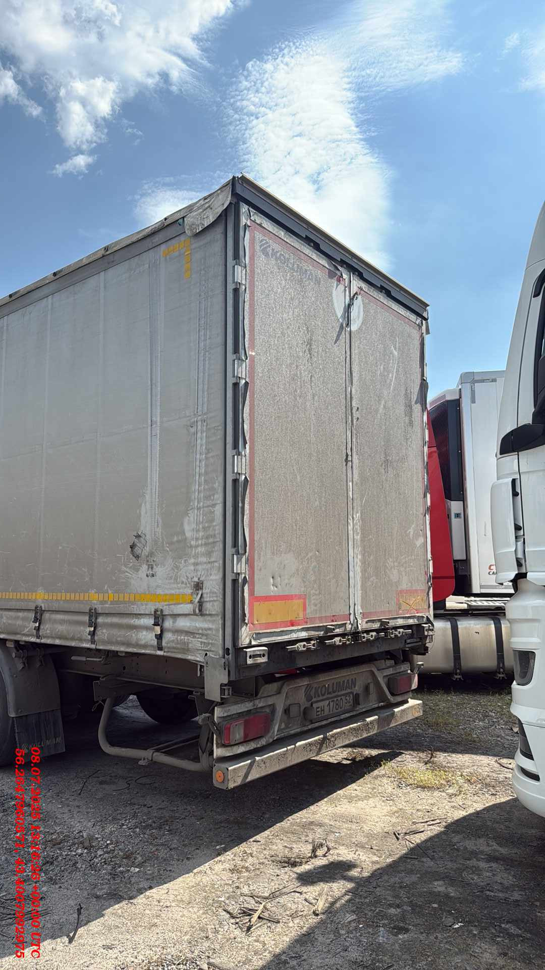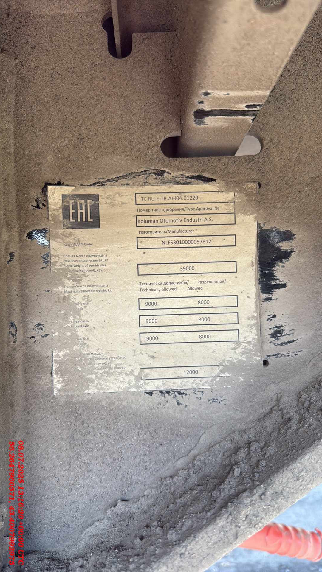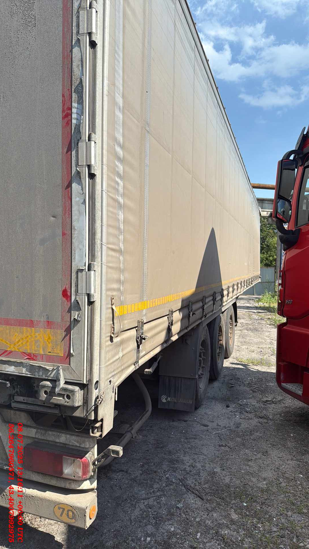 Ответственный Мишин Михаил Размеры и вес длина кузова внутри около 13.620 общий вес (доп/техн) 35.000/39.000 ширина кузова внутри около 2.480 полезная нагрузка (доп/техн) 27.920/31.920 высота передней стенки около полный нагрузка на оси (доп/техн) 24.000/27.000 высота кузова спереди внутри около 2.770 нагрузка на седло (доп/техн) 11.000/15.000 высота кузова внутри около 2.770 общий собственный вес +/-3% 6.765 высота бокового проема впереди около 2.620 размер шин 385/65R22.5 высота бокового проема сзади около 2.620 межосевое расстояние 1310/1310 мм общая высота впереди без груза около 4.000 высотаподвески 260 общая высота сзади без груза около 4.000 колесная база 7.700 высота погрузки сзади без груза около 1.150 высота проема задней двери около 2.705 высота седла по ISO 1726 1.080-1.230 mm ширина проема задней двери около 2.480 Шасси Производство – Koluman Otomotiv Endustri A.S. Мерсин Тарсус, Турция Сварное шaсси изготовлено из стали ST52-3 (высокопрочная) Корзина под 2 зaпaсных колеса Фиксированный задний бампер и откидные боковые бамперы согласно директивы 70/221/ЕЭС Сцепной шкворень 2" по стандарту SАЕ, сменный, позиция 1660 Оси SAF Intradisc CD 3x9 тонные, пневмоподвеска, дисковые тормоза Тормозная система двухконтурная системa Knorr Bremse/WABCO с пневмоприводом согл. RR ЕG 71/320 ЕBS 2S/2М, с программой предотвращения опрокидывания, электропитание ЕBS согласно ISО 7638 + CАN энергоaккумулятор с двойной мембраной, 2 противооткатных упорa с креплением Опорный домкрат 24 тонный опорный домкрат марки SAF/OMS, двухскоростной Система освещения Aspock/Hella - 24V по ЕСЕ R48 мносекционные фонари, двa 7-полюсных разъема - 1хISО3731 /1хISO1185 и один 15-полюсный рaзъем DIN ISО12098 светодиодные боковые и задние фонари Кузов и крыша Тентованный, с тремя стальными сдвижные съемными стойками с каждой стороны (3*2) 2 стaльные угловые стойки у ворот с устройством нaтяжения сдвижного тентa Панельного типа алюминиевые ворота с системой скрытых замков Стальная передняя стенка со стальными угловыми стойками (RAL 9006) Сдвижная крыша Edsha, профиль 175мм, ширина внутри 2470 мм Пол Многослойная клеевая фанера мультиплекс толщиной 30мм с покрытием смолы, с нагрузкой для вилочных погрузчиков 7.200 кг (соответствует требованиям EN 283). Пол с двумя рядами отверстий под коники (2*8) Наличие системы крепления груза, 24 кольца (2*12) для стяжных ремней. Тент сдвигаемые боковые шторы, плотность 750 гр/м2. тент крыши, плотность 650 г/м2. Колеса и шины 6 шин 385/65R22.5 (11.75х22.5) / 6 стальных дисков Колёсные гайки окрашены покрытием GEOMET Четверть пластмассовые крылья Прочее оборудование шасси 13 пaр проушин на внешней рaме, нагрузка 2 тонны на каждую 2 резиновых угловых отбойника сзади Выдвижнaя лестницa сзaди 8 коников (оцинковка)