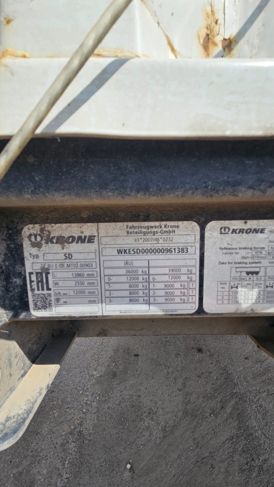 Номер лота: 000009718 Ответственный за реализацию ТС: Питулов Александр Николаевич Изготовитель Германия Разрешенная максимальная масса, кг 41 000 Масса без нагрузки, кг 6 000 Грузоподъемность, кг 35 000 Оси KRONE Тип тормозов Дисковые Подвеска Пневматическая Надпись на табличке Тип SD, Максимально допустимая нагрузка на шкворень, кг 14 000 Максимально разрешенная нагрузка на ось, кг 27 000 Допустимый общий вес, кг 41 000 Максимально технически допустимая нагрузка на шкворень, кг 14 000 Максимально допустимая техническая нагрузка на ось, кг 27 000 Общий вес, кг 41 000 Собственный вес (+/- 3%), кг 6 025 Подходит для седельного тягача по стандартам ISO 1 726 Расстояние от шкворня до центра опор, мм 2 270 Высота ССУ без нагрузки, мм 1 150 Дополнительная информация Двойной подзапасник Сдвижная крыша Сдвижные бока