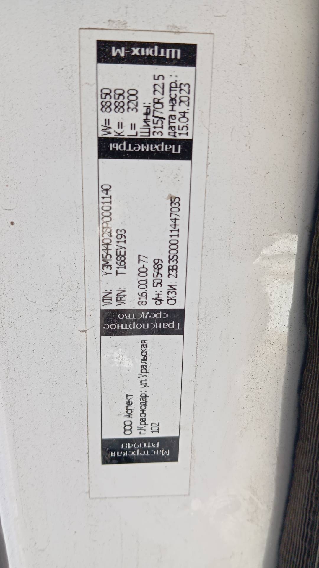 данные о машине