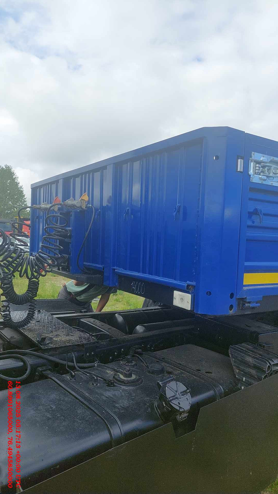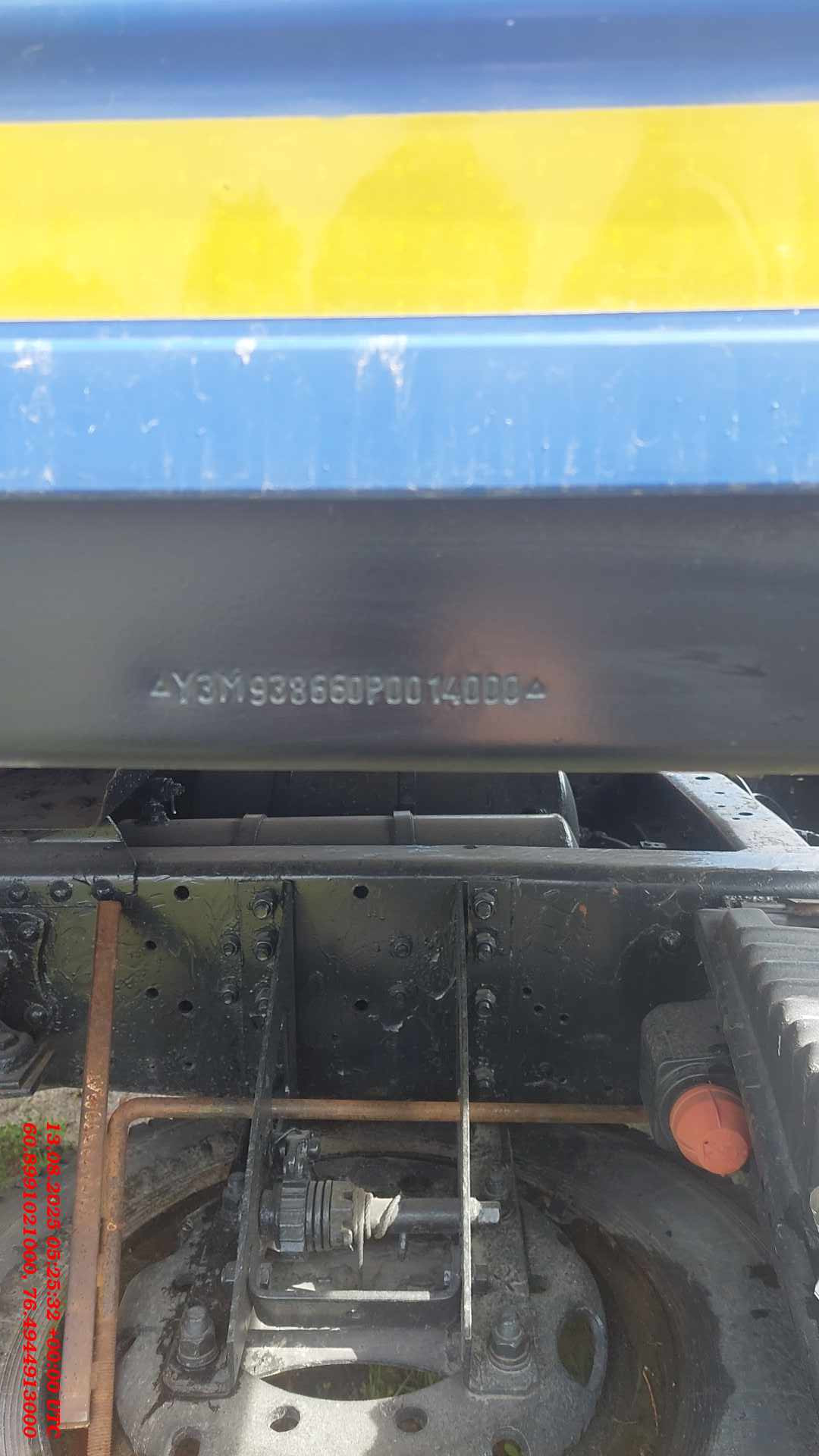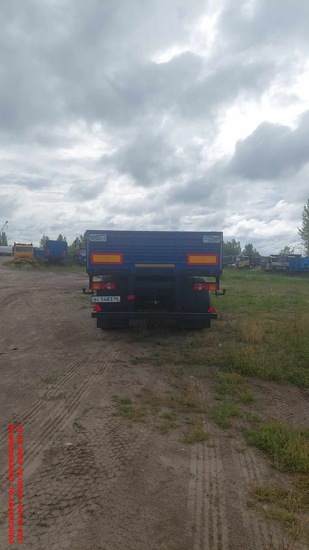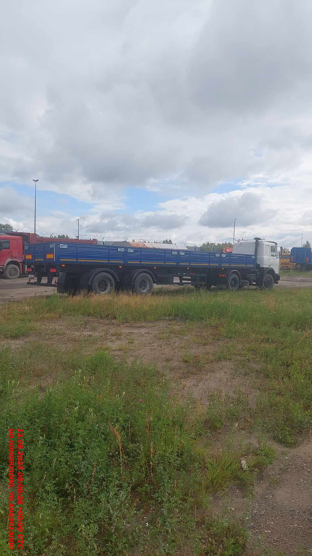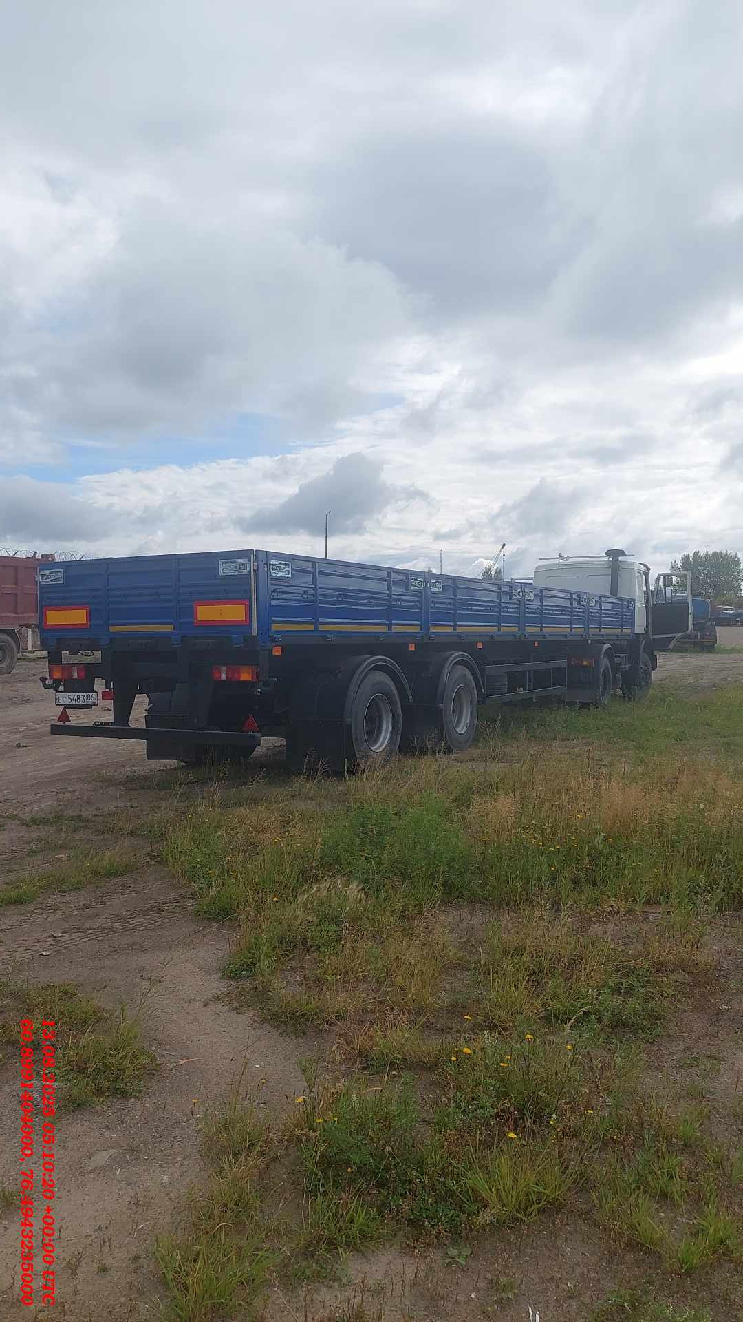Номер лота: 000013141 Ответственный за реализацию ТС: Упоров Александр Сергеевич Высота ССУ 1250-1320 Технически допустимая общая масса, кг: 35 000 Технически допустимая грузоподъемность, кг: 28 000 Нагрузка на ССУ, кг: 15 000 Нагрузка на осевой агрегат, кг: 20 000 Колесная база, мм: 6 757 Межосевое расстояние, мм 2 050 Расстояние между рессорами, мм: 900 Колея колес внутренних, мм: 1 440 Колея колес наружных, мм: 2 160 Габаритная длина, мм: 12 770 Габаритная ширина, мм: 2 550 Габаритная высота, мм: 2 150 Внутренняя длина платформы, мм: 12 375 Внутренняя ширина платформы, мм: 2 480 Внутренняя высота бортов, мм: 660 Объем платформы, м3: 20,3 Площадь платформы, м2: 30,7 Рама: полуприцепа сварная, лонжероны двутаврового сечения, переменные по высоте и соединены между собой поперечинами. К раме крепится задняя защита и боковая защита. Сцепной шкворень класса Н50 в соответствии с требованиями Правил ЕЭК ООН №55 предназначен для эксплуатации с седельным тягачом, имеющим опорно-сцепное устройство (ОСУ) класса G50 согласно требованиям Правил ЕЭК ООН №55. Подвеска: Оси трубчатого сечения с барабанным тормозным механизмом. Подвеска «МАЗ» с высотой езды FH=360 мм. Двухосный осевой агрегат с двускатной ошиновкой. Пневмотормоза: Рабочая тормозная система пневматическая, двухпроводная без АБС. Стояночная тормозная система механическая, действует через трос на тормозные камеры первой и второй осей. Шины: Белшина 10R20 Шасси: Выдвижное опорное устройство фирмы «ОЗАА» с механическим приводом, допустимая нагрузка 24 т., управление с одной стороны, справа по ходу движения. Монтаж противооткатных упоров, перед осевым агрегатом (2 шт.). Боковая защита согласно Правилам ЕЭК ООН №73. Держатель в виде корзины для одного запасного колеса, монтаж спереди осевого агрегата справа. Стальная защита от въезда сзади (бампер) согласно Правилам ЕЭК ООН №58. Установка поворотных замков для крепления контейнеров. Настил: дощатый толщиной 34 мм. Передняя стенка: Борт передний стальной высотой 700 мм, с угловыми металлическими стойками, прикрепленными к раме болтами (крючки увязачного каната). Задняя стенка: Откидной задний борт (металлический) с Т-образным задвижным запором (рукоятки бортов литые). Металлические стойки прикреплены к раме болтами.