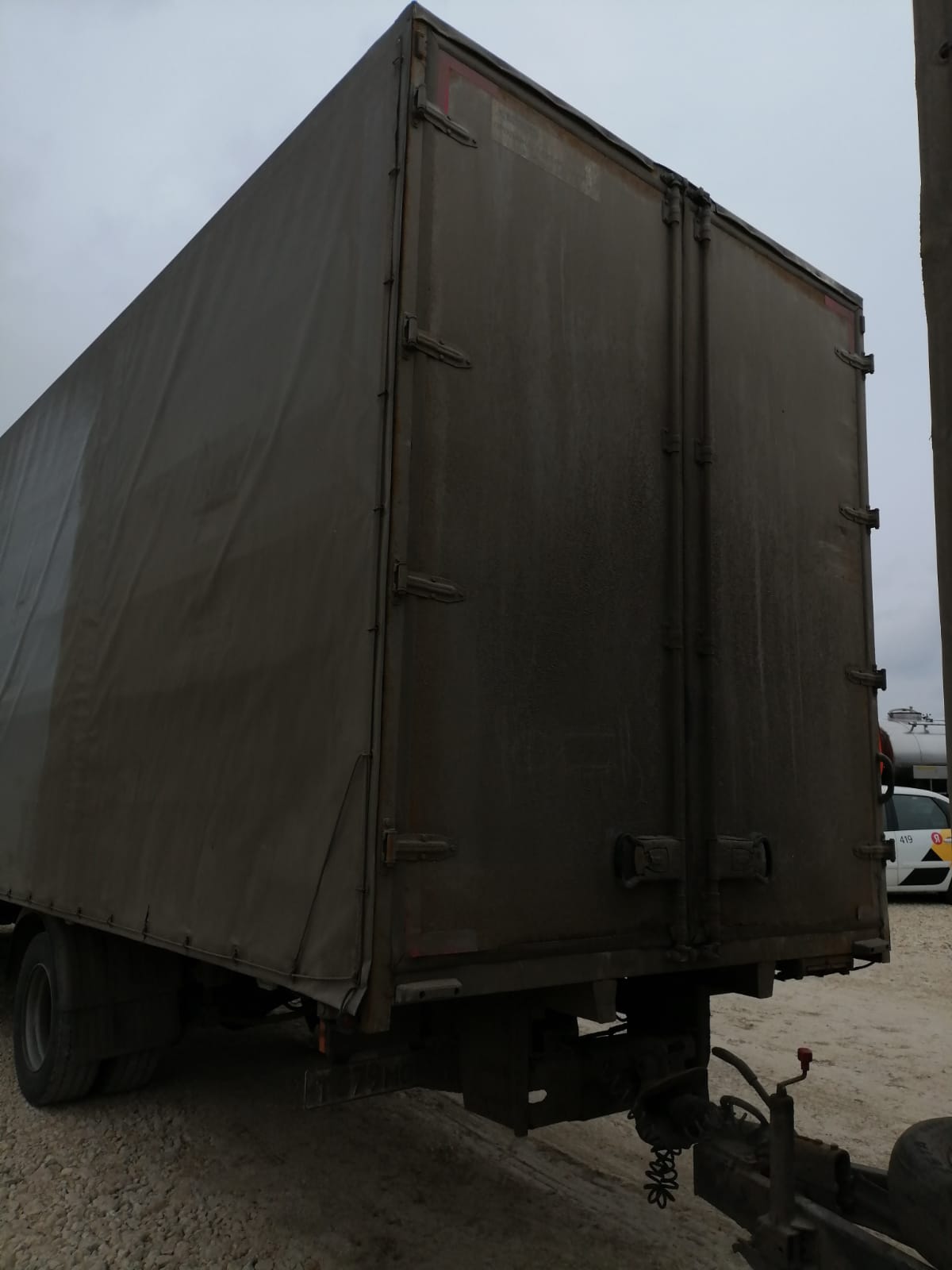 Ответственный Стешинский Денис Базовое шасси Полная масса 3500 кг Снаряженная масса Габаритные размеры Внутренние размеры Длина, мм 7 200 Длина, мм Ширина, мм 2 550 Ширина, мм Высота , мм(общая) не более 3900 Высота бокового проёма, мм Высота погрузочная мм 920 Высота не более высоты тягача ДА Материал бортов фанера ламинированная Высота бортов, мм 400 Покрытие пола фанера ламинированная сетчатая 27 мм Кольца крепления груза НЕТ Стенка передняя каркас из трубы, фанера, тент до низа Цвет тента боковин серый Цвет тента крыши белый Сдвижной механизм(см.комментарии) правая сторона Механизм натяжения боковин люверсы, трос в ПВХ Ремни натяжения нижние НЕТ Боковые стойки(правая сторона ) см. комментарии съёмные на пружинных фиксаторах, 2 шт. на строну Фурнитура дверей ОЦ, штанговая, 4 петли, 1 штанга на каждой Ворота распашные ПЛМ - пенопласт- ОЦ сталь Цвет распашных ворот белый Переходной мост-трап НЕТ Цвет рамы серо-чёрный Количество осей 3 Подвеска рессорная Тормозная система инерционная (тормоз наката) Сцепное устройство петля под шкворень 40 мм ( еврофаркоп ) АБС НЕТ Размер шина 215/75 R16C Блок задних фонарей комбинированные фонари в защитном кожухе Габаритные огни согласно ГОСТ Комплектация переднее опорное колесо, пластиковые подкрылки с брызговиками, запасное колесо Боковая защита алюминиевая на откидных стойках Марка и модель тягача Газон Next Изготовление и монтаж сцепного устройства см. комментарии .Установка Еврофаркопа. Левая сторона тента -клапан 3. Бортовые стойки левая сторона :2шт приваренные