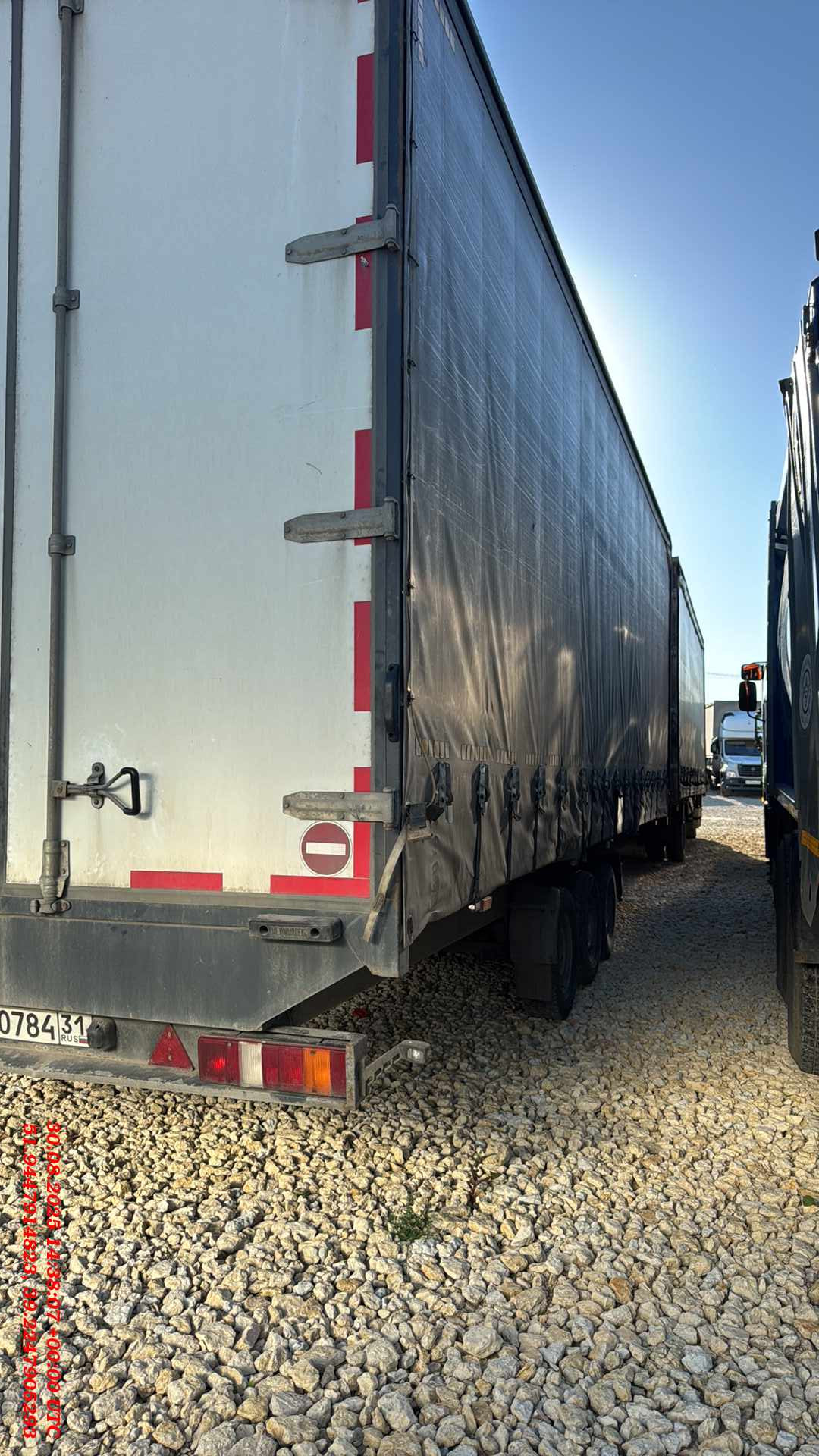 Ответственный за реализацию: Голиков Д.С. Номер лота: 000013041 Прицеп трехосный PRF114 бортовой Полная масса 3500 кг Габаритные размеры: Длина, мм 8 200 Ширина, мм 2 550 Высота , мм бокового проёма 2 790 Высота не более высоты тягача ДА Материал бортов фанера ламинированная Высота бортов, мм 400 Покрытие пола фанера ламинированная сетчатая 27 мм Кольца крепления груза НЕТ Стенка передняя каркас из трубы, фанера, тент до низа Цвет тента боковин серый Цвет тента крыши серый Сдвижной механизм правая сторона Механизм натяжения боковин.левая сторона люверсы, трос в ПВХ Ремни натяжения нижние (правая сторона) ДА, через 500 мм Боковые стойки (правая сторона) съёмные с замками, АСК, 2 шт. на сторону Фурнитура дверей ОЦ, штанговая, 4 петли, 1 штанга на каждой Ворота распашные ПЛМ-пенопласт-ОЦ сталь Цвет распашных ворот белый Переходной мост-трап НЕТ Цвет рамы серо-чёрный Количество осей 3 Подвеска рессорная Тормозная система инерционная (тормоз наката) Сцепное устройство петля под шкворень 40 мм (еврофаркоп) АБС НЕТ Размер шина 215/75 R16C Блок задних фонарей комбинированные фонари в защитном кожухе Габаритные огни согласно ГОСТ Комплектация переднее опорное колесо, пластиковые подкрылки с брызговиками, запасное колесо Боковая защита НЕТ