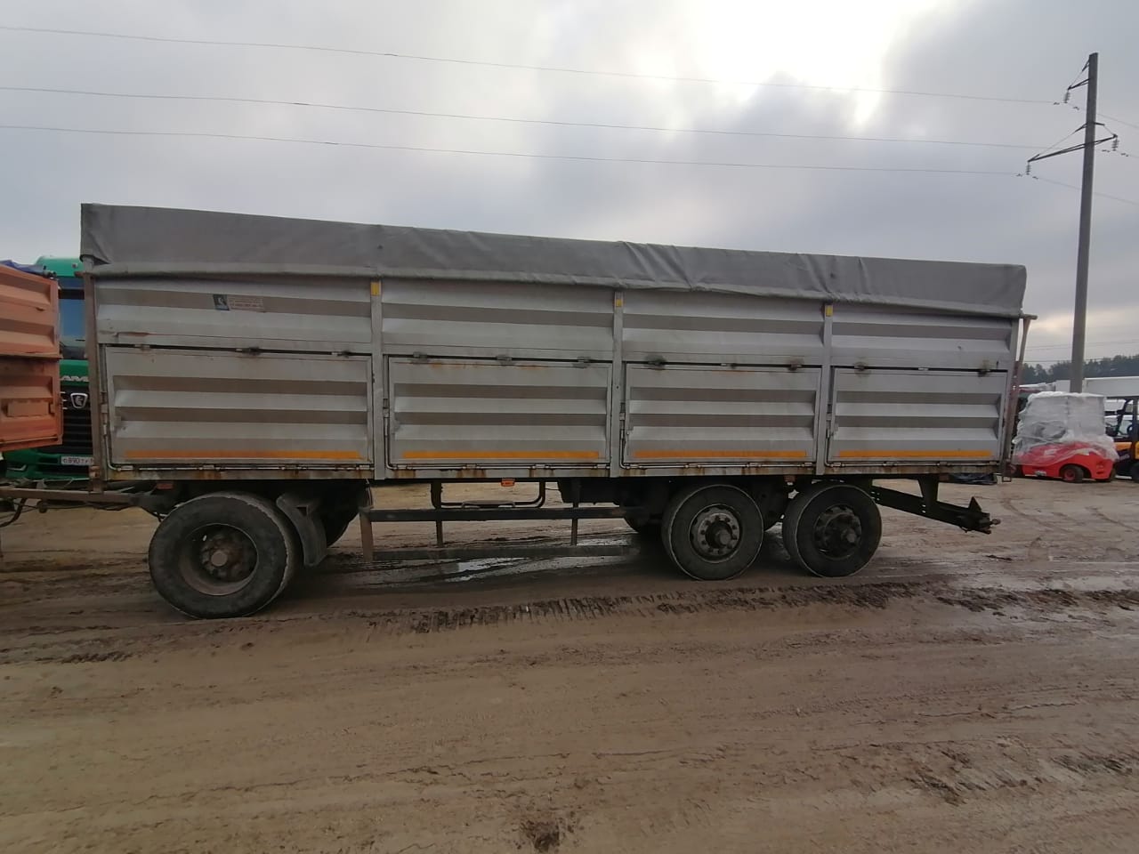 Номер лота: 000007530 Ответственный за реализацию: Голиков Даниил Сергеевич Прицеп автомобильный 6535Т3-02 на шасси НЕФАЗ 8332-04 Год выпуска Количество осей Полная масса Размеры кузова: Объем кузова, куб.м 2022 3 24 000 кг 8 068*2530*1900 мм 38 куб.м Колесная формула: 3/6+1 Размер а/ш 385/65R22.5 Собственный вес 5950 кг Рама Сварная, с двумя лонжеронами из двутавров переменного сечения, изготовленных из высокопрочной стали Подвеска Передняя - рессорная, задняя – рессорно-балансирная с регулируемыми штангами Тормоза: - рабочий Барабанный с пневмоприводом, выполненным по двухпроводной системе с АБС - стояночный Пружинный энергоаккумулятор Электрооборудование: Однопроводная система постоянного тока напряжением 24В Разгрузка: осуществляется: через боковые нижние борта с двух (трех) сторон; Прицеп оборудован пологом со сматывающим устройством, в передней части и на заднем борту установлена площадка для обслуживания полога. Внутри кузова (на каждой стойке) установлены крестовые стяжки бортов (съемные) Конструкция кузова (все открывающиеся борта оборудованы нащельниками): - Усиленный передний борт - Боковые стороны кузова: Верхние борта: - глухие, Нижние борта: - с верхней навеской открываются снизу вверх, - Задний борт: распашные ворота