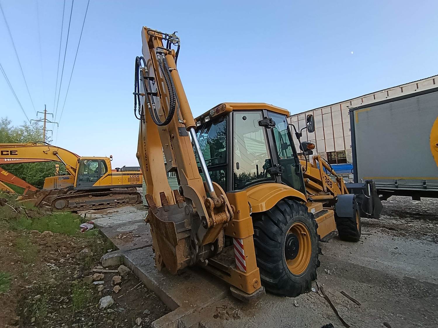 Номер лота: 000006905 Ответственный за реализацию ТС: Упоров Александр Сергеевич ЭКСКАВАТОР-ПОГРУЗЧИК OLIMPUS BLT388 С ТЕЛЕСКОПИЧЕСКОЙ СТРЕЛОЙ И ЧЕЛЮСТНЫМ ФРОНТАЛЬНЫМ КОВШОМ. МОСТЫ. КПП – CARRARO. Двигатель – YUCHAI, YC4A105Z-T20 четырехтактный, дизельный 1 Общая длина 6150±80mm 2 Общая ширина 2250±20mm 3 Ширина ковша 2200mm 4 Общая высота верхней части кабины 2950±10mm 5 Колесная база 2264±10 mm Основные технические параметры нагрузки 1 Номинальная нагрузка 2500KG 2 Рабочий вес 8200kg 3 Объем фронтального ковша 1.0m³ 4 Максимальная высота опрокидывания (угол наклона 41°) 3050±50 mm 5 Расстояние сброса 870±20 mm 6 радиус разворота Внешняя сторона шины 5750±50mm Основные технические параметры нагрузки 1 Номинальная емкость ковша экскаватора 0.3m³ 2 Максимальная глубина раскопок при сложенной стреле 4300±20 mm 3 Максимальная глубина раскопок при вытягивании руки (телескопический рычаг) 5345±20mm 4 Максимальная высота раскопок при вытянутой руке (телескопический рычаг) 6680±20mm 5 Максимальная сила выемки 5100kgf 6 Максимальная высота выемки 6470 ±20mm 7 подъёмная сила при максимальном радиусе раскопок 1220kg 8 Максимальная длина стрелы от основания до конца ковша при вытягивании руки (телескопический рычаг) 6400±20 mm 9 Максимальная длина стрелы при втягивании телескопа 5000±20mm 10 Высота от земли до основания стрелы 700±20mm Двигатель 1 Модель двигателя WP4G95E221 2 Тип охлаждения Водяное 3 Номинальная мощность 70 (kW) 96л.с. 4 Замена 4.8(L) 5 Номинальная скорость вращения 2200(r/min) 6 Максимальный крутящий момент 450(N.M) 7 Производитель weichai-deutz wp4g5 Передача 1 Гидравлический трансформатор Модель YJ280 охлаждающий канал маслянный цикл под давлением 2 коробка передач Устройство переключения передач с фиксированным рычагом/ электрическое управление CARRARO 4 передачи вперед/ 4 передачи назад 3 Ведущий мост Модель CARRARO 4 Переключение передач Forward 4 Backward 4 5 Скорость (F / R) km / h Forward1) – 5 km/h Forward2) – 10 km/h Forward3- 18 km/h Forward4)- 40 km/h Backward1) - 5 km/h Backward2) - 10 km/h Backward3) - 18 km/h Backward4) - 40 km/h 6 Тип шины перед/зад 14-17,5/19,5L-24