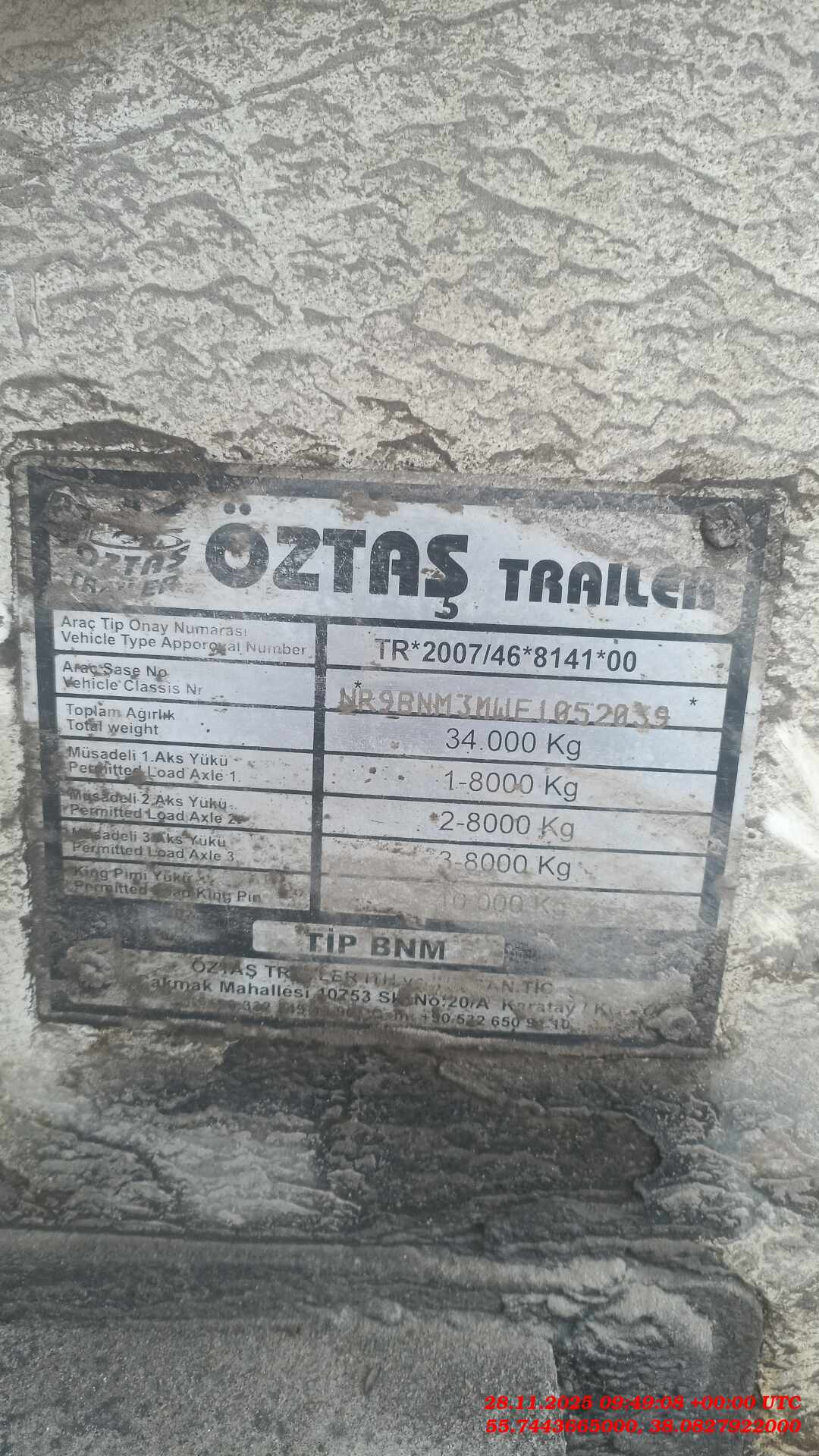 OZTAS TRAILER BNM3M (34М3) 2014 2014