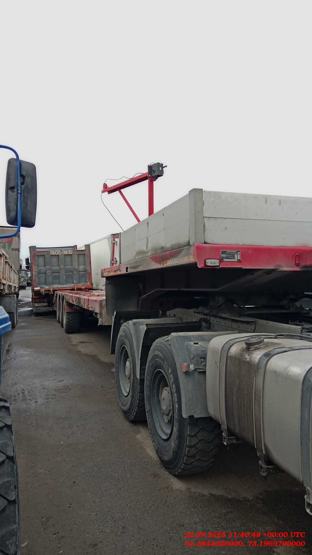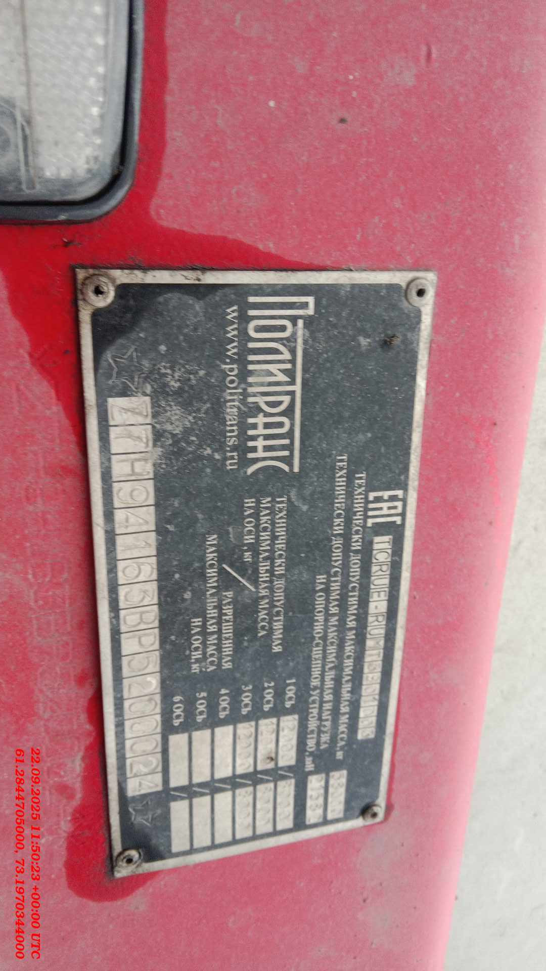 Номер лота: 000015373 Ответственный за реализацию ТС Волков Дмитрий Владимирович «Политранс» 94163-052 — это трехосный полуприцеп-трал с уголковыми трапами, предназначенный для перевозки тяжелой техники. Он имеет грузоподъемность 45800 кг, снаряженную массу 12200 кг и полную массу 58000 кг. Полуприцеп оснащен пневматической подвеской, односкатной ошиновкой (шины 445/65 R22.5), 6+1 колес, и 3,5-дюймовым сцепным шкворнем. Тип: Полуприцеп-трал с уголковыми трапами. Грузоподъемность: 45800 кг. Полная масса: 58000 кг. Снаряженная масса: 12200 кг. Подвеска: Пневматическая. Ошиновка: Односкатная. Шины: 445/65 R22.5, 6+1 шт. Сцепной шкворень: 3,5 дюйма. Оси: 3.