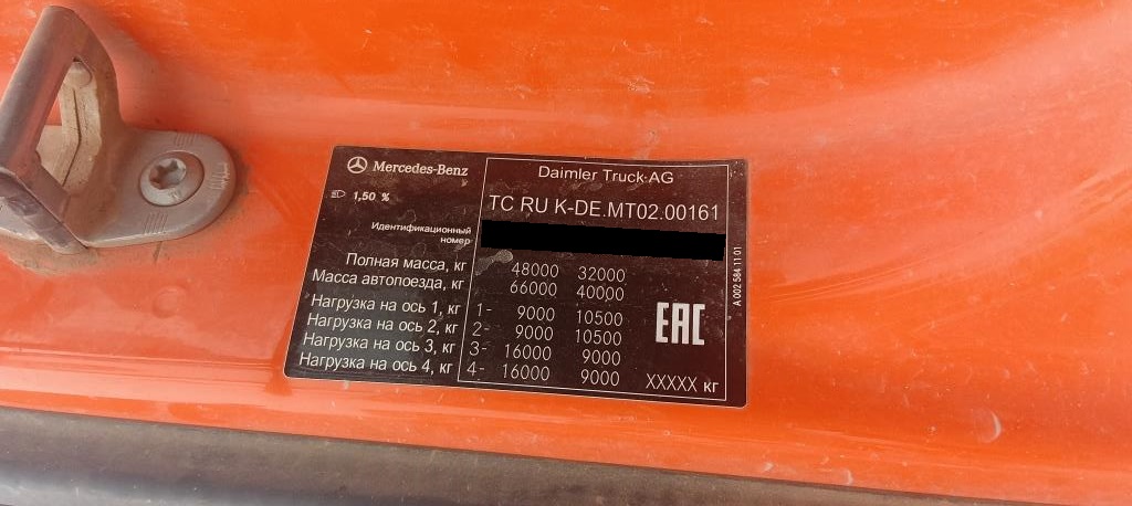 автоматическая Разрешенная максимальная масса - 48 000 кг Масса транспортного средства в снаряженном состоянии - 19 450 кг