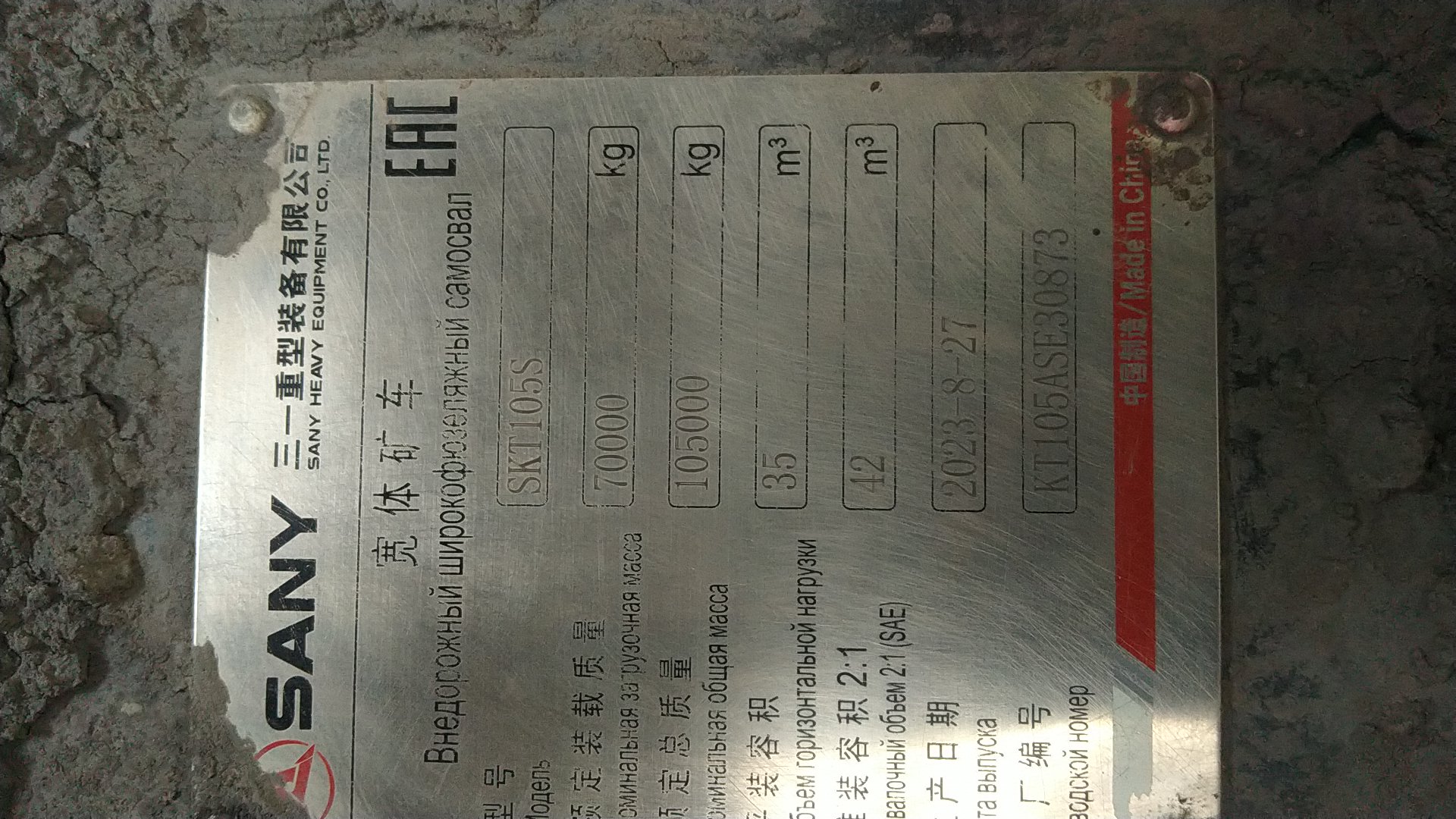 Ответственный за реализацию: Лаптев Сергей Номер лота: 000009439 Наименование, определяемое назначением самоходной машины (другого вида техники) Карьерный самосвал Марка SANY Коммерческое наименование SKT105S Категория в соответствии с Правилами оформления электронного паспорта самоходной машины и других видов техники категория D Категория в соответствии с ТР ТС 031/2012, ТР ТС 010/2011 или ТР ТС 018/2011 X Номер двигателя (двигателей) 3122L048809 Номер кузова (кабины, прицепа, рамы) 11U111050P3KT0501 Цвет кузова (кабины) желтый Год изготовления 2023 Двигатели: Двигатель внутреннего сгорания (марка, тип) WP13G530E310, дизельный 12540 390 (2100 - 2300) – рабочий объем цилиндров (см3) – максимальная мощность (кВт) (мин-1) Технически допустимая максимальная масса (кг) 105000 Cнаряженная (эксплуатационная) масса самоходной машины (другого вида техники 35000 Трансмиссия (тип) механическая, с автоматическим управлением Вид топлива Дизельное топливо