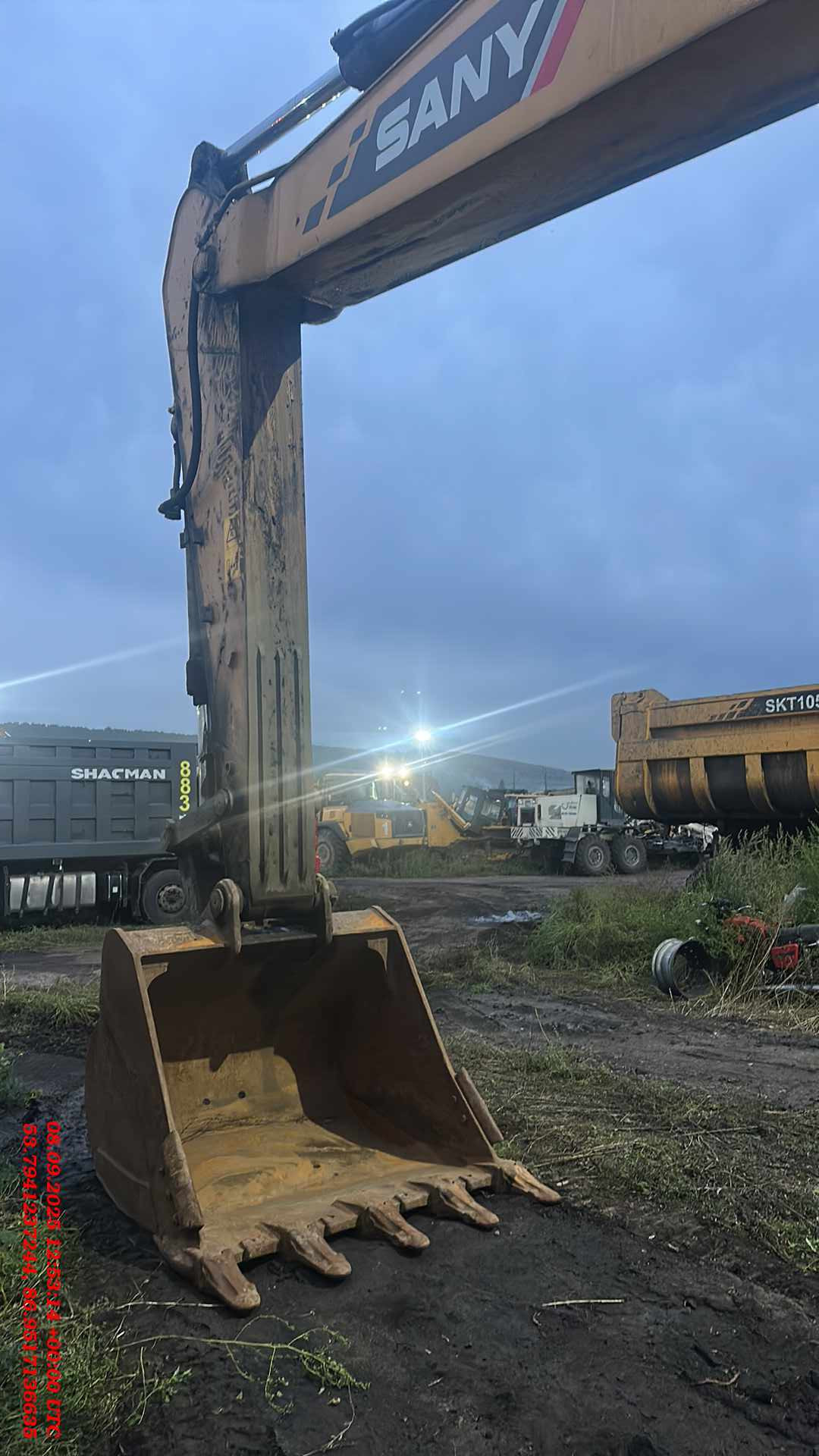 Ответственный за реализацию: Лаптев Сергей Номер лота: 000014963 Экскаватор SANY Основные технические характеристики Эксплуатационная масса — 31 500 кг Объём ковша — 1,65 м³ Тяговое усилие — 356 кН Усилие отрыва ковша — 204 кН Усилие резания рукояти — 167 кН Диаметр цилиндра стрелы × ход цилиндра — 140(100)×1407×2 мм Диаметр цилиндра стрелы × ход цилиндра — 160(110)×1646×1 мм Диаметр цилиндра рукояти × ход цилиндра — 140(100)×1156×1 мм Скорость передвижения — 5.4 / 3.2 км/ч Скорость поворота — 9 об/мин Двигатель Модель — Isuzu GH-6HK1XKSC-04 Нормы токсичности — Stage III Количество цилиндров — 6 Мощность — 212 кВт / 2000 об/мин Крутящий момент — 1080 Н·м Рабочий объём — 7,79 л Максимальные обороты — 2000 об/мин Скорость холостого хода — 1450 об/мин Диаметр цилиндра — 115 мм Ход поршня — 125 мм Тип подачи воздуха — турбонаддув Стартер — 24V / 5.0 kW Аккумуляторы — 12V × 2 шт Генератор — 24V / 50A Преодолеваемый подъём — 70% / 35° Удельное давление на грунт — 62 кПа Ходовая часть и конструкция Количество башмаков гусеницы — 47×2 Количество поддерживающих катков — 2×2 Количество опорных катков — 8×2 Длина стрелы — 6150 мм Длина рукояти — 3200 мм Противовес — 5794 кг Гидравлическая система Основной насос — Kawasaki K5V160 Тип — поршневой насос переменной производительности Количество режимов — 4 Максимальный поток — 2×316 л/мин Распределитель — Kawasaki KMX15RB, с электронным управлением, поток 2×300 л/мин Ходовой редуктор — Doosan TM60VD, аксиально-поршневой мотор, давление перелива 34,3 МПа Поворотный мотор — SANY GS20D25B.0, аксиально-поршневой, давление перелива 30 МПа Объёмы жидкостей Топливный бак — 540 л Гидравлическое масло — 380 л Моторное масло — 2×4 л Радиатор — 35 л Ходовой редуктор — 11 л Габаритные размеры Длина — 10 667 мм Ширина — 3190 мм Высота — 3470 мм Ширина по кабине — 3175 мм Высота до верха кабины — 3280 мм Ширина башмака — 600 мм Колея гусеничного хода — 2590 мм Дорожный просвет — 550 мм Радиус поворота задней части платформы — 3315 мм Опорная длина гусениц — 3916 мм Длина гусеничного хода — 4840 мм Рабочие параметры Максимальная высота копания — 10 248 мм Максимальная высота выгрузки — 7205 мм Максимальная глубина копания — 6571 мм Максимальный радиус копания — 10 444 мм Максимальный радиус поворота — 4000 мм