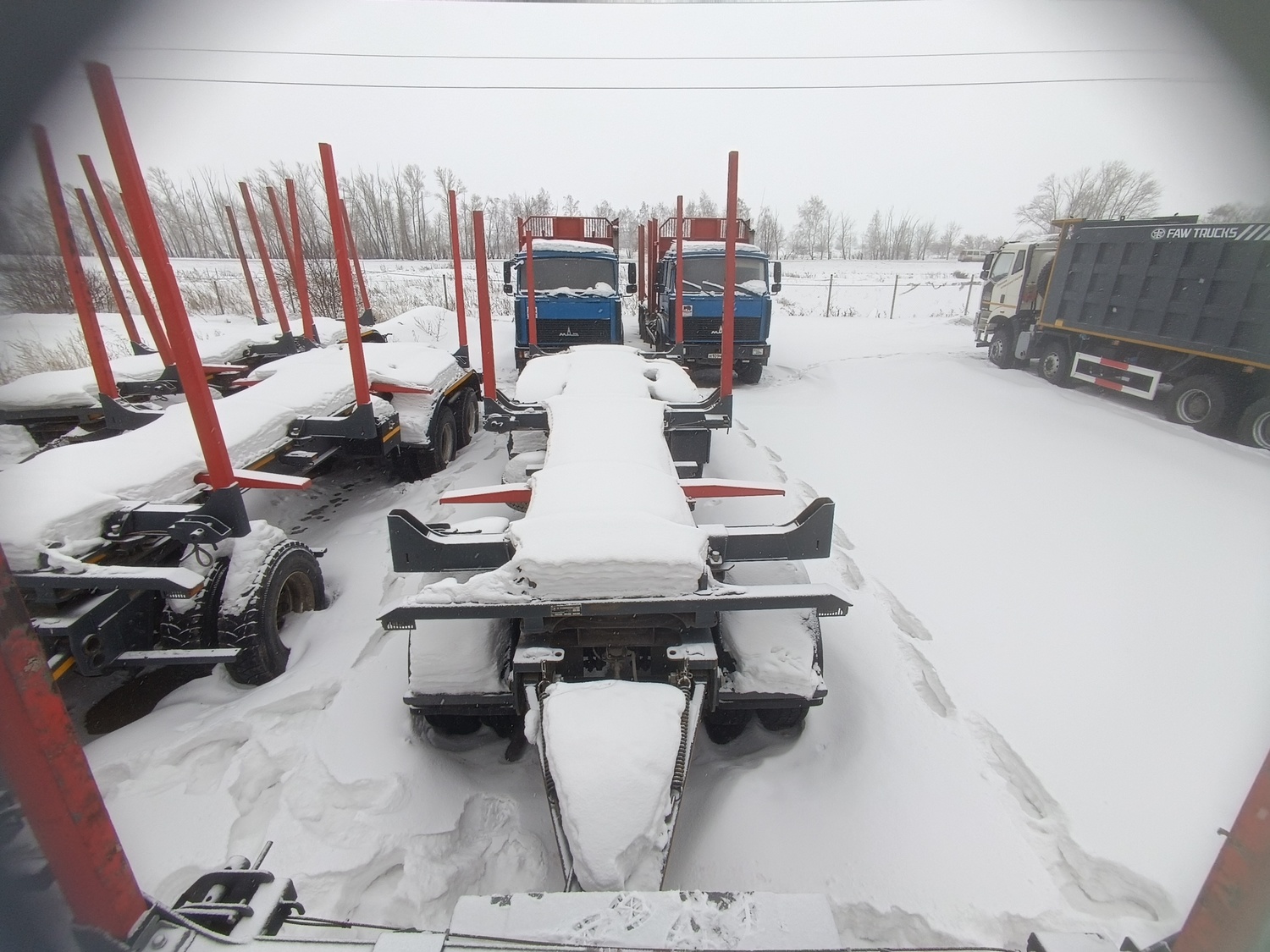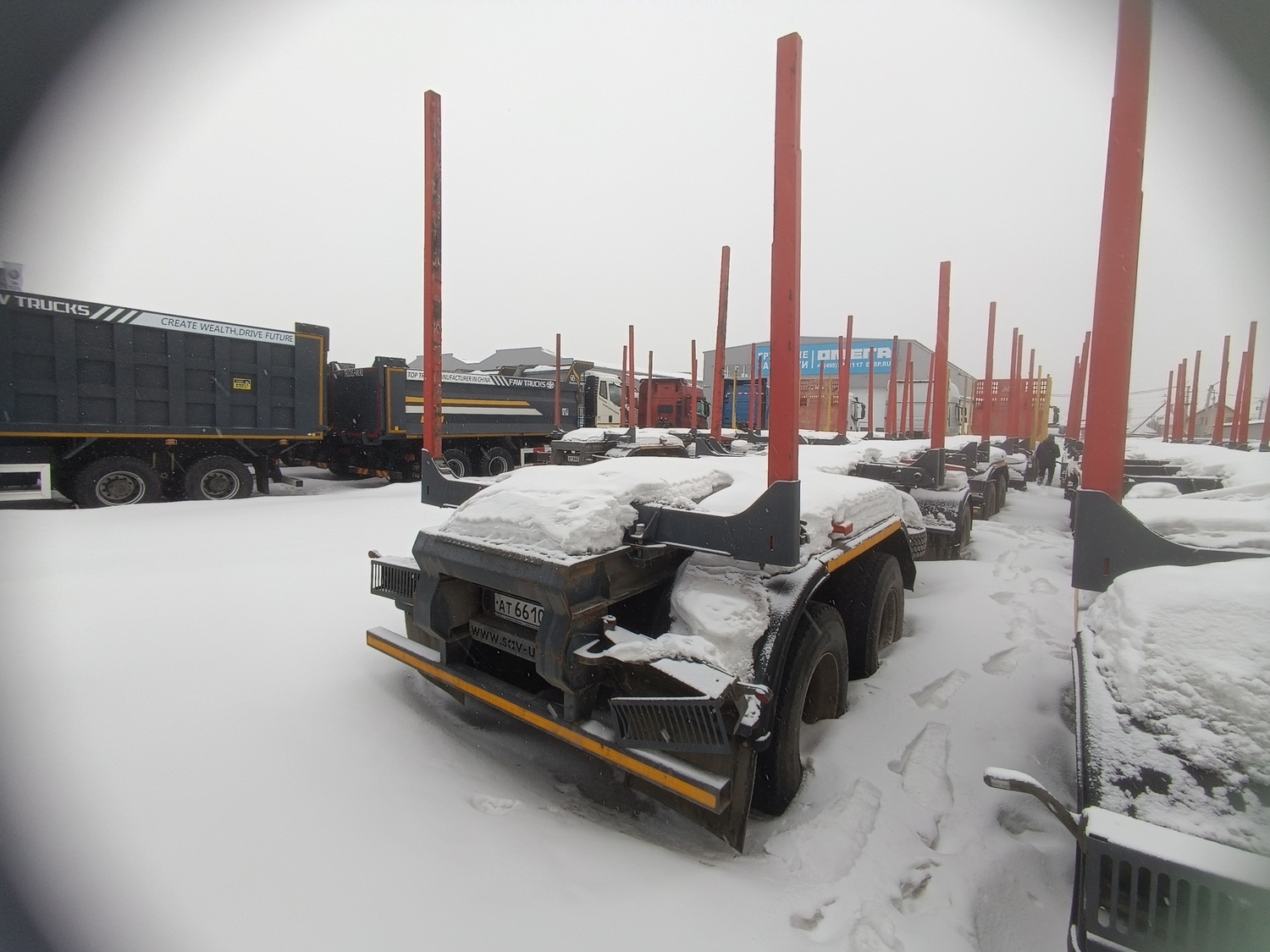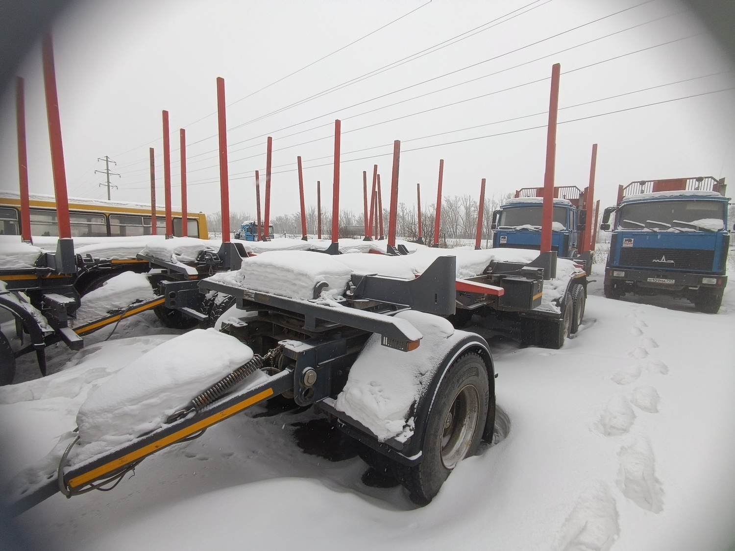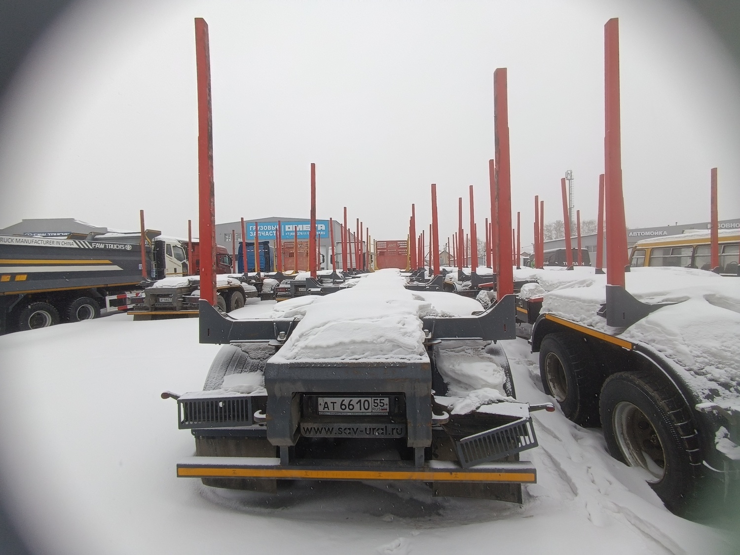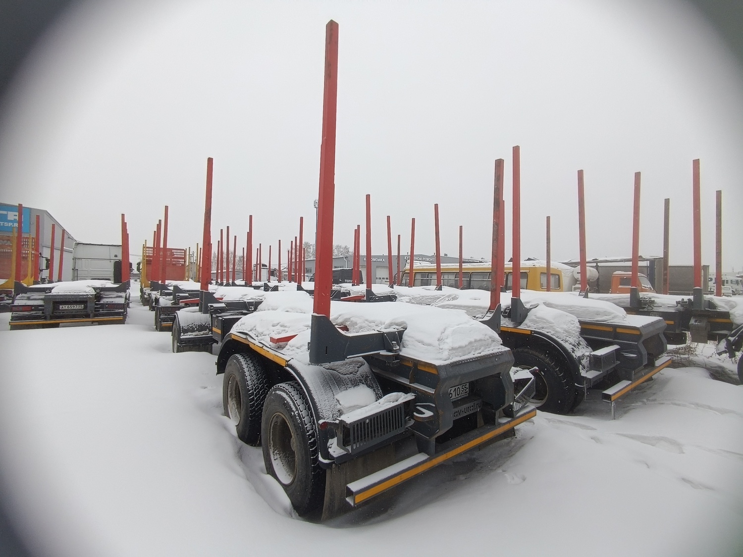 Прицеп-сортиментовоз САВ 83433R (комплектация 83433RС4-0000012-АРД) ТЕХНИЧЕСКИЕ ХАРАКТЕРИСТИКИ: Масса перевозимого сортимента, кг 27 500 Объем загрузочного пространства, куб.м 42 Объем перевозимого сортимента (к=0,8), куб.м 2Х4 / 35 Масса снаряженного прицепа, кг 8 500 Полная масса прицепа, кг 36 000 Нагрузка на переднюю ось, кг 12 000 Нагрузка на заднюю тележку, кг 24 000 Шины бескамерные 315/80 R22,5 (12+1 шт.) Максимальная скорость, кг 85 ОБОРУДОВАНИЕ ПРИЦЕПА: • 4 стальных облегченных коника постоянной высоты из высокопрочной стали переставляемые по длине рамы; • дышло длиной 2000 мм с усиленной сцепной петлей диаметром 50 мм с сайлент-блоками в узле крепления дышла к раме; • два положения дышла по высоте 790 мм и 900 мм (при полной массе); • передняя подвеска - рессорная на нагрузку 14 тонн, оси ф.BPW (Германия); • задняя подвеска - рессорная без реактивных штанг, оси ф.BPW (Германия); • балансир задней подвески с манжетой предназначен для работы как с жидкой, так и консистентной смазкой; • тормозная система с АБС; • стояночная тормозная система с энергоаккумуляторами; • электрооборудование 24В в герметичном исполнении;