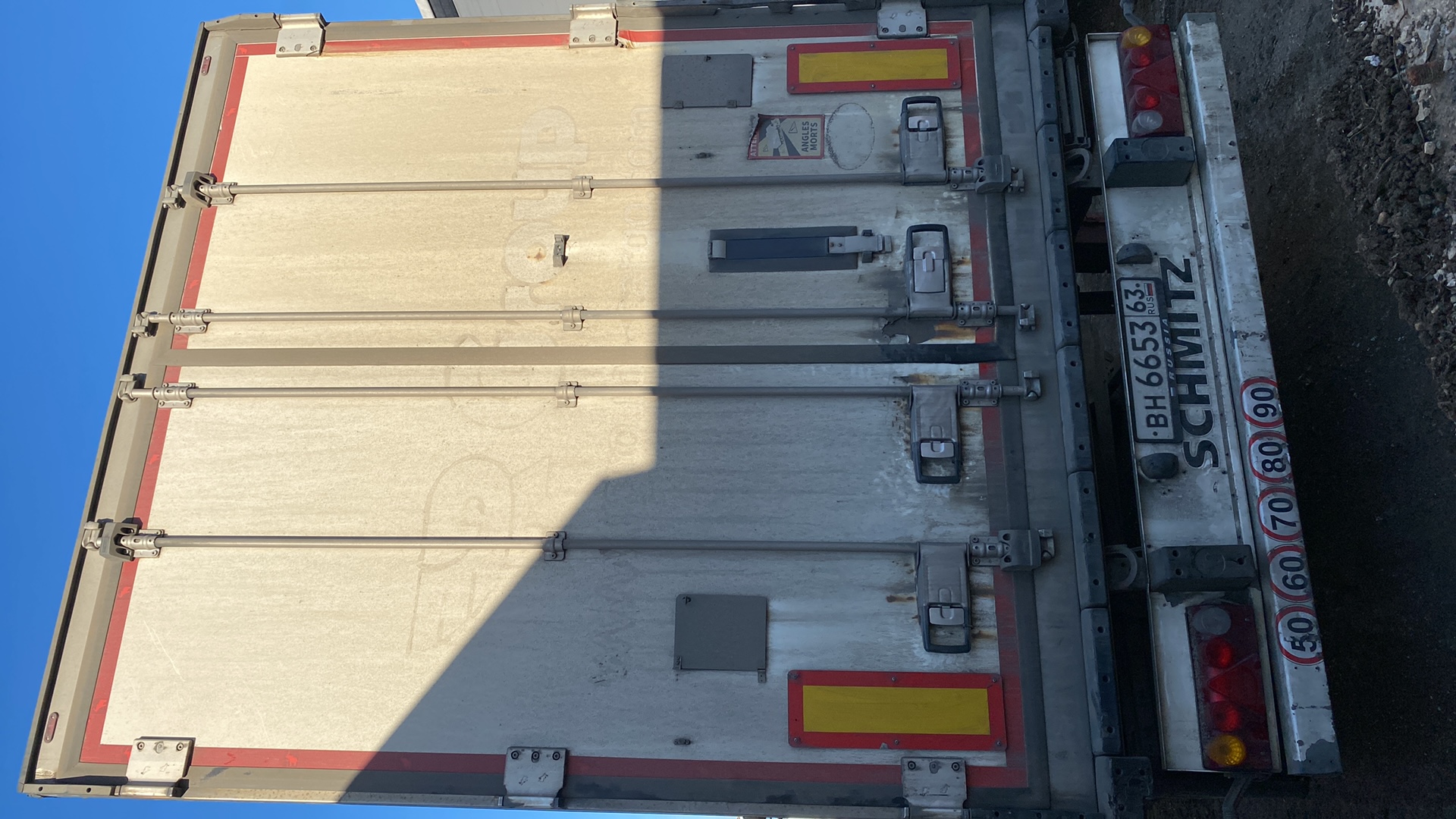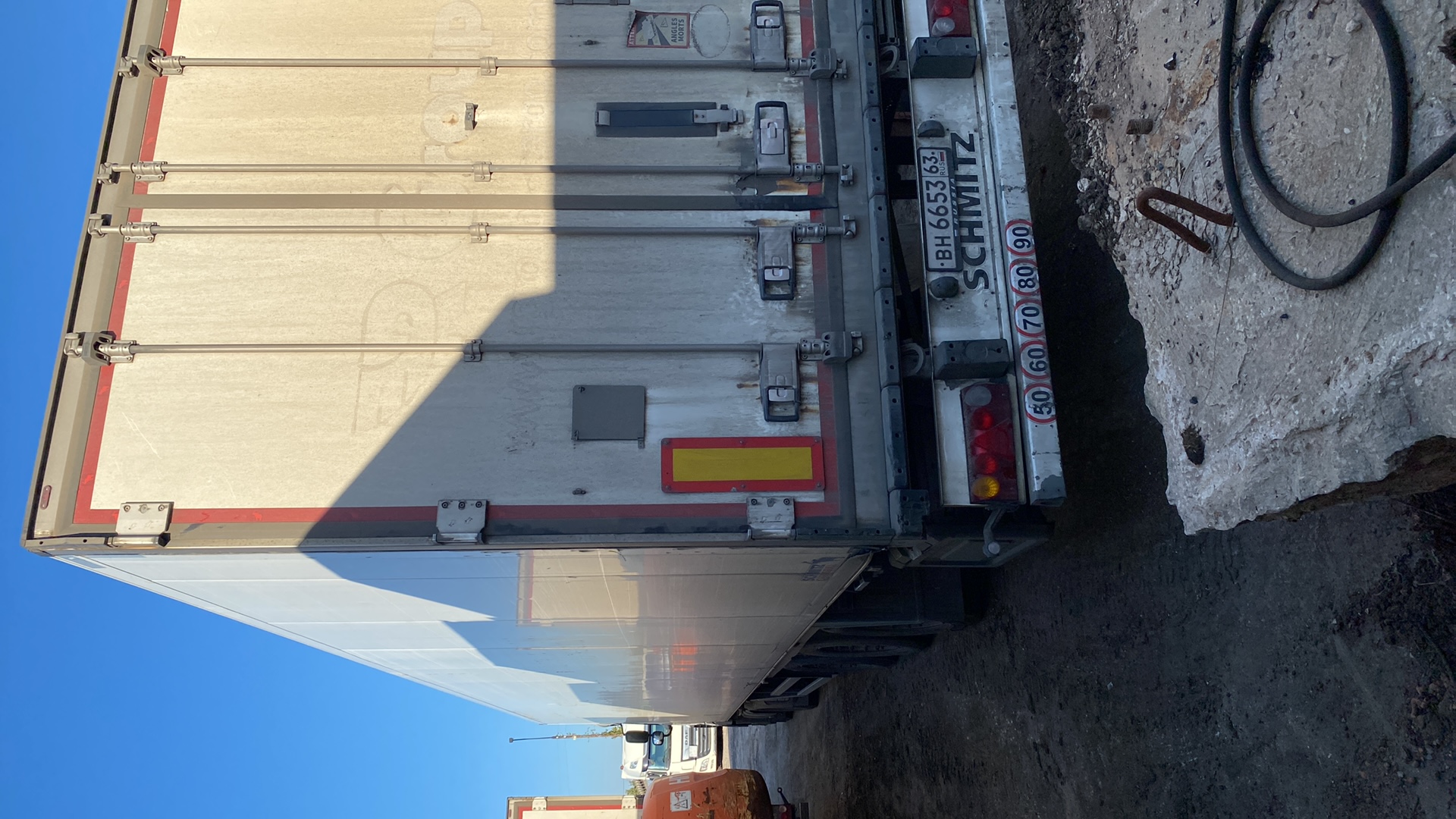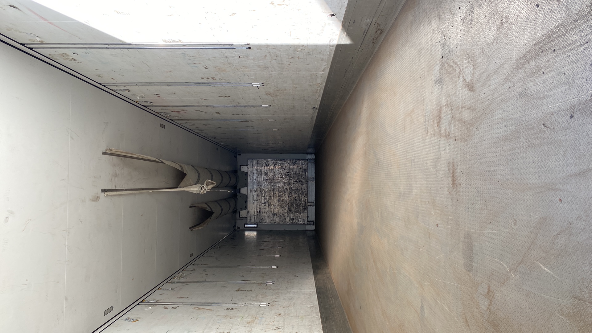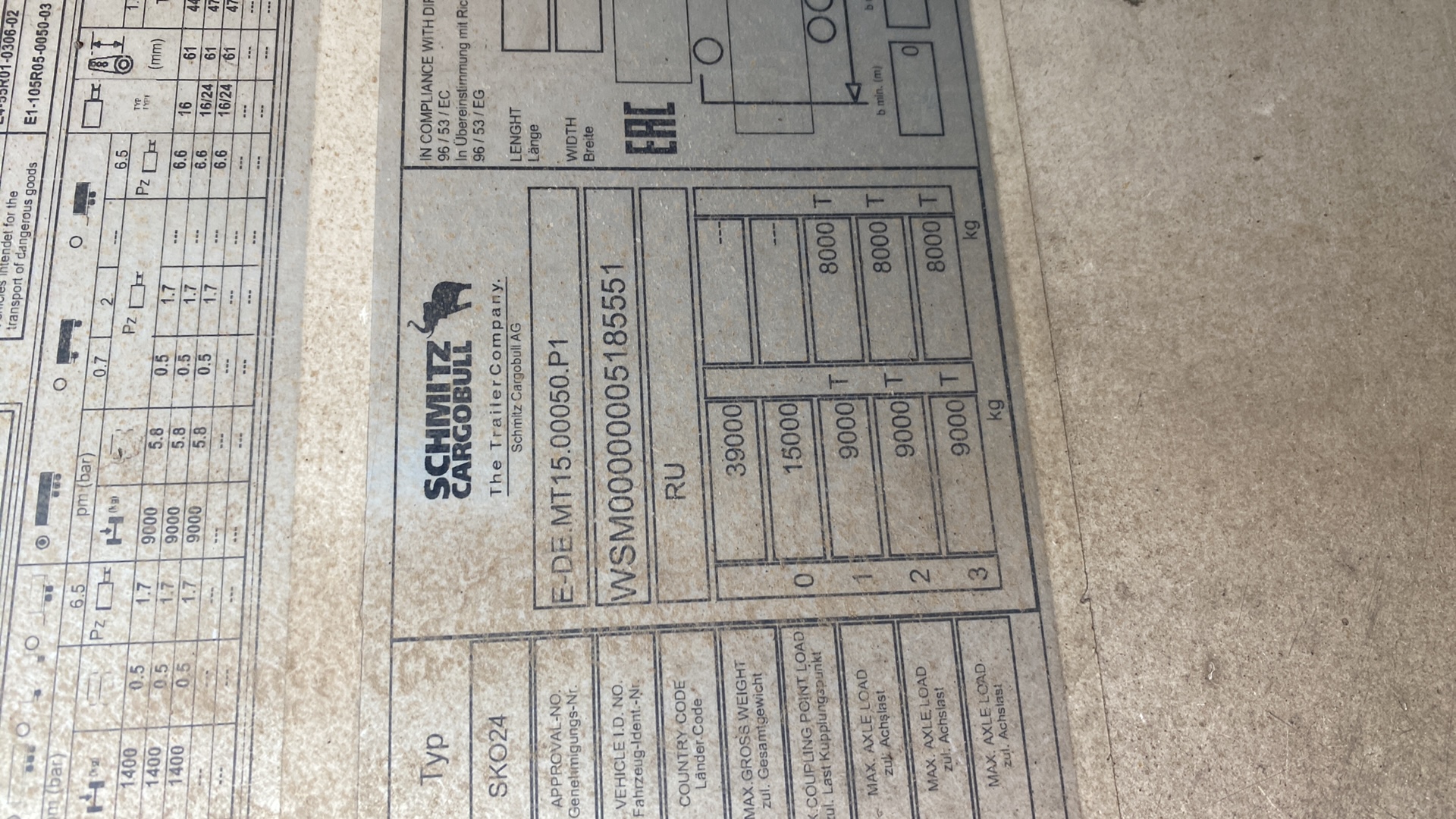 Номер лота: 000013749 Ответственный за реализацию: Томашевский Антон Полуприцеп-рефрижератор Цвет: белый (WHITE) Кузов: FERROPLAST (глубокой заморозки, тип V7) Оси: SAF Холодильная установка: Thermo King SLX-300 Подвеска и тормозная система Тип подвески: пневматическая Тормозная система: двухконтурная пневматическая, со стандартными муфтами Ходовая часть Количество осей: 3 Количество колёс: 6 Колёсная база: 7 600 мм Межосевое расстояние: Ось 1 – Ось 2: 1 310 мм Ось 2 – Ось 3: 1 310 мм Технические параметры Высота ССУ (седельно-сцепного устройства) в незагруженном состоянии — 1 140 мм Высота подвески — 395 мм Высота проёма задней двери — 2 640 мм Ширина проёма задней двери — 2 460 мм Габаритные размеры Длина: 13 550 мм Ширина: 2 550 мм Внутренняя высота: 2 650 мм Внутренняя ширина кузова: 2 460 мм Наружная ширина кузова: 2 600 мм Длина кузова внутри: 13 403 мм Масса и нагрузки Масса транспортного средства: 8 000 кг (±3%) Технически допустимая нагрузка на седло: 15 000 кг Технически возможный общий вес: 39 000 кг Технически допустимая максимальная нагрузка на ось: Ось 1 — 9 000 кг Ось 2 — 9 000 кг Ось 3 — 9 000 кг Прочие характеристики Максимальная скорость: 100 км/ч Шины: 385/65 R22.5 Диски: 11.75×22.5 Запасное колесо: отсутствует