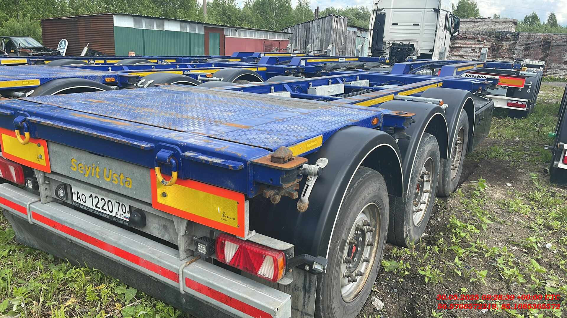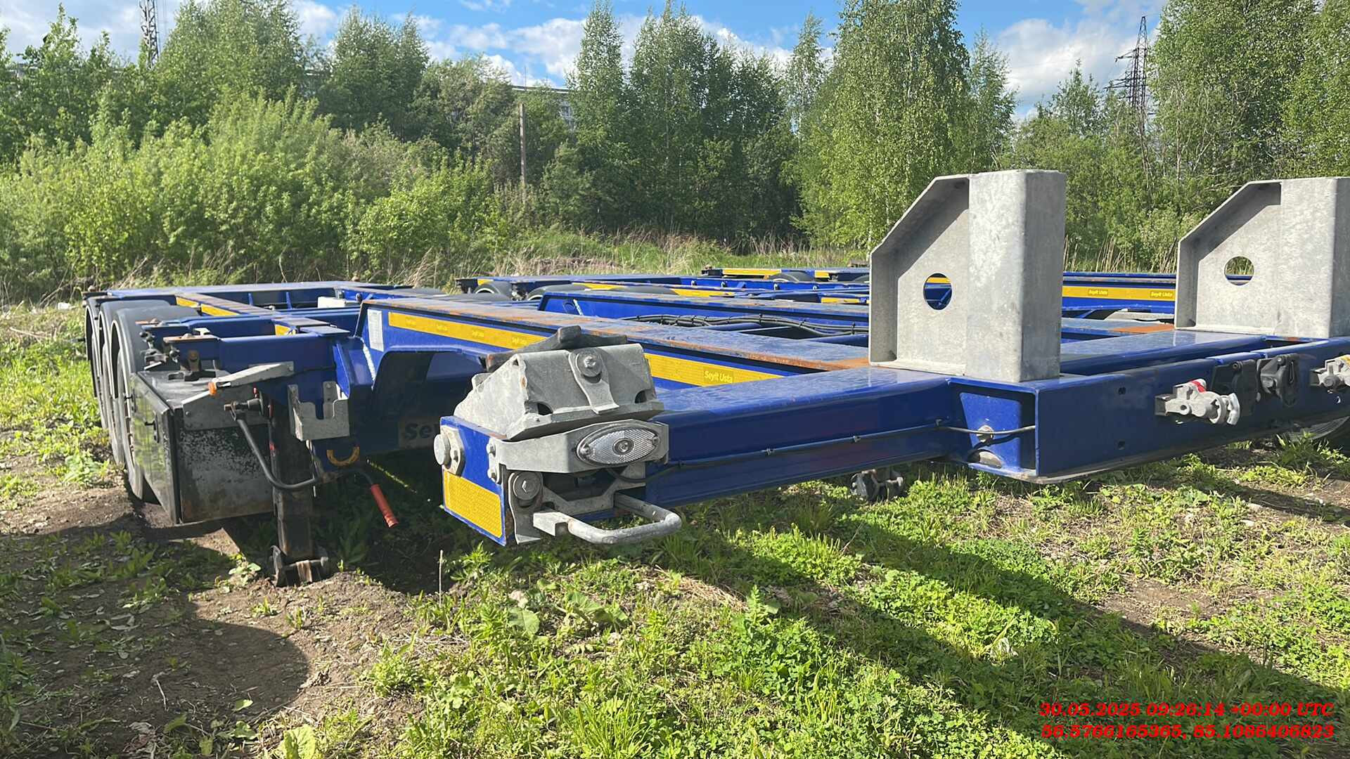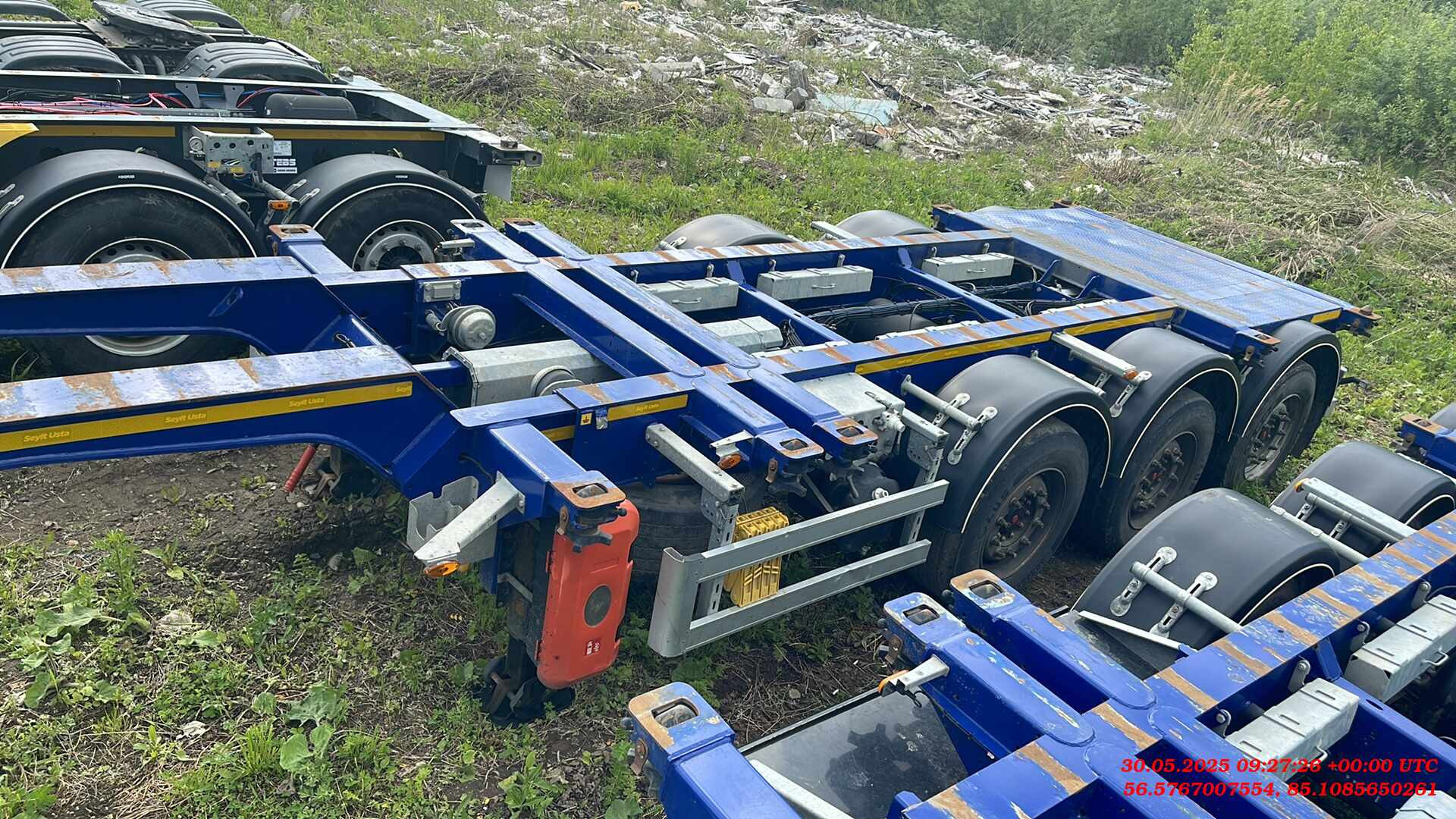 Ответственный за реализацию: Бахарев Дмитрий Номер лота: 000015264 ШАССИ: - Шасси из двутаврового профиля из высокопрочной стали. Высококачественная стальная конструкция (сталь S700MC и St52-3). - Высота сцепного устройства тягача — 1100 мм. ИСПОЛЬЗОВАНИЕ: - Раздвижной полуприцеп может перевозить: - 1-40 футовый контейнер HI CUBE - 1-30 футовый контейнер - 2-20 футовых контейнера - 1-20 футовый контейнер посередине с погрузочной площадкой сзади - 1-20 футовый танк-контейнер - 1-20 футовый контейнер сзади на край. - Раздвижные секции находятся посередине и в задней части. Раздвигание в средней части осуществляется с тягача. Задняя раздвижная часть приводится в движение пневматическим цилиндром и может управляться ручным клапаном. ПОДВЕСКА: - Оси SAF грузоподъемность. 9000 кг. Дисковые тормоза SAF. - Оригинальная пневмоподвеска. ДЕТАЛИ ШАССИ: - 10 поворотных фитинговых замков на 52 мм. - 2 дополнительных поворотных замка. - Сцепной шкворень 2". - 25-тонная двухскоростная передняя опора SAF. - 6 крыльев PARLOK, 2 задних с брызговиками. - Задняя платформа. ПНЕВМОСИСТЕМА И ТОРМОЗНАЯ СИСТЕМА: - Двухконтурная тормозная система с RSS согласно R13 EBS 2S/2M. Пружинный стояночный тормоз в соответствии с Директивой ЕС R13 (HALDEX / WABCO). - Ручка управления клапаном регулировки высоты прицепа (HALDEX / WABCO). - 2 ресивера на 80 и 60 л, сертифицированные по регламентам ЕС. ЭЛЕКТРИЧЕСКАЯ СИСТЕМА: - Электрическая система на 24 В согласно R48. Электрическая розетка 1x15, передний габаритный фонарь, передний отражатель, боковые габаритные огни, стоп-сигналы с треугольными отражателями, подсветка номерного знака. ШИНЫ: - 7 шин 385/55 R22,5 и 7 колесных дисков 11,75/22,5. ЛАКОКРАСОЧНОЕ ПОКРЫТИЕ: - Шасси подвергается пескоструйной обработке (SA 2.5) и покрывается двумя слоями высокопрочного эпоксидного грунта. Финишная отделка шасси двумя слоями акриловой краски.