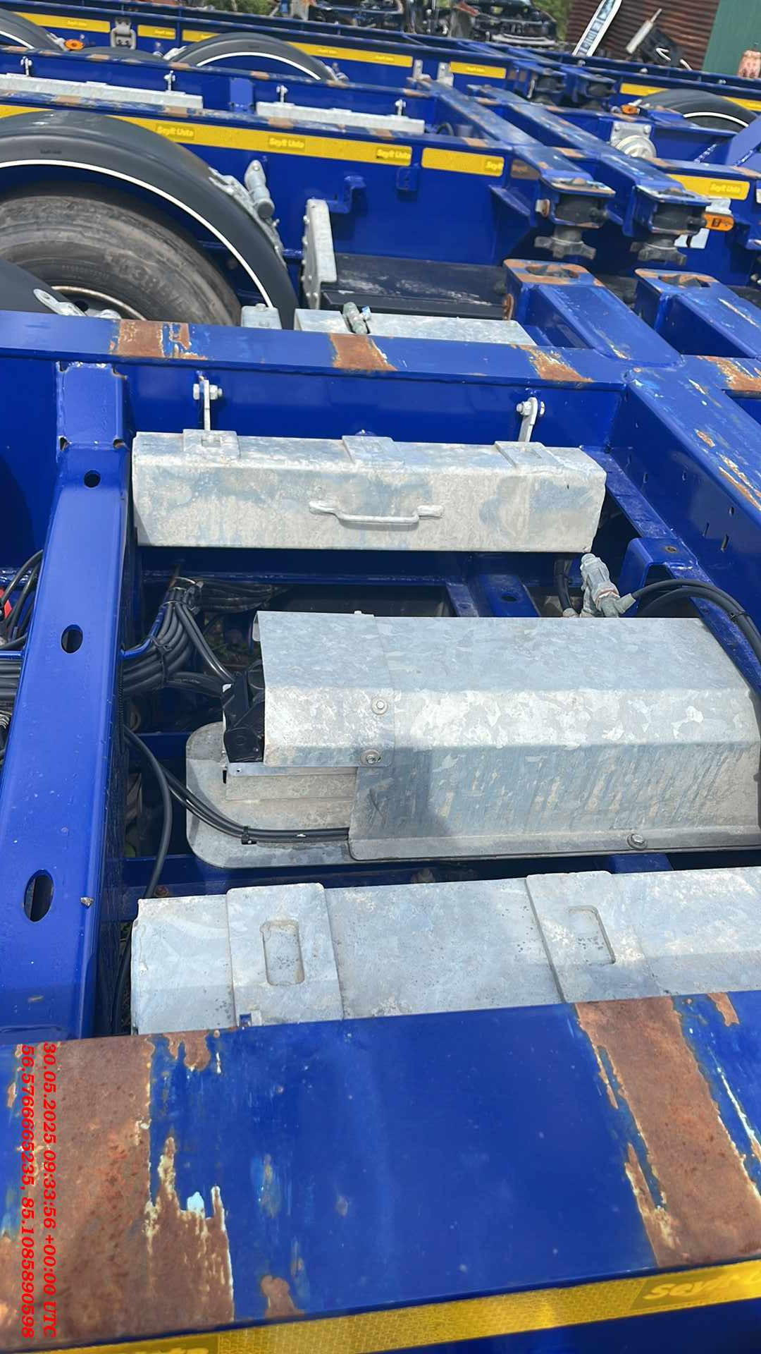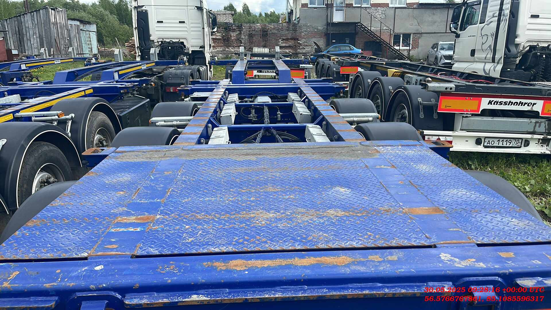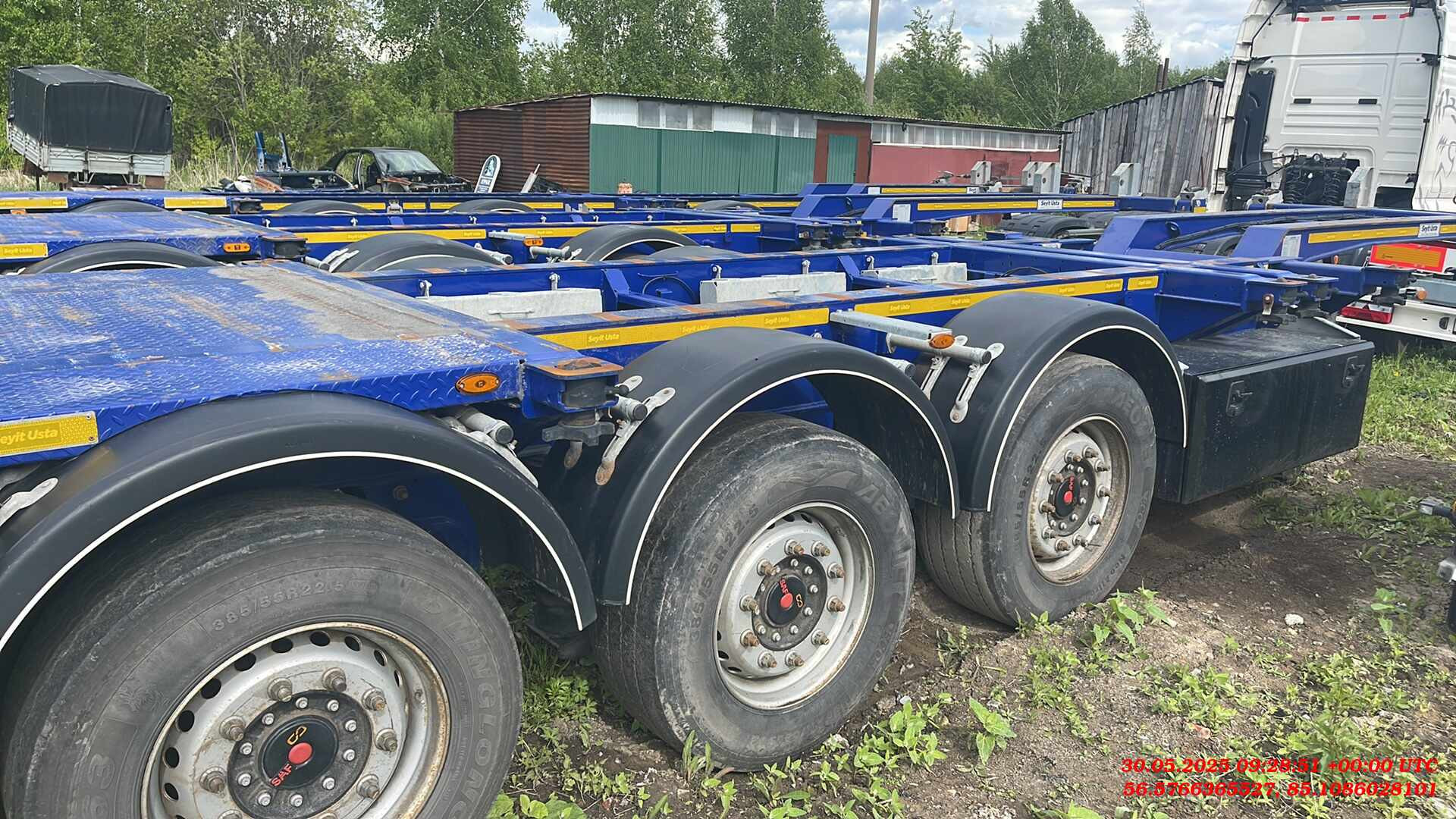 Ответственный за реализацию: Бахарев Дмитрий Номер лота: 000015264 ШАССИ: - Шасси из двутаврового профиля из высокопрочной стали. Высококачественная стальная конструкция (сталь S700MC и St52-3). - Высота сцепного устройства тягача — 1100 мм. ИСПОЛЬЗОВАНИЕ: - Раздвижной полуприцеп может перевозить: - 1-40 футовый контейнер HI CUBE - 1-30 футовый контейнер - 2-20 футовых контейнера - 1-20 футовый контейнер посередине с погрузочной площадкой сзади - 1-20 футовый танк-контейнер - 1-20 футовый контейнер сзади на край. - Раздвижные секции находятся посередине и в задней части. Раздвигание в средней части осуществляется с тягача. Задняя раздвижная часть приводится в движение пневматическим цилиндром и может управляться ручным клапаном. ПОДВЕСКА: - Оси SAF грузоподъемность. 9000 кг. Дисковые тормоза SAF. - Оригинальная пневмоподвеска. ДЕТАЛИ ШАССИ: - 10 поворотных фитинговых замков на 52 мм. - 2 дополнительных поворотных замка. - Сцепной шкворень 2". - 25-тонная двухскоростная передняя опора SAF. - 6 крыльев PARLOK, 2 задних с брызговиками. - Задняя платформа. ПНЕВМОСИСТЕМА И ТОРМОЗНАЯ СИСТЕМА: - Двухконтурная тормозная система с RSS согласно R13 EBS 2S/2M. Пружинный стояночный тормоз в соответствии с Директивой ЕС R13 (HALDEX / WABCO). - Ручка управления клапаном регулировки высоты прицепа (HALDEX / WABCO). - 2 ресивера на 80 и 60 л, сертифицированные по регламентам ЕС. ЭЛЕКТРИЧЕСКАЯ СИСТЕМА: - Электрическая система на 24 В согласно R48. Электрическая розетка 1x15, передний габаритный фонарь, передний отражатель, боковые габаритные огни, стоп-сигналы с треугольными отражателями, подсветка номерного знака. ШИНЫ: - 7 шин 385/55 R22,5 и 7 колесных дисков 11,75/22,5. ЛАКОКРАСОЧНОЕ ПОКРЫТИЕ: - Шасси подвергается пескоструйной обработке (SA 2.5) и покрывается двумя слоями высокопрочного эпоксидного грунта. Финишная отделка шасси двумя слоями акриловой краски.