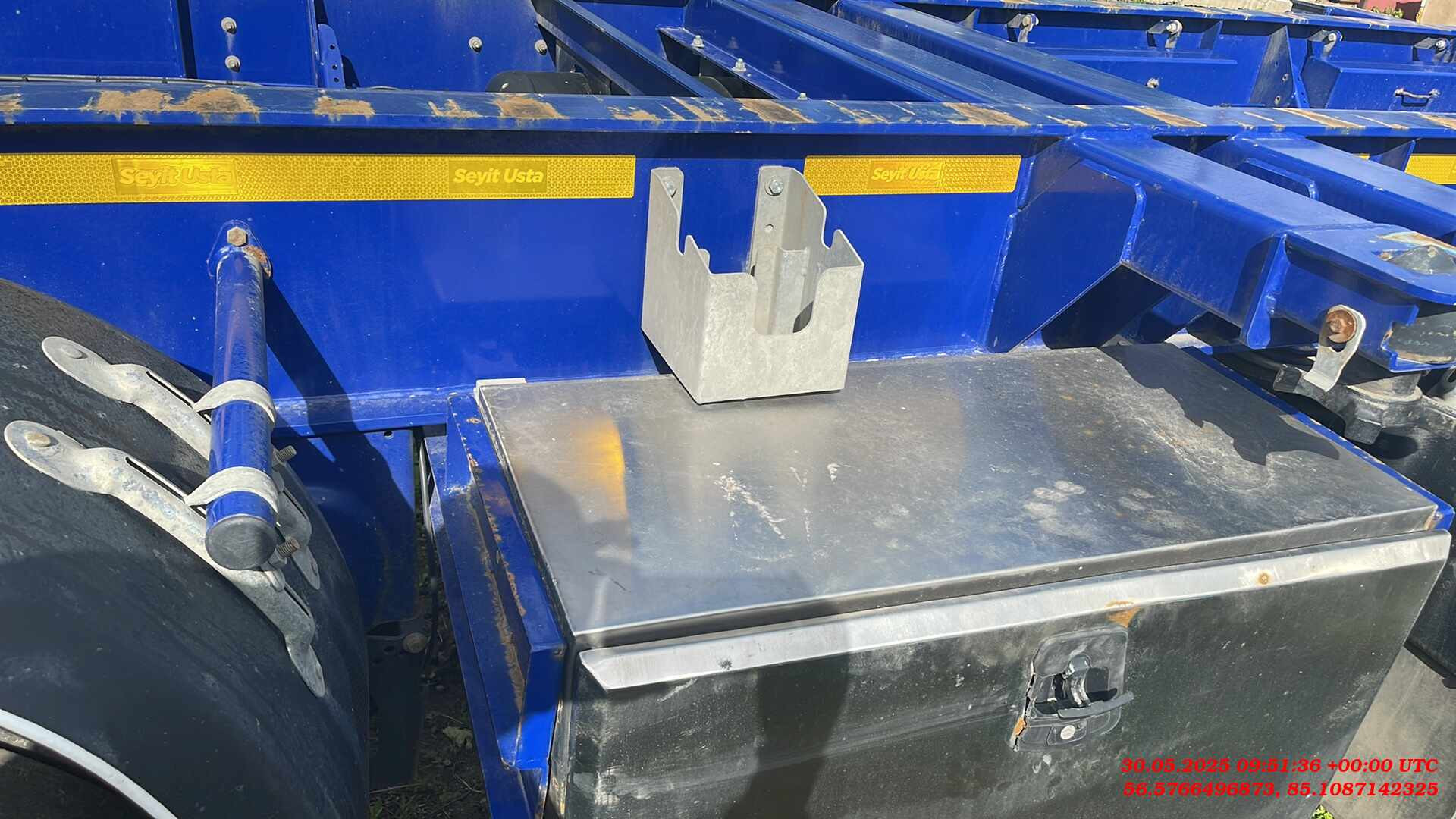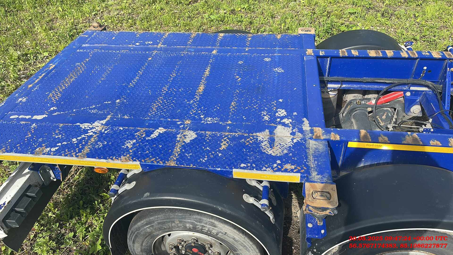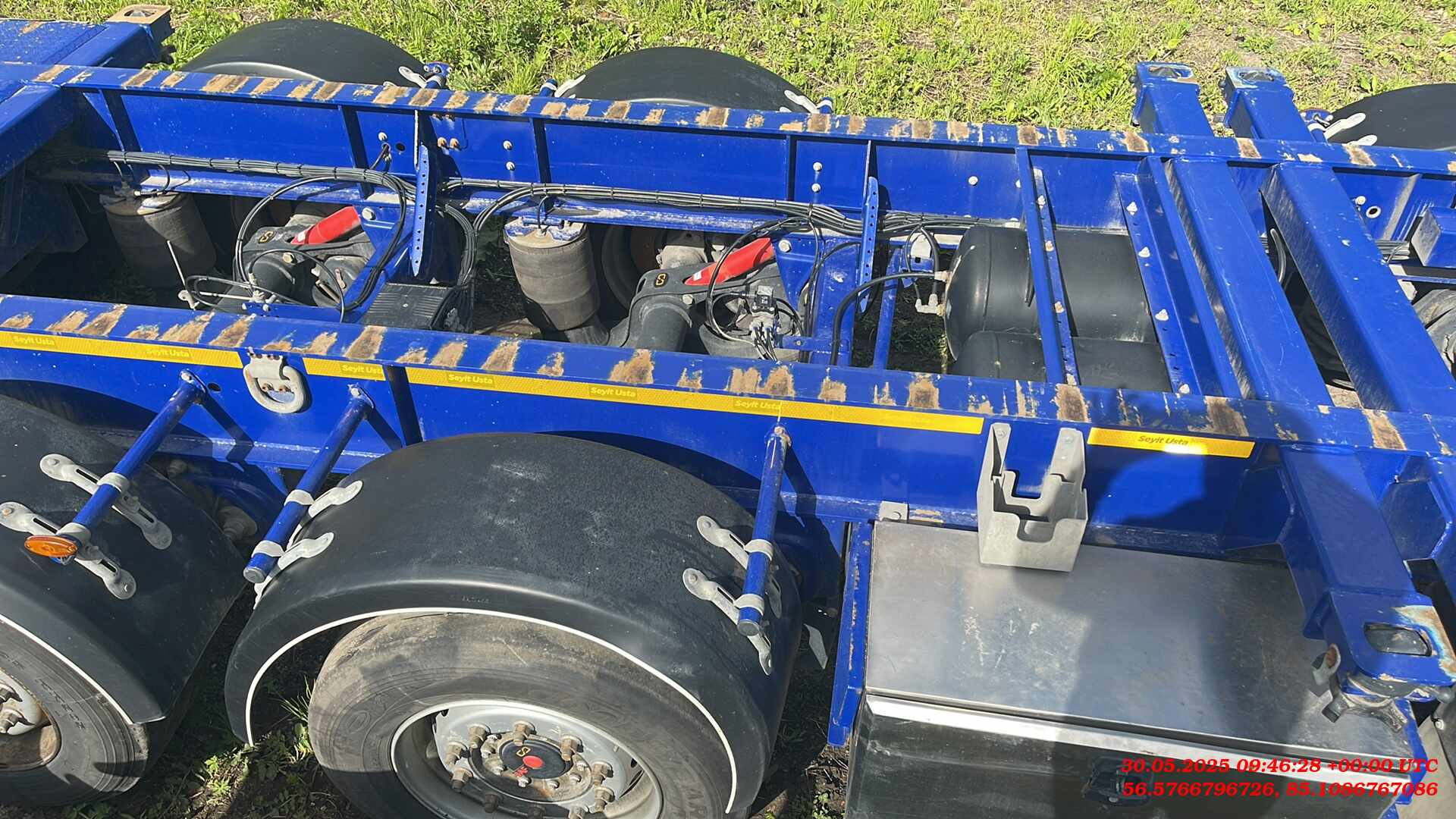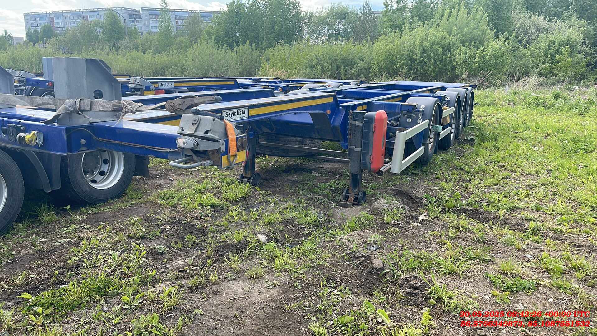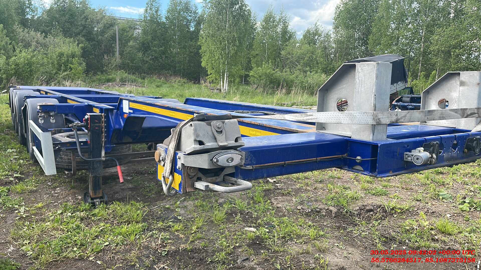 Ответственный за реализацию: Бахарев Дмитрий Номер лота: 000015275 ШАССИ: - Шасси из двутаврового профиля из высокопрочной стали. Высококачественная стальная конструкция (сталь S700MC и St52-3). - Высота сцепного устройства тягача — 1100 мм. ИСПОЛЬЗОВАНИЕ: - Раздвижной полуприцеп может перевозить: - 1-40 футовый контейнер (high-cube – высота до 2900 мм); - 1-30 футовый контейнер - 2-20 футовых контейнера - 1-20 футовый контейнер посередине с погрузочной площадкой сзади, масса не более 30 000 кг; - 1-20 футовый танк-контейнер - 1-20 футовый контейнер сзади на край, (весом максимум 18 000 кг.). ПОДВЕСКА: - 4 оси SAF грузоподъемность. 9000 кг. Дисковые тормоза SAF. - Оригинальная пневмоподвеска. - 1-я ось подъемная, управляемая только из кабины тягача, без кнопки на полуприцепе, - 2-я ось подъемная в автоматическом режиме. ДЕТАЛИ ШАССИ: - 12 поворотных фитинговых замков на 52 мм. - 2 дополнительных поворотных замка. - Сцепной шкворень 2". - 25-тонная двухскоростная передняя опора SAF. - 8 крыльев PARLOK, 2 задних с брызговиками и 2 передних с брызговиками. - Задняя платформа. ПНЕВМОСИСТЕМА И ТОРМОЗНАЯ СИСТЕМА: - Двухконтурная тормозная система с RSS согласно R13 EBS 2S/2M. Пружинный стояночный тормоз в соответствии с Директивой ЕС R13 (WABCO). - Ручка управления клапаном регулировки высоты прицепа (WABCO). - 2 ресивера на 80 и 80 л, сертифицированные по регламентам ЕС. ЭЛЕКТРИЧЕСКАЯ СИСТЕМА: - Электрическая система на 24 В согласно R48. Электрическая розетка 1x15, передний габаритный фонарь, передний отражатель, боковые габаритные огни, стоп-сигналы с треугольными отражателями, подсветка номерного знака. ШИНЫ: - 8 шин 385/55 R22,5 и 8 колесных дисков 11,75/22,5. ЛАКОКРАСОЧНОЕ ПОКРЫТИЕ: - Шасси подвергается пескоструйной обработке (SA 2.5) и покрывается двумя слоями высокопрочного эпоксидного грунта. Финишная отделка шасси двумя слоями акриловой краски.