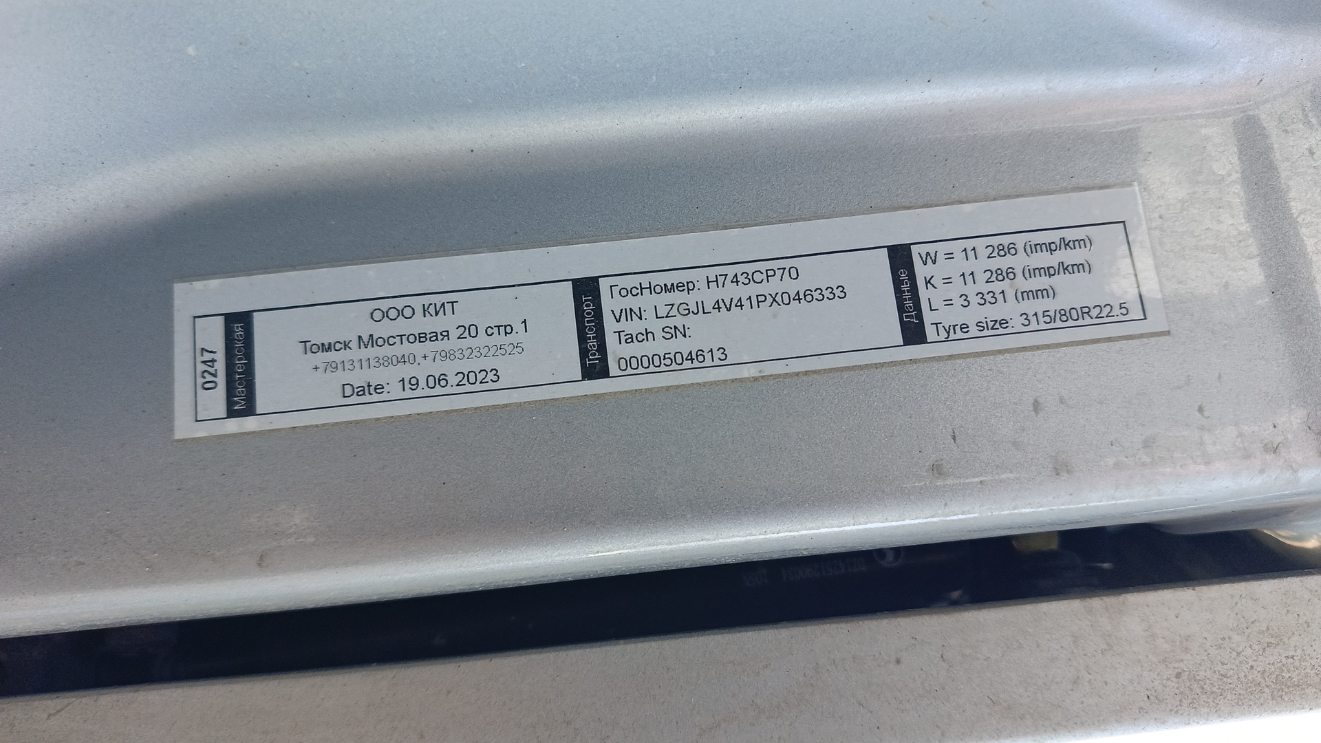 данные о машине