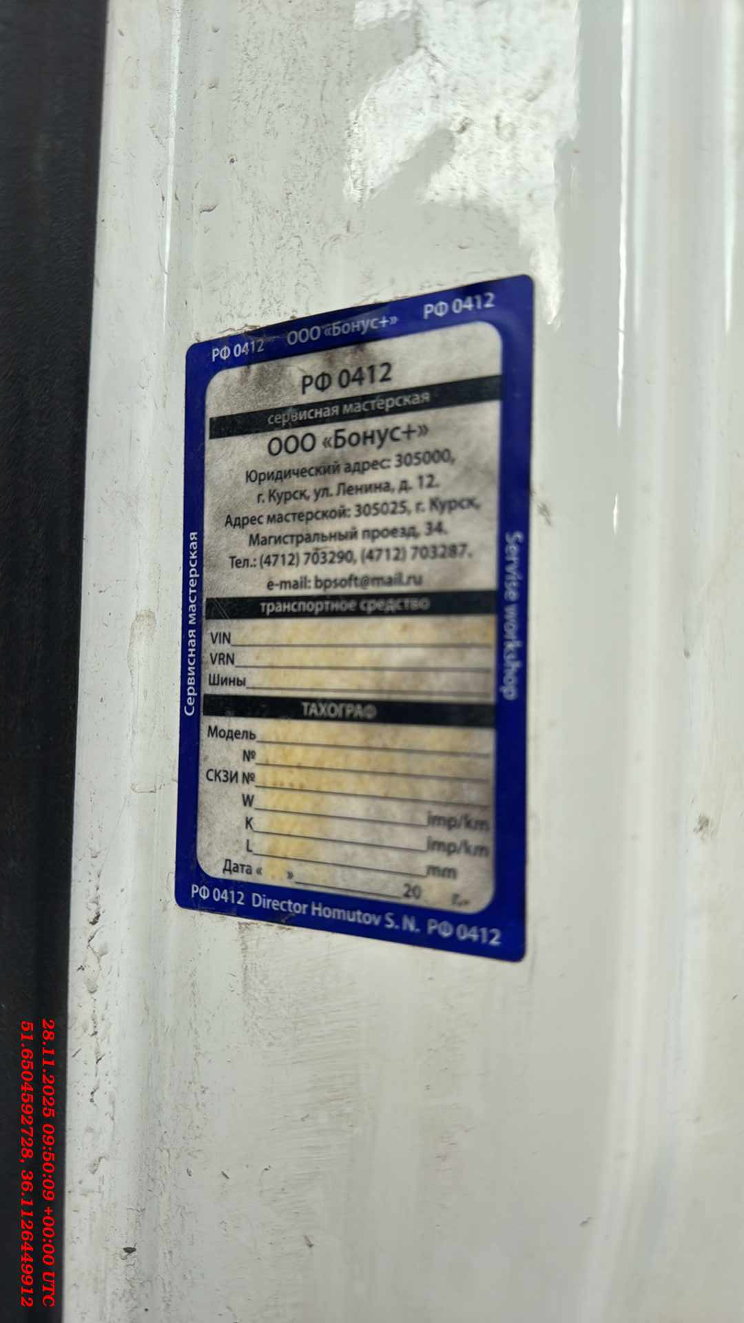 данные о машине
