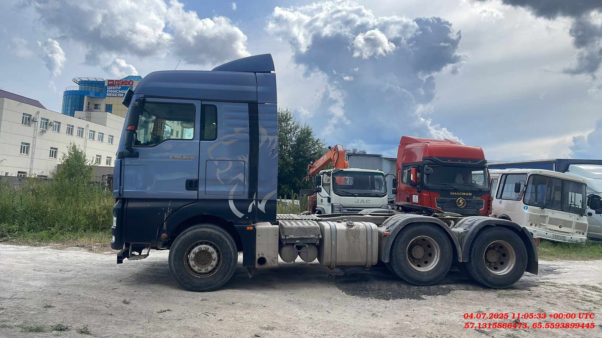 Номер лота: 000014927 Ответственный за реализацию ТС: Упоров Александр Сергеевич Количество ключей - 2. Sitrak C7H MAX 6х4 ZZ4256V364HE седельный тягач • Дизельный двигатель MC13.48-50, мощностью 353 кВт (около 480 л.с.). Крутящий момент 2300 Нм. Пятый экологический класс. Моторный тормоз-замедлитель. Система впрыска топлива под давлением • Коробка передач ZF, автоматическая, 12-ступенчатая, с возможностью переключения передач в ручном режиме • Коробка отбора мощности, установленная на коробке передач, со шлицевым выходом под установку гидронасоса • Гидравлический трансмиссионный тормоз (ретардер), управляемый с подрулевого рычага в кабине • Гипоидные одноступенчатые ведущие мосты с блокировками межосевых и межколесных дифференциалов • Передаточное число ведущих мостов - 3.08 • Высокая спальная кабина, низкий моторный тоннель, ширина 2440 мм • Стальной бампер средней высоты • Четырехточечная пневматическая подвеска кабины. Механизм подъема кабины с электроприводом • Светодиодные фары головного освещения с дневными ходовыми огнями и функцией автоматического переключения между дальним и ближним светом. Противотуманные фары в отдельном блоке • Регулируемый спойлер на крыше кабины • Спойлеры по бокам кабины • Зеркала заднего вида с широкоугольными секциями, с электроприводом и электроподогревом. Зеркало бокового обзора. Зеркало обзора зоны перед автомобилем • Внешний противосолнечный козырек • Две спальные полки, с дополнительным освещением на верхней полке, дополнительным освещением и блоком управления дополнительными функциями на нижней полке • Центральный замок с пультом дистанционного управления • Сидение водителя, регулируемое, с пневматической подвеской, подогревом и вентиляцией, подлокотником. Ремень безопасности, встроенный в сидение • Сидение пассажира, регулируемое, с пневматической подвеской и подлокотником. Ремень безопасности, встроенный в сидение • Люк в крыше кабины с электроприводом и москитной сеткой • Панель приборов водителя с 7-дюймовым цветным дисплеем • Дополнительный 12-дюймовый цветной сенсорный дисплей системы мультимедиа справа от рулевого колеса • Аудиосистема. Функция подключения сотового телефона по Bluetooth • Система кругового обзора (до четырех камер), выводящая изображение на дополнительный дисплей системы мультимедиа • Холодильник под нижней спальной полкой, с морозильной камерой, справочный объем 27 литров • Автоматическая система климат-контроля с кондиционером • Автономный отопитель кабины, 4 кВт • Преобразователь напряжения на 220В, мощностью до 1 кВт • датчик дождя • Внутренняя противосолнечная шторка с ручным приводом. Боковые противосолнечные шторки • Шторы для ночного отдыха • Дополнительная теплоизоляция кабины для стран с холодным климатом • Ограничитель скорости движения автомобиля 89 км/ч