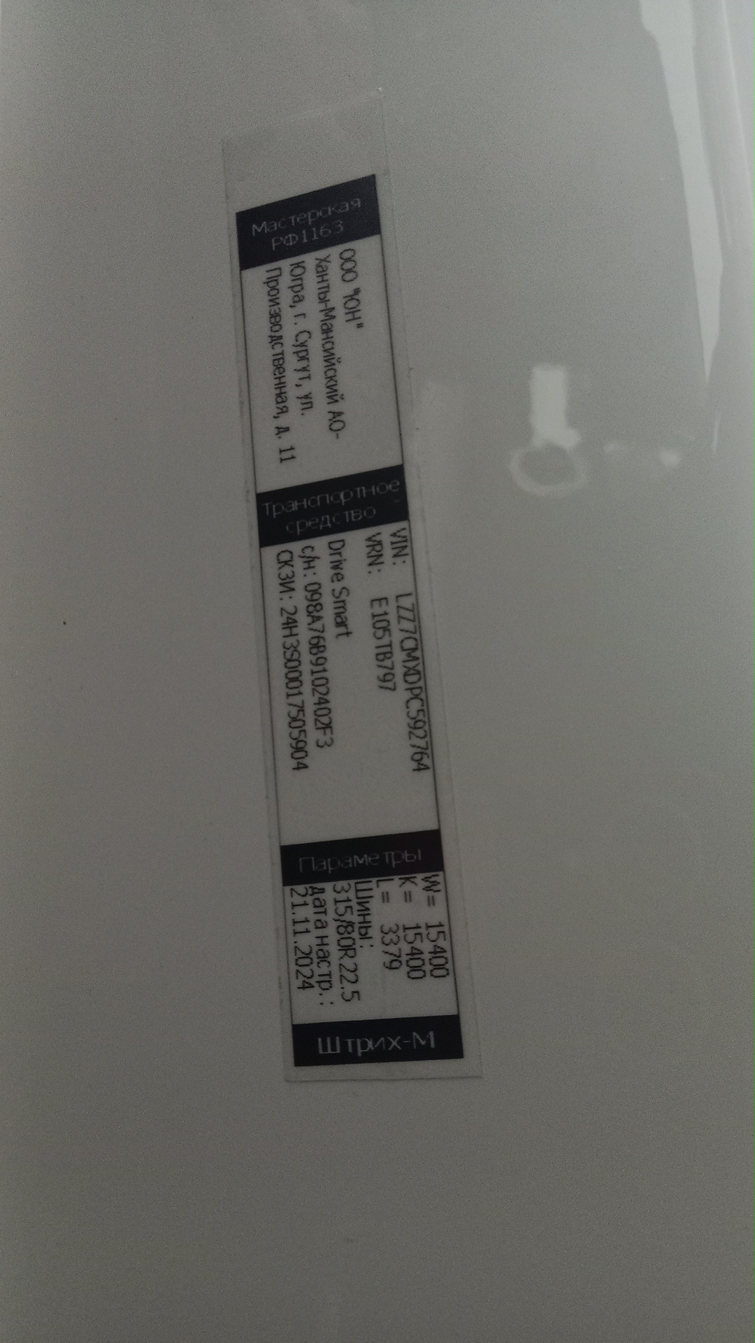 данные о машине