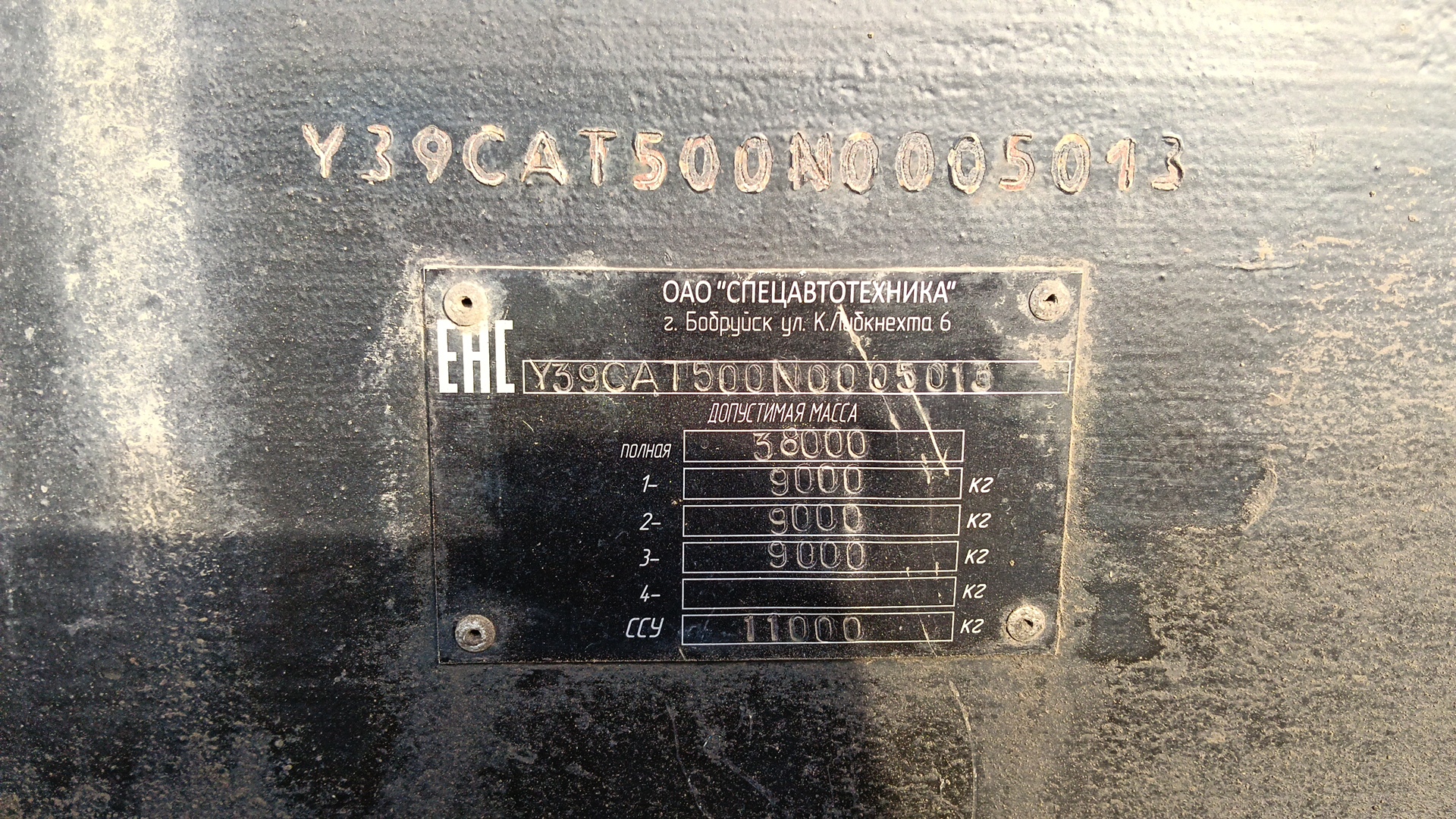Идентификационный номер Y39CAT500N0005013 Марка Отсутствует Коммерческое наименование SAT Категория транспортного средства в соответствии с Конвенцией о дорожном движении прицеп Категория в соответствии с ТР ТС 018/2011 O4